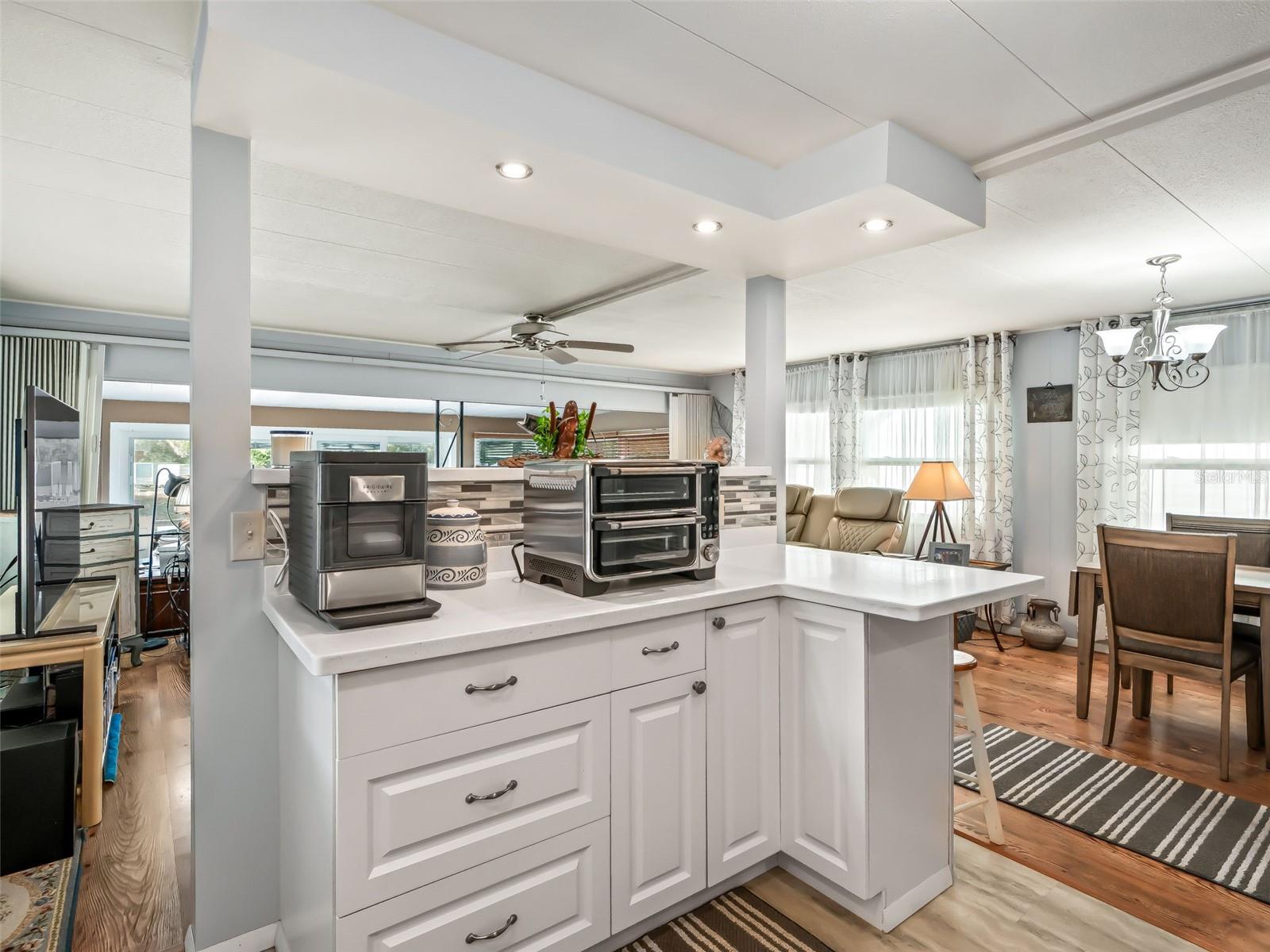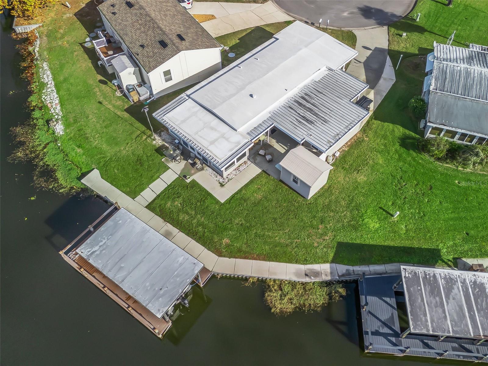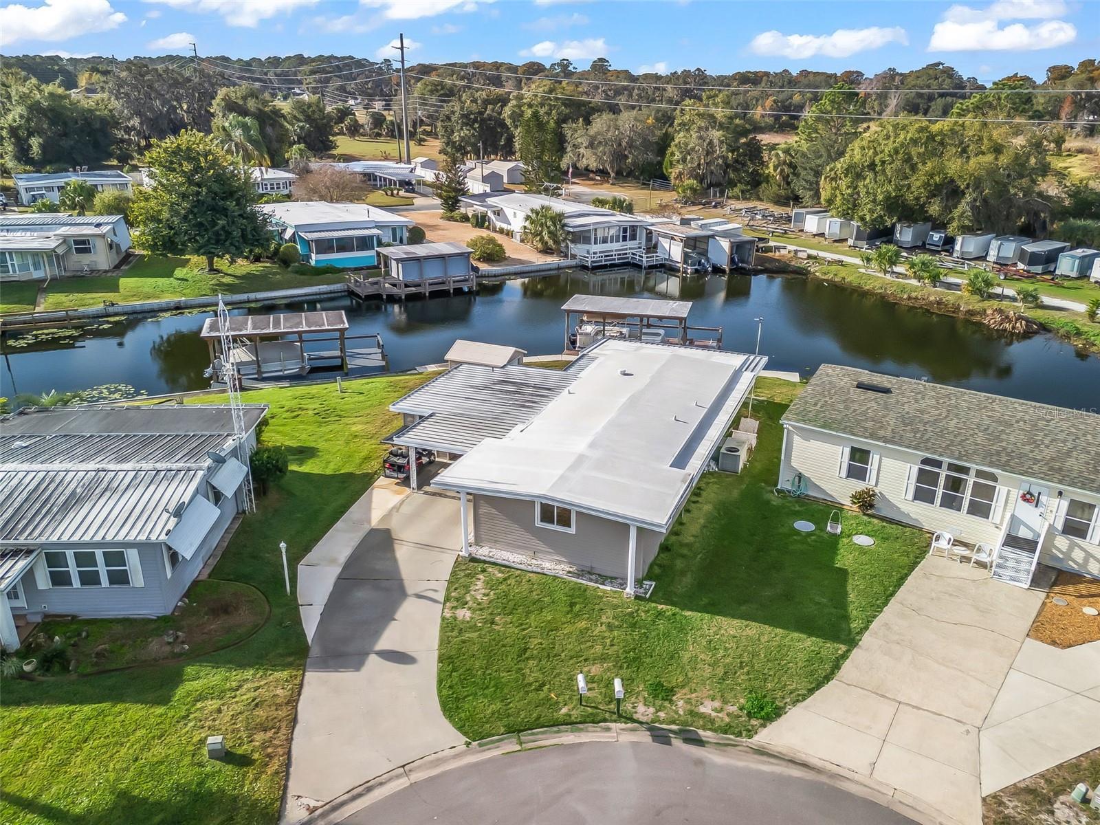 EXCEPTIONAL WATERFRONT RESIDENCE WITH DIRECT CONNECTION TO THE HARRIS CHAIN OF LAKES! COME SEE THIS 2 BED / 2 BATH HOME IN THE HIGHLY SOUGHT-AFTER IMPERIAL TERRACE WEST 55+ COMMUNITY IN TAVARES! This partial turnkey home offers desirable canal-front living complete with a covered boathouse and boat lift. Enjoy serene water views from the rear patio, ideal for relaxing or entertaining, while the side porch provides a shaded spot to enjoy your morning coffee. Inside, natural light fills the open floor plan featuring an updated kitchen with solid surface countertops, tile backsplash, closet pantry, glass-top range, recessed lighting, and luxury vinyl flooring. Laminate flooring runs through the living room, dining area, hallway, and both bedrooms for a clean, cohesive look. The spacious primary bedroom offers two walk-in closets and an updated en-suite bath with a walk-in shower and newer vanity with solid surface top. The Florida room features decorative stone accents and windows all around, providing fantastic waterfront views and additional living space. Additional upgrades include newer double-pane windows, newer vinyl siding, and a low-maintenance Trex deck at the boathouse. The boathouse and seawall were built within the past six years, offering peace of mind and long-term value. The community offers a clubhouse, in-ground pool, jacuzzi, and a wide variety of social activities, all for a low HOA of just $25 monthly. Conveniently located near dining, shopping, medical facilities, and charming local shops. BONUS: A 2001 Sylvan Pontoon Boat—refurbished in 2023 with new flooring, new upholstery, and a newer motor with under 100 hours—is available for purchase separately. Don’t wait—waterfront homes like this do not last long. Schedule your showing today.