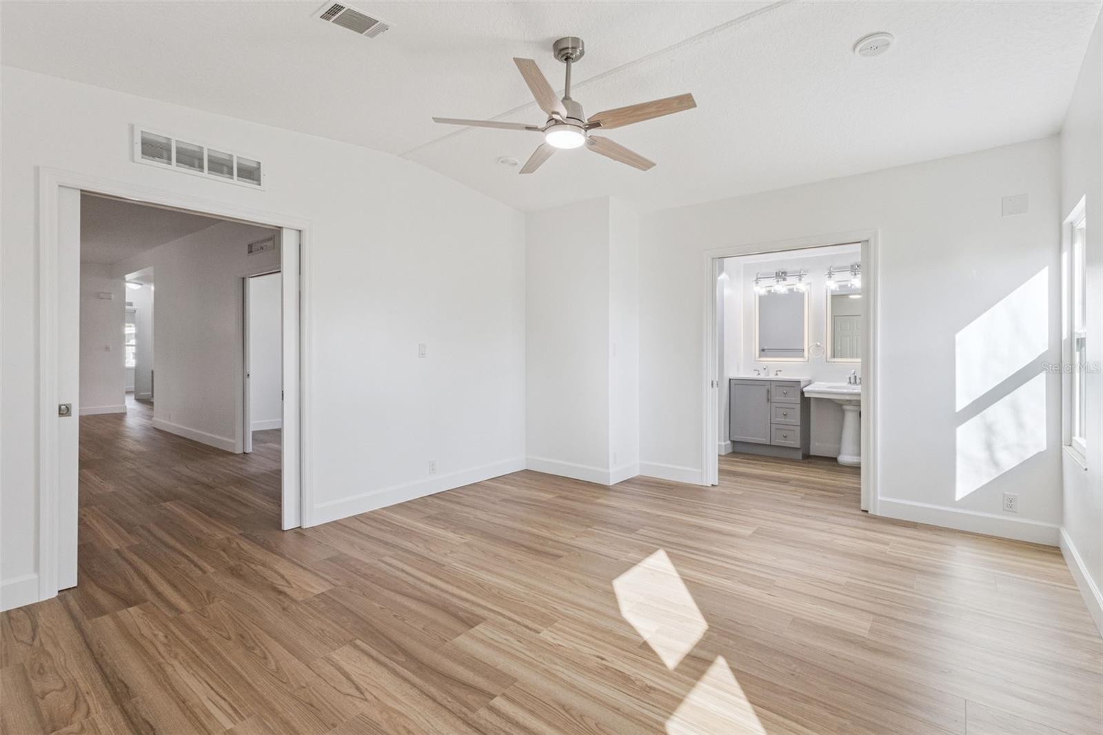 One or more photo(s) has been virtually staged. Move in Ready and Better than new! This beautifully reimagined, completely remodeled home in the desirable Fox Run Subdivision offers stylish living with thoughtful wheelchair accessibility throughout the main living areas, primary bedroom, and primary bathroom. Best of all, you’re just steps from the community swimming pool in this vibrant golf cart–friendly neighborhood. Every inch of this home has been upgraded from top to bottom. Recent improvements include a new roof, new interior DryWall, re-plastered ceilings with all popcorn removed, freshly painted interior, and luxury vinyl woodlook flooring throughout. Doorways have been widened with new doors designed for wheelchair access, and a brand-new handicap-accessible ramp provides smooth, easy entry into the home. The split floor plan features two bedrooms on each end of the home, plus a newly added 4th bedroom or flex space, perfect for a Family Room, or a home office. The heart of the home is the spacious U-shaped kitchen, complete with a pantry closet and a Brand new stainless steel appliance package - Fridge, Stove, Hood & Dishwasher. The Primary suite includes a large closet that allows wheelchair entry, and a private handicap accessible bathroom. Both bathrooms have been completely redesigned with new showers, modern vanities, and tall toilets. Additional upgrades include new lighting, ceiling fans, windows, and exterior doors. The home has been professionally leveled, with new tie-downs installed to meet current hurricane code, and features a brand-new fenced rear yard plus an attached storage shed. Washer and Dryer convey. Fox Run offers an active lifestyle with boat ramp access, fishing, concerts, bingo nights, and more, making this a community you’ll love to call home. The home has never been lived in since the remodel—it’s truly brand new and ready for you.