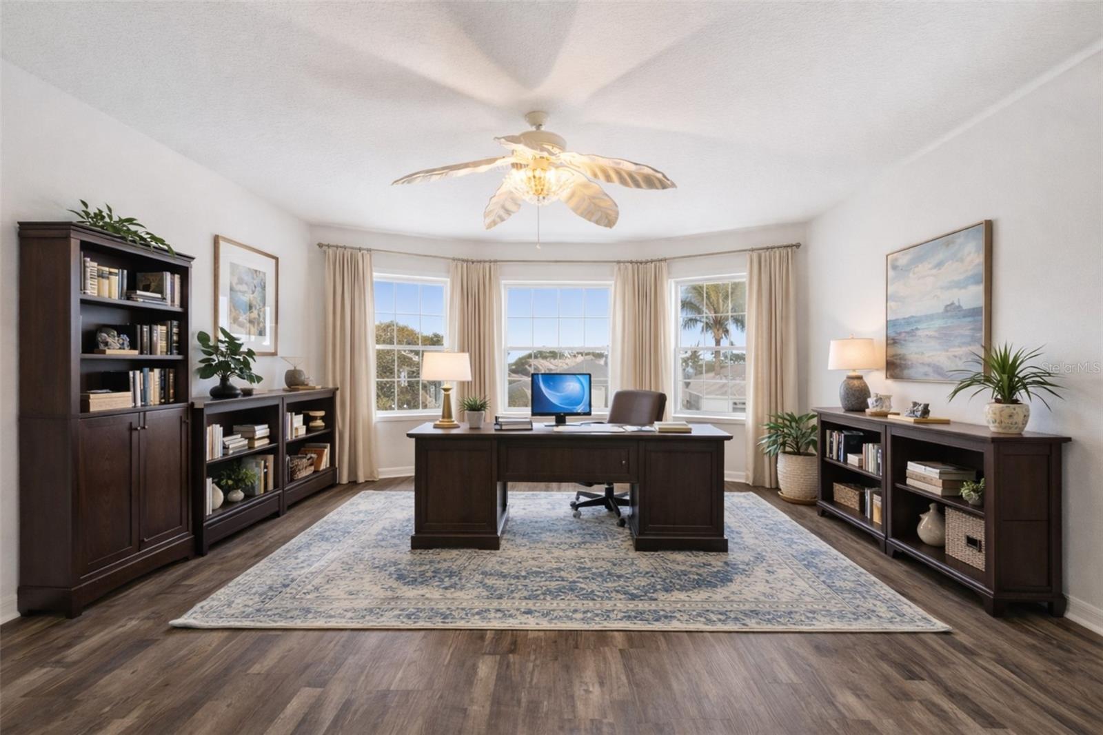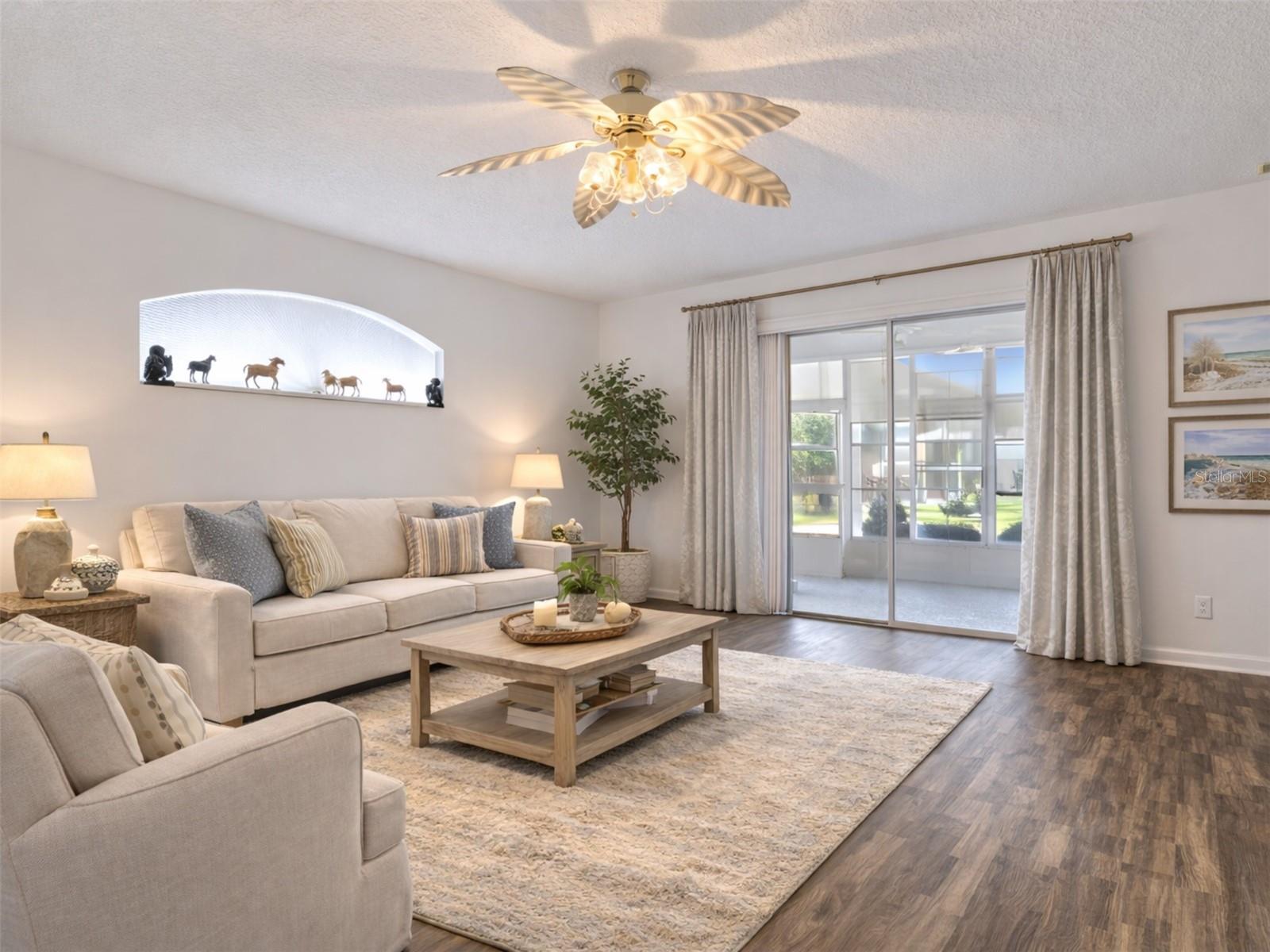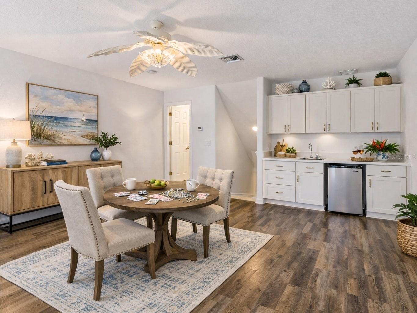 One or more photo(s) has been virtually staged. *** Roof 2024*** Generac Generator*** RARE Royal Harbor home that lives like a ONE-STORY with the primary suite, kitchen, living areas, and dining all on the main floor. Bonus upstairs LOFT provides flexible space for an office, hobbies, or guests. Spacious 2,080 sq ft home in Royal Harbor a GATED 55+ that features a BAY WINDOW, screened porch FLORIDA ROOM, RESORT AMENITIES, NO CDD, and HOA includes CABLE & INTERNET. The open main living area is BRIGHT and inviting with LUXURY VINYL FLOORING and an easy flow between the kitchen, dining, and living spaces. The dinette features a BAY WINDOW, filling the space with NATURAL LIGHT and creating a perfect spot for morning coffee or casual meals. The kitchen offers SOLID WOOD CABINETS, SOLID-SURFACE COUNTERS, and excellent functionality for everyday living or entertaining. All living areas are located on the main floor, ideal for single-level living. Upstairs, the expansive BONUS ROOM LOFT features a WET BAR and BAY WINDOW provides exceptional space for guests, a home office, hobby room, or second living area. Enjoy Florida living year-round from the FLORIDA ROOM, offering privacy and low-maintenance outdoor enjoyment. Royal Harbor is a PET-FRIENDLY, GOLF CART–approved community known for its outstanding amenities, including a HEATED POOL and SPA, FITNESS CENTER, CLUBHOUSE, PICKLEBALL, TENNIS, BOCCE, SHUFFLEBOARD, private FISHING DOCK on LITTLE LAKE HARRIS, WALKING and BIKING PATHS, LIGHTHOUSE OVERLOOK, and RV/BOAT STORAGE. CABLE, INTERNET, and AMENITIES are INCLUDED in the HOA. Conveniently located near downtown Tavares, Mount Dora, shopping, dining, medical facilities, marinas, and the Harris Chain of Lakes. If you want space, natural light, and a true ACTIVE-ADULT LIFESTYLE, this home checks the boxes.