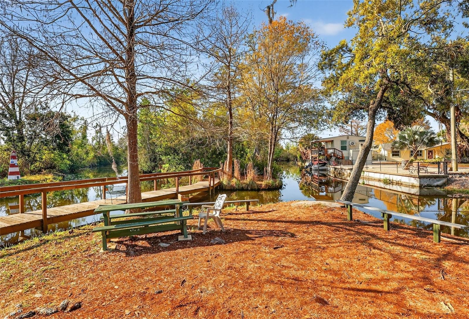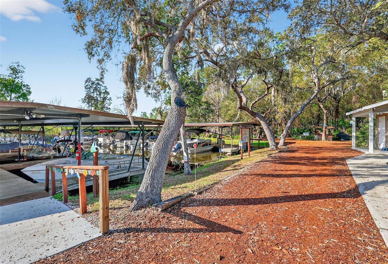 Rare, oversized corner lot just steps from the marina and Harris Chain of Lakes! Located in the highly sought-after 55+ Fox Run community in Tavares, this beautifully maintained 2-bedroom, 2-bath home sits on one of the largest lots in the neighborhood, offering extra space, privacy, and exceptional outdoor living. Inside, the home features a bright and welcoming layout with vaulted ceilings, built-in features, and a comfortable open living area that is perfect for both everyday living and entertaining. The kitchen is both stylish and functional with solid wood cabinetry, soft-close drawers, Corian solid-surface countertops, and a convenient island for preparing meals or gathering with friends. Storage is truly a standout feature, with 3 spacious walk-in closets, including 2 in the primary bedroom, giving you plenty of room for clothing, seasonal items, and organization. Step outside and enjoy Florida living at its best. The large screened porch provides the perfect space to relax with your morning coffee or entertain guests in the evening. The side-yard deck and fenced area are ideal for pets, creating a private outdoor retreat. A 12 x 13 shed/workshop with cabinets, shelves, and a workbench offers excellent space for hobbies, projects, or additional storage. Just a short walk from the home is the community marina, where residents can reserve boat slips for a small additional fee, making it easy to enjoy boating and fishing whenever you like. Adjacent to the marina is a beautiful waterfront park with benches and picnic tables, along with a long scenic boardwalk along the canal that leads directly to the Harris Chain of Lakes—perfect for peaceful walks, wildlife viewing, and enjoying spectacular waterfront sunsets. Fox Run residents enjoy an active and friendly community with amenities that include two swimming pools (one heated), a clubhouse, fitness center, and social activities throughout the year. With its rare large corner lot, exceptional storage, outdoor living spaces, workshop, and unbeatable location near the marina, this home offers the perfect combination of comfort, convenience, and the relaxed Florida lifestyle.