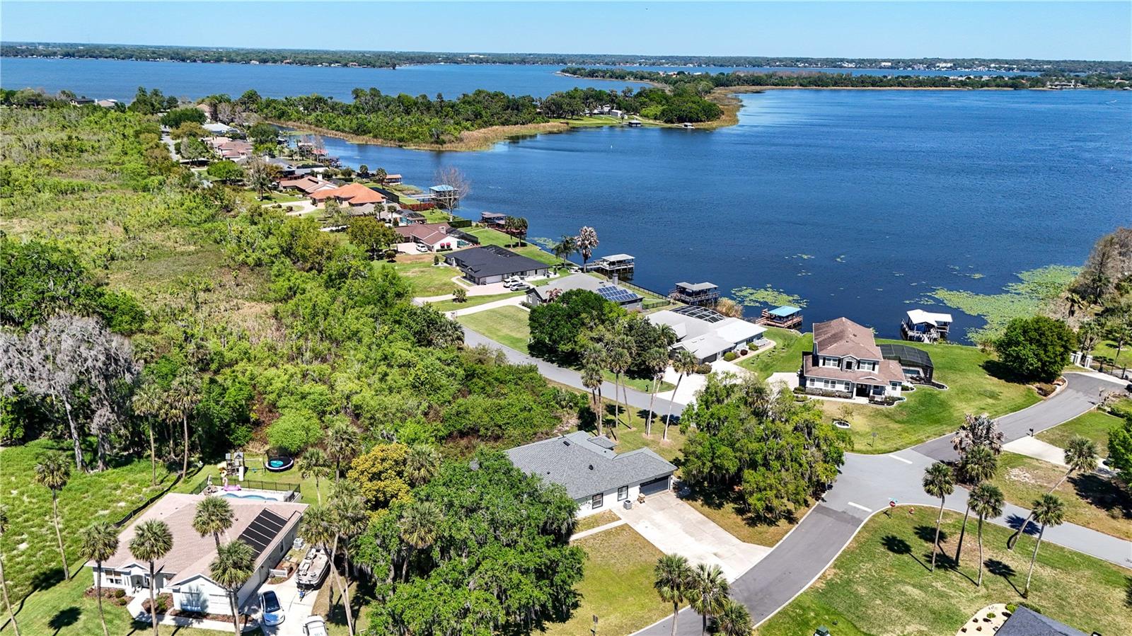 ENJOY THE BEST OF FLORIDA LIFESTYLE IN THIS POOL HOME WITH LAKE VIEWS located in a quiet, highly desirable community on Lake Beauclaire—part of the renowned Harris Chain of Lakes. This intimate neighborhood of just 45 homes offers a peaceful, rural setting with exclusive amenities including a Private Boat Ramp, Fishing Pier, and dedicated Storage Lot for Boats and RVs. This spacious 4-Bedroom, 2-Bath home is designed for both everyday comfort and effortless entertaining. The open floor plan features Formal Living and Formal Dining Room, both with serene Lake Views, while the expansive Kitchen flows seamlessly into a large Family Room overlooking the screened-in Pool. Sliding Glass Doors provide easy access to the outdoor living space—perfect for hosting gatherings or relaxing poolside. The home boasts Tile flooring throughout—no carpet—offering both style and easy maintenance. The Primary Suite is a private retreat with a Walk-in Closet, Dual Sinks, a Walk-in Shower, and a luxurious Garden Soaking Tub. On the opposite side of the home, two additional bedrooms share a full bath with convenient pool access, while a fourth bedroom near the interior laundry room is ideal for guests, a home office, or flex space. Roof 2022, AC 2017, Water Heater 2025, Pool Pump 2025, Dishwasher 2025, Range 2025. Additional highlights include a Side-entry two-car Garage, extended Driveway 2018 with room for four vehicles, and a large corner lot situated on a quiet dead-end street. Golf enthusiasts will appreciate the short golf cart ride to Deer Island Country Club for a round on the scenic 18-hole course. Conveniently located with easy access to the Orlando area, as well as the charming downtowns of Mount Dora and Tavares—where you can enjoy Seaplane Adventures, Live Entertainment, Waterfront Dining, and vibrant Local Events. This is Florida Living at its finest—Lake Life, Privacy, and Convenience all in one exceptional property.