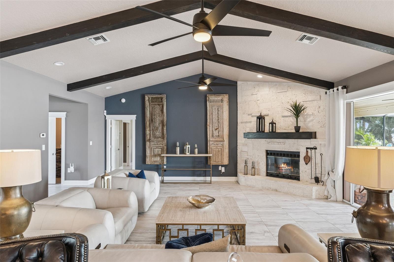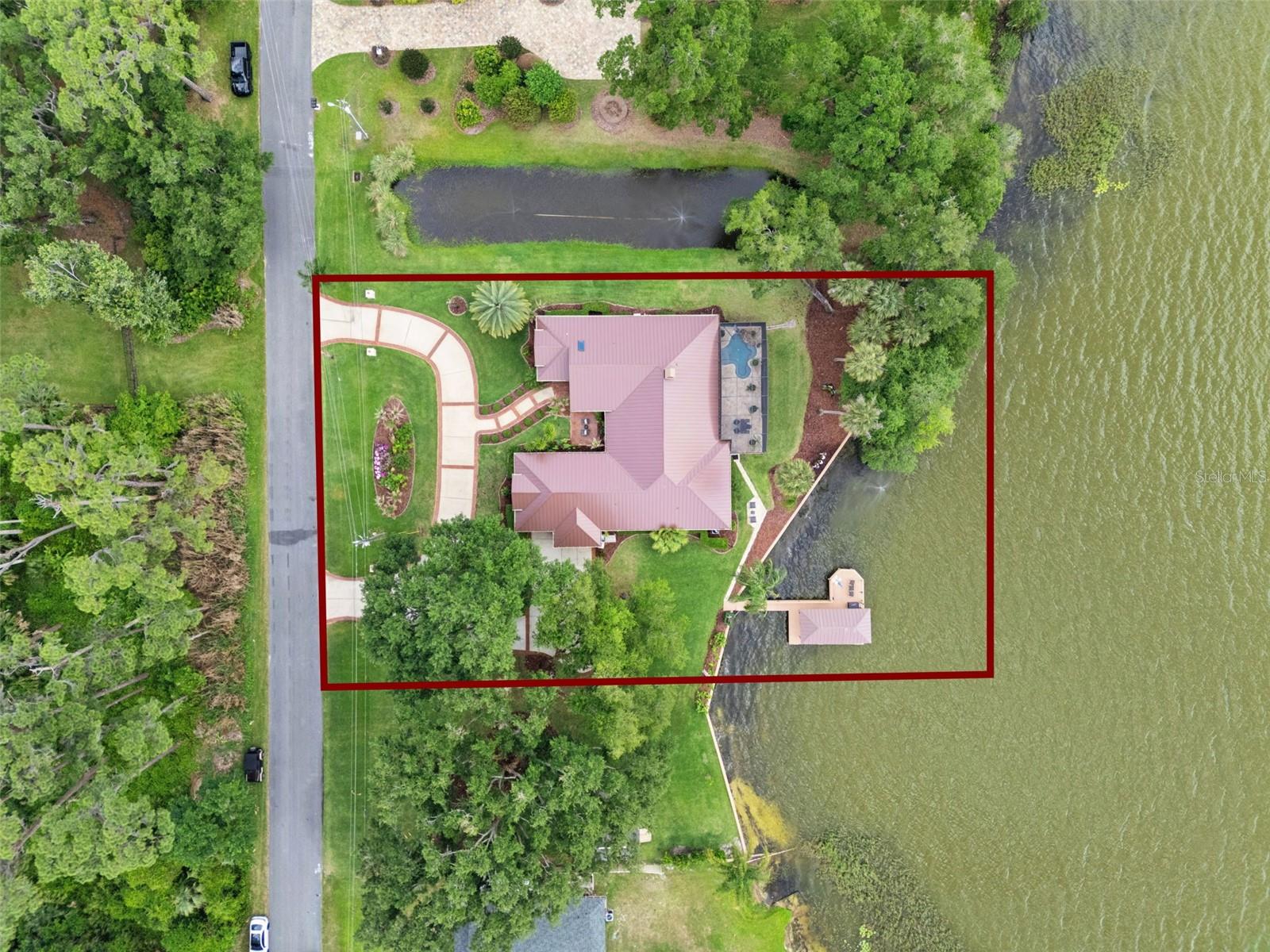 Imagine waking up every morning to breathtaking sunrise views over LAKE DORA, one of the crown jewels of the renowned Harris Chain of Lakes. This exceptional lakefront estate offers the ultimate Florida waterfront lifestyle on a rare 1-acre double lot boasting an impressive 305 ft of solid CONCRETE SEAWALL, a feature seldom found and highly coveted for its unmatched water frontage and stability. Completely renovated in 2020, this 3-bedroom, 2 1/2-bathroom home welcomes you through elegant double front doors into an expansive, light-filled open-concept living area. Towering windows and strategic design ensure PANORAMIC LAKE VIEWS from every room in the house. A wood-burning fireplace serves as the heart of the living room. The gourmet kitchen is a true showstopper, featuring quartz countertops, a massive island with abundant seating and prep space, new Thermador appliances and seamless flow into the living area. A custom-built bench seat nestled beneath a large picture window invites you to sit and soak in the serene lake views while enjoying a morning coffee or entertaining guests. Pocket sliding glass doors disappear completely, blurring the lines between indoor and outdoor living as they open wide to the resort-style backyard. One bedroom was masterfully reimagined as a sophisticated wet bar, complete with a huge picture window framing the sparkling lake, an ideal spot to craft cocktails while watching the sunset or hosting unforgettable parties. The spacious primary suite offers a private sanctuary with generous room for a king-sized bed and sitting area. It features direct access to the pool patio with pocket sliding doors overlooking the pool and lake. The exquisite master bathroom is a SPA-LIKE RETREAT with luxurious finishes, designed for ultimate relaxation with a skylight that provides optimum natural lighting. The additional bedroom provides flexible space for family, guests, or a home office. The large screened enclosure protects a sparkling SPOOL, an integrated pool + spa combination, a 4’ Waterfall, and an 18-FT ELECTRIC RETRACTABLE SCREEN allows you to open the space completely on perfect Florida days. The expansive pool deck offers ample room for sunbathing, dining, and large-scale entertaining. A fully equipped summer kitchen makes outdoor hosting effortless and a MOSQUITO NIX SYSTEM helps keep pests away. Both front and back porches feature upgraded Tongue and Groove ceilings. Additional outdoor highlights include a tranquil POND WITH 2 FOUNTAINS, plus a FOUNTAIN IN THE LAKE along the seawall. Permanent exterior GOVEE lighting illuminates the property beautifully after dark, there is a PRIVATE DOCK complete with boathouse and boat lift, both the main house and boathouse have BRAND NEW METAL ROOFS for lasting peace of mind, convenient 50-amp RV hook-up for visiting family or friends and a circle driveway and mature landscaping enhance superb appeal. With Plantation Shutters and crown molding throughout, premium finishes, whole house generator and thoughtful details at every turn, this home delivers both everyday luxury and exceptional entertaining capabilities. Expansion Opportunity: The current owners have professional plans drawn up to convert the existing garage into two additional bedrooms plus a Jack-and-Jill bathroom, while constructing a new two-car garage. The Harris Chain of Lakes is famous for its world-class fishing, scenic boating routes, waterfront restaurants and bars, and even seaplane access.