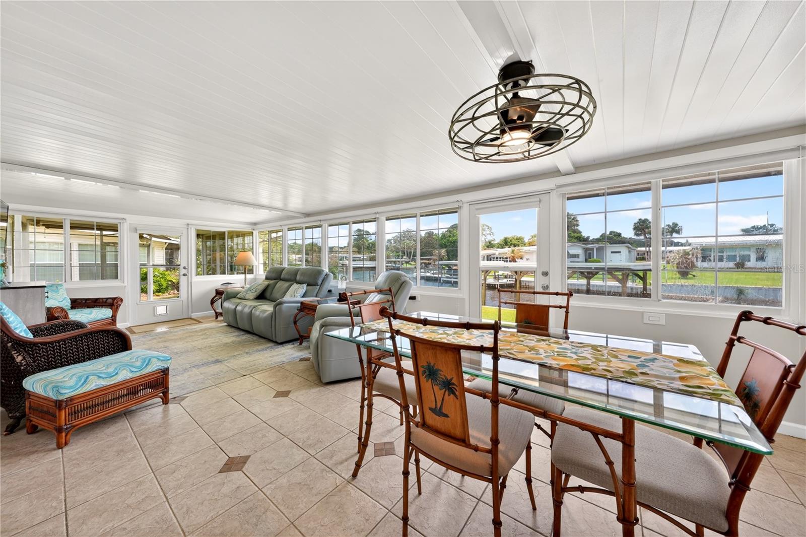 Enjoy the best of canal front living in this fully furnished 2 Bedroom/2 Bathroom home featuring a private boathouse and easy access to the Harris Chain of Lakes! Step inside to the bright and spacious living/dining room concept, boasting a sliding barn door that seamlessly connects to the charming kitchen, equipped with two closet pantries and a built-in storage credenza. The sun-drenched Florida room features a large indoor laundry room with an additional refrigerator, utility sink, and extra storage. The grand primary bedroom is a true standout, showcasing two closets, a dressing area with an oversized vanity, and a private ensuite tucked behind a sliding barn door. The secondary bedroom is perfect for guests, an office, or a hobby room, and is complete with two closets! The additional bathroom is highlighted by a chic vanity with a designer glass vessel sink and a tub-shower combo. Outside, find a screened-in porch and an open patio overlooking the serene waters-perfect for relaxing or entertaining! Additionally, find your own private boathouse and dock, a large yard, and olive, orange, and lime trees! The expansive double driveway features a double carport and an attached shed for extra storage. Upgrades include: AC unit with heater, roof (2025), carport (2025), shed (2025), seawall (2023), vinyl siding, sprinkler system, landscaping and fruit trees, partial rework of boathouse, new paver patio, and screen door. HOA/COMMUNITY: Imperial Terrace East is a highly desirable 55+ retirement community offering AMENITIES galore! Community amenities include a clubhouse, boat slips, Harris Chain of Lakes access, shuffleboard courts, a community pool, and so much more! Featuring a low HOA fee and NO LOT RENT - you OWN the land! Imperial Terrace East is located off Hwy 441, just minutes from shopping, dining, entertainment, state-of-the-art medical facilities, PLUS, renowned local destinations - Mount Dora and The Villages! Easily commute to the beach coasts, Orlando attractions, airports and everywhere exciting that makes Floridians love living ‘central’ in the Sunshine State, year ‘round or seasonal. Call to schedule your personal tour today!