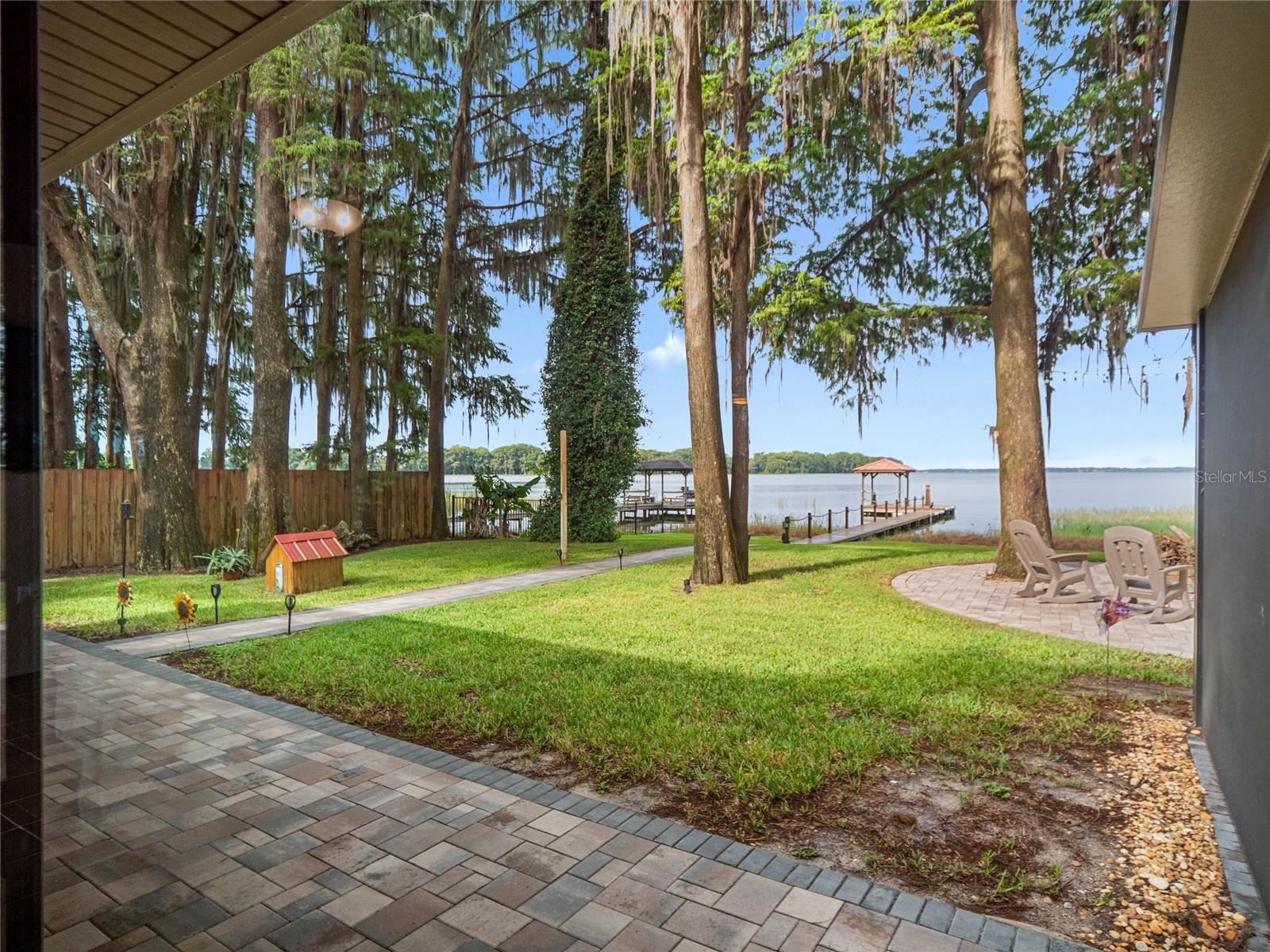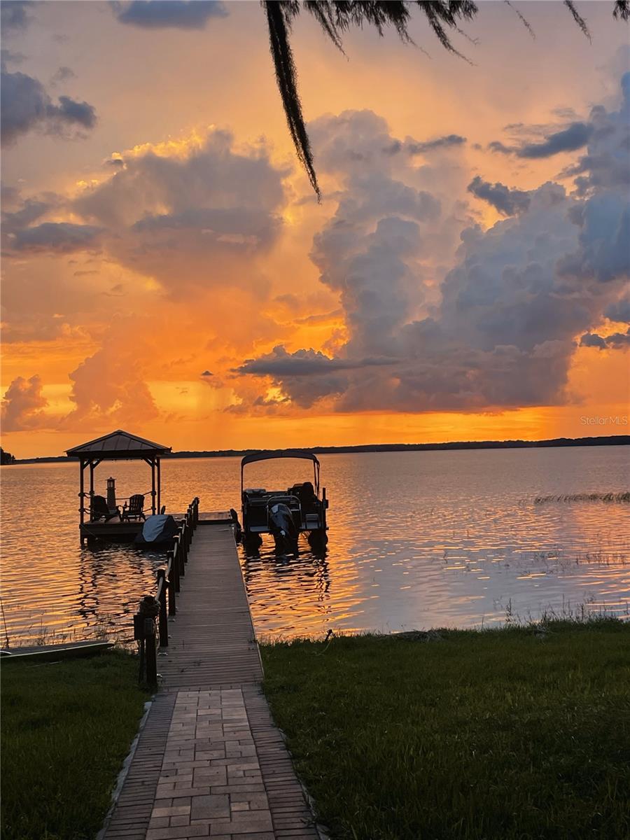 WATERFRONT HOME ON LAKE HARRIS!!!!! Bring your boat, savor stunning sunsets, and drive your golf cart to downtown Tavares for waterfront dining or sea plane views—lakefront living at its finest! Welcome to a truly exceptional lakefront oasis on Lake Harris, where every detail has been crafted for luxury and comfort. This one-of-a-kind property offers not just a home, but a lifestyle, with panoramic lake views from every major room making it a daily retreat into serenity. Imagine waking up to the sun rising over the water and ending your day with breathtaking sunsets that paint the sky. The heart of the home is a beautifully designed open kitchen that flows seamlessly into the family room, perfect for entertaining and daily living. There are sliding glass doors across the entire back of the house to capture views of your own wildlife sanctuary. Step outside to your private dock where possibilities for adventure are endless. Whether you own several boats there’s ample space to dock them all. This unique property also includes a boathouse with a lift on the canal across from the guesthouse for smaller watercraft providing easy access and convenience out to the lake. Boating enthusiasts will appreciate the prime location, offering easy navigation to the charming town of Mount Dora and the entire Chain of Lakes. Enjoy leisurely trips to local waterfront restaurants. The property itself is an entertainer’s dream. A full-size guest house or mother-in-law suite with its own entrance off the shared courtyard ensures that your visitors will always feel welcome. The Spanish-style screened patio overlooking the courtyard provides an intimate setting for morning coffee or evening drinks. Meanwhile, the large, oversized screened patio at the back of the house, fully paved and perfectly positioned to capture the stunning lake views, is ideal for larger gatherings or simply relaxing in the tranquility of your surroundings. For cozy nights, there’s even a separate fire pit area where you can unwind under the canopy of stars. Storage will never be an issue with this property. The attached garage is equipped with extensive shelving, an open carport with pavers offers the perfect spot to store a boat, kayaks or RV under cover. The guest house includes two additional garages—one sized for a single car and the other designed specifically for a golf cart. The city of Tavares is golf cart-friendly, making it easy to travel to the downtown area to watch sea planes take off or enjoy the many unique restaurants. Spanning over 1/2 of an acre, this property is surrounded by a lush array of trees, including majestic cypress trees that create a natural canopy over the backyard, enhancing the sense of privacy and connection to nature. This Lake Harris home is more than just a place to live—it’s a place to create memories, to enjoy the beauty of nature, and to embrace a lifestyle that is both luxurious and relaxed. Don’t miss the opportunity to own this truly stunning, one-of-a-kind property where every day feels like a vacation.