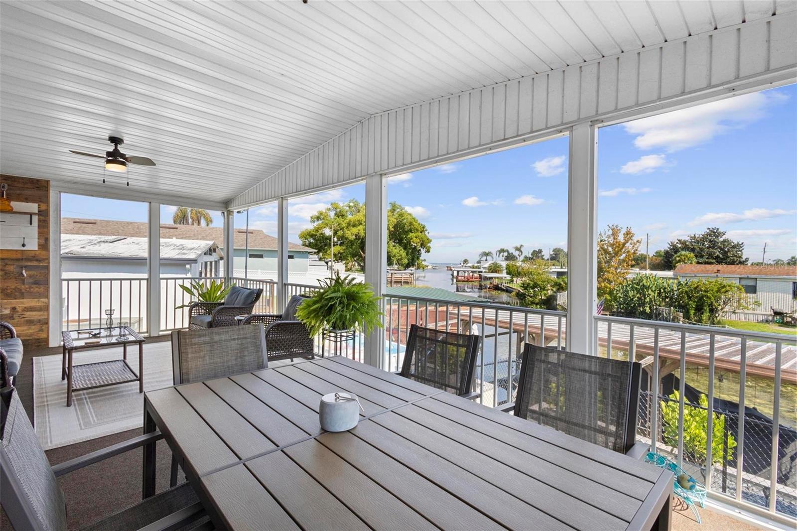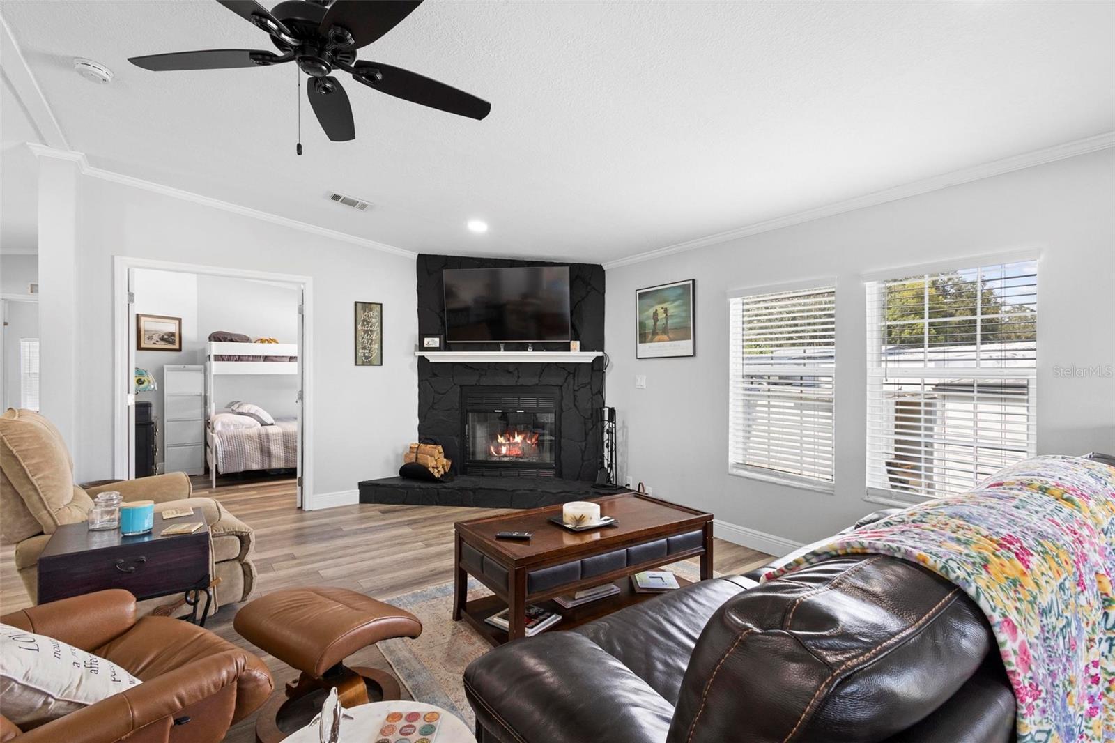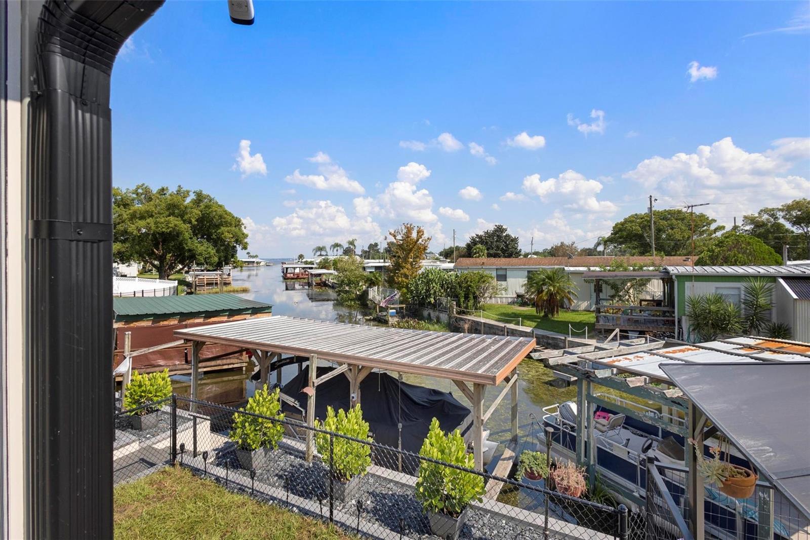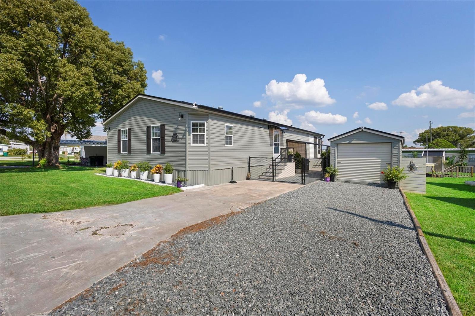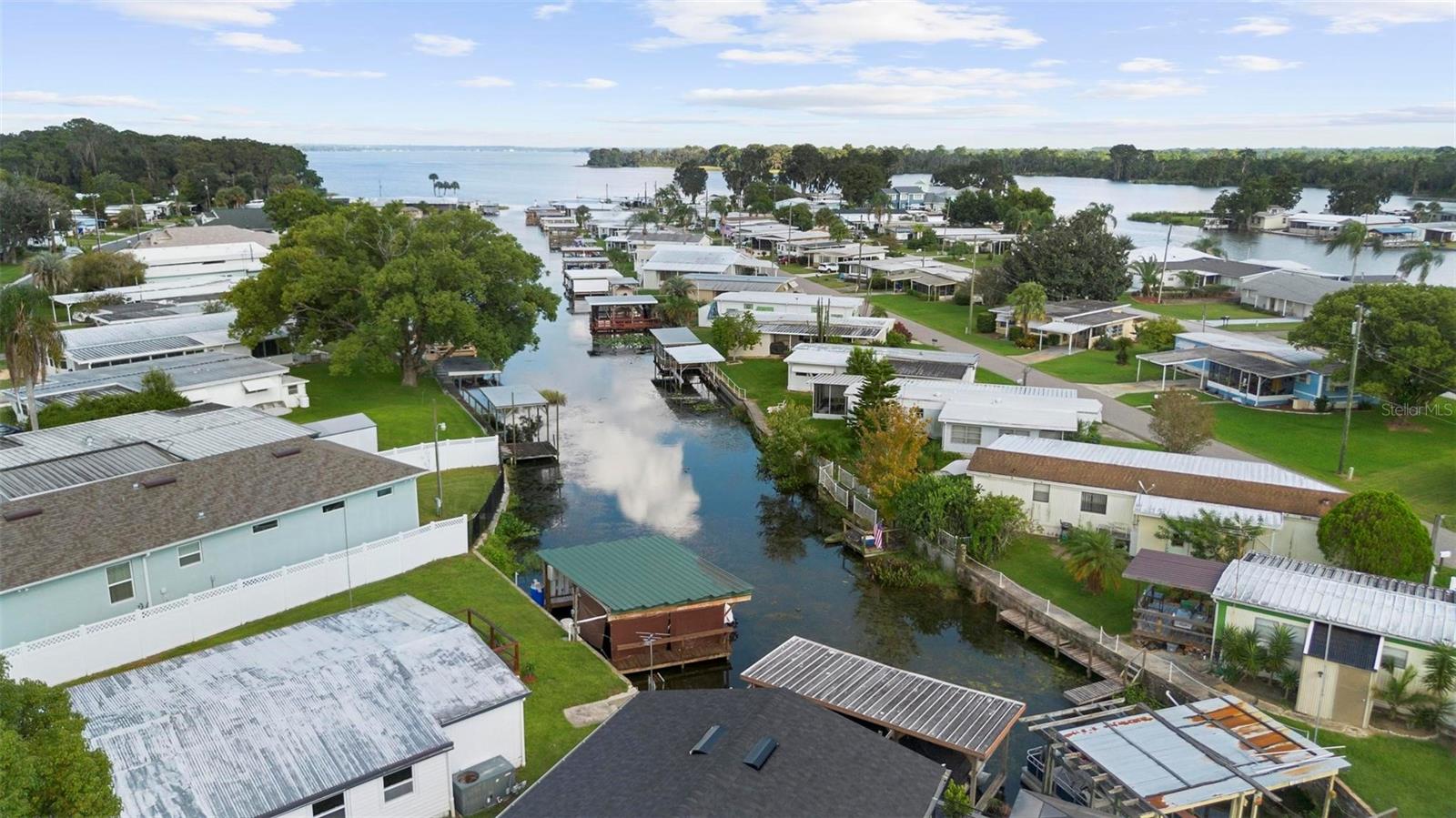 1333 Westland Dr. is a charming waterfront manufactured home located in a 55+ Golf Cart Community, situated on a Lake Dora Canal with 69 feet of lakefront offering stunning views of the community and the town. This lovely home has been beautifully updated and is ready for move-in. It features 1,188 square feet, 2 large bedrooms, and 2 full baths. The home also boasts a brand new roof replaced in 2024, a golf cart garage, and a shed. Additionally, it has been freshly painted inside and out, with new luxury vinyl plank flooring. A beautiful knockdown ceiling with new recessed lighting has been added. The 2006 manufactured home has been impeccably maintained, and new black-stainless appliances are included. The bathrooms have been modernly updated, with the guest bath being brand new. The wood-burning fireplace has been freshly painted and is in excellent working condition. Imagine sipping your tea or coffee while enjoying the views, sunrise, fireworks, shuttle launches & more from the fully screened-in spacious back porch overlooking Lake Dora. Enjoy the Small private above-ground pool, and Privately owned BOAT LIFT for your Boat! This property is a must-see, so schedule your private tour before it's too late. The property also boasts a low HOA fee of $23. Short golf cart ride to downtown Tavares and not too far from the beautiful city of Mount Dora.