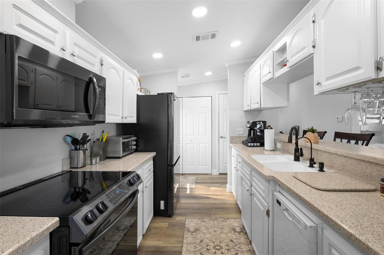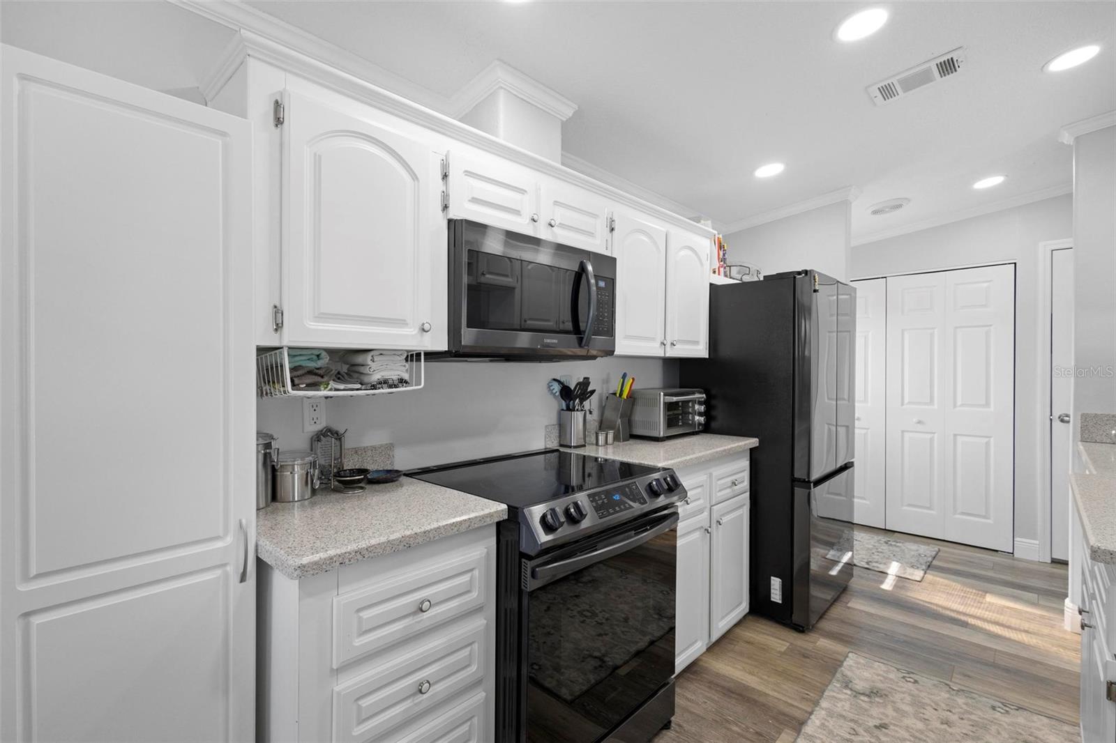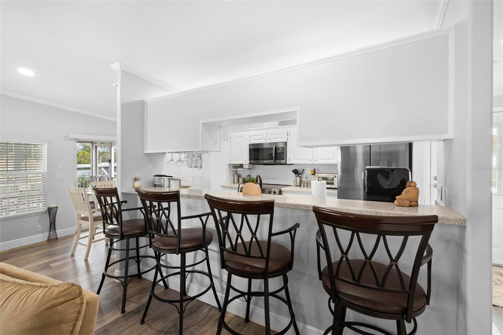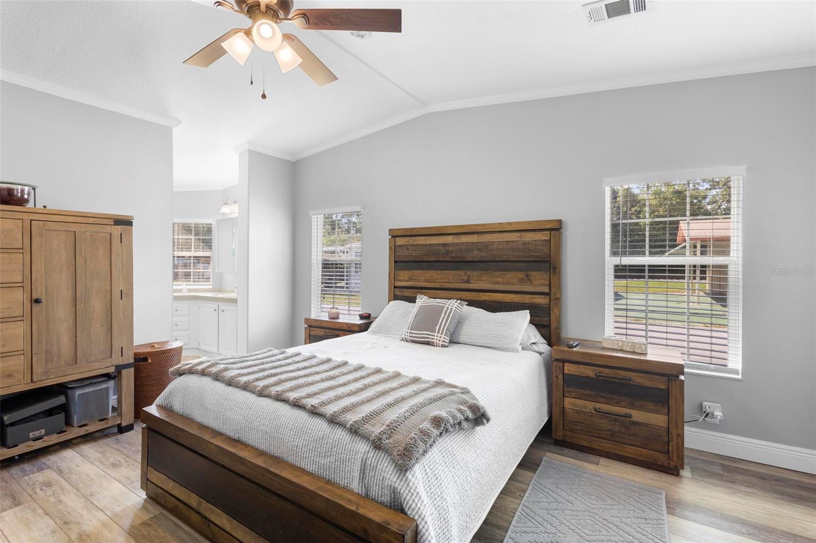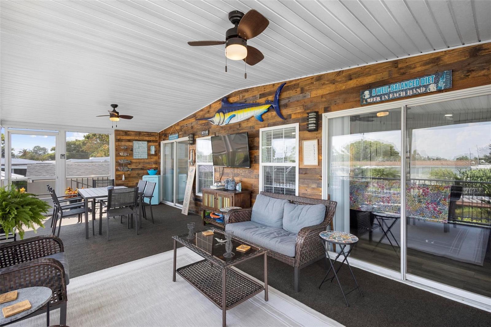 1333 Westland Dr. is a charming waterfront manufactured home located in a 55+ Golf Cart Community, situated on a Lake Dora Canal with 69 feet of lakefront offering stunning views of the community and the town. This lovely home has been beautifully updated and is ready for move-in. It features 1,188 square feet, 2 large bedrooms, and 2 full baths. The home also boasts a brand new roof replaced in 2024, a golf cart garage, and a shed. Additionally, it has been freshly painted inside and out, with new luxury vinyl plank flooring. A beautiful knockdown ceiling with new recessed lighting has been added. The 2006 manufactured home has been impeccably maintained, and new black-stainless appliances are included. The bathrooms have been modernly updated, with the guest bath being brand new. The wood-burning fireplace has been freshly painted and is in excellent working condition. Imagine sipping your tea or coffee while enjoying the views, sunrise, fireworks, shuttle launches & more from the fully screened-in spacious back porch overlooking Lake Dora. Enjoy the Small private above-ground pool, and Privately owned BOAT LIFT for your Boat! This property is a must-see, so schedule your private tour before it's too late. The property also boasts a low HOA fee of $23. Short golf cart ride to downtown Tavares and not too far from the beautiful city of Mount Dora.