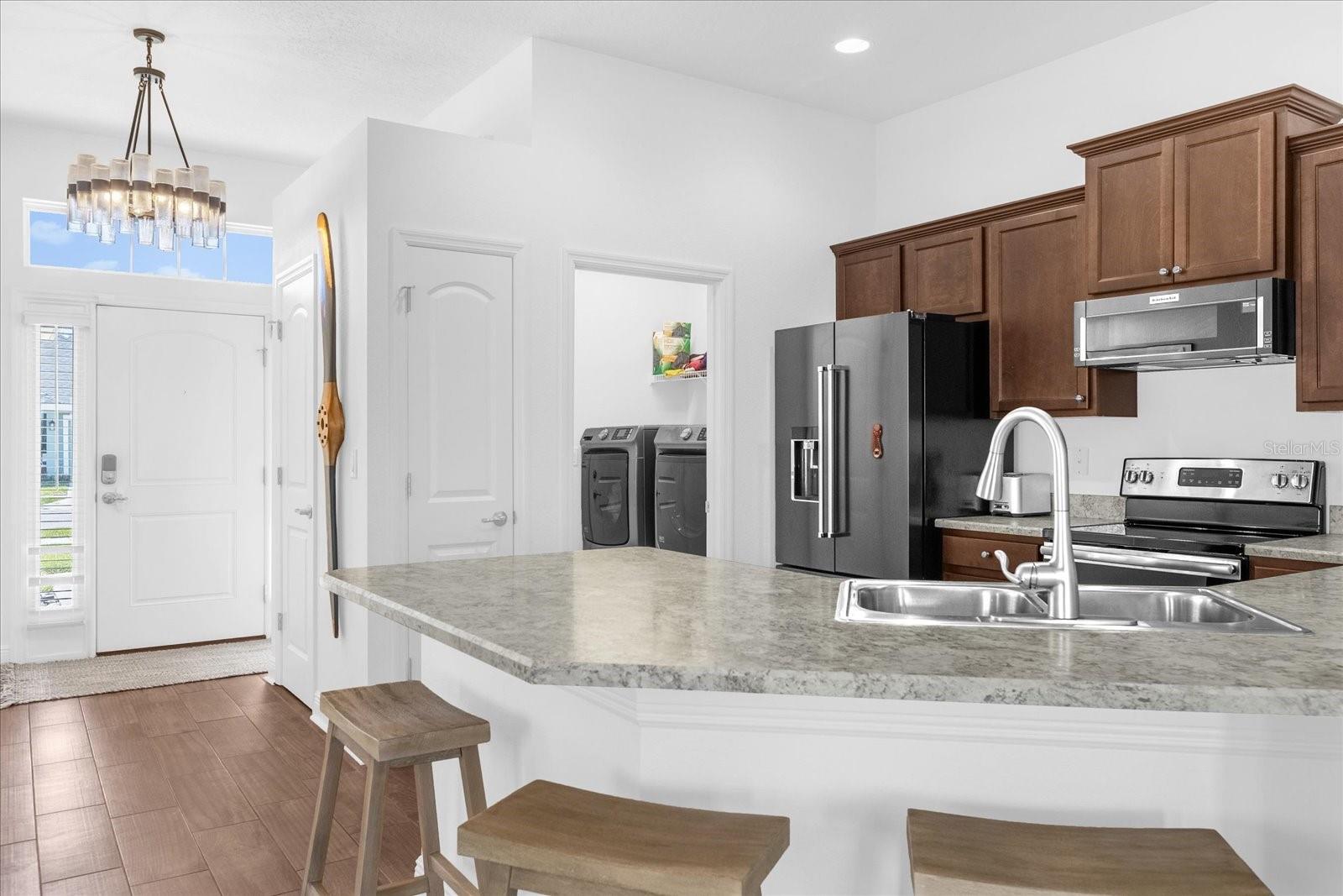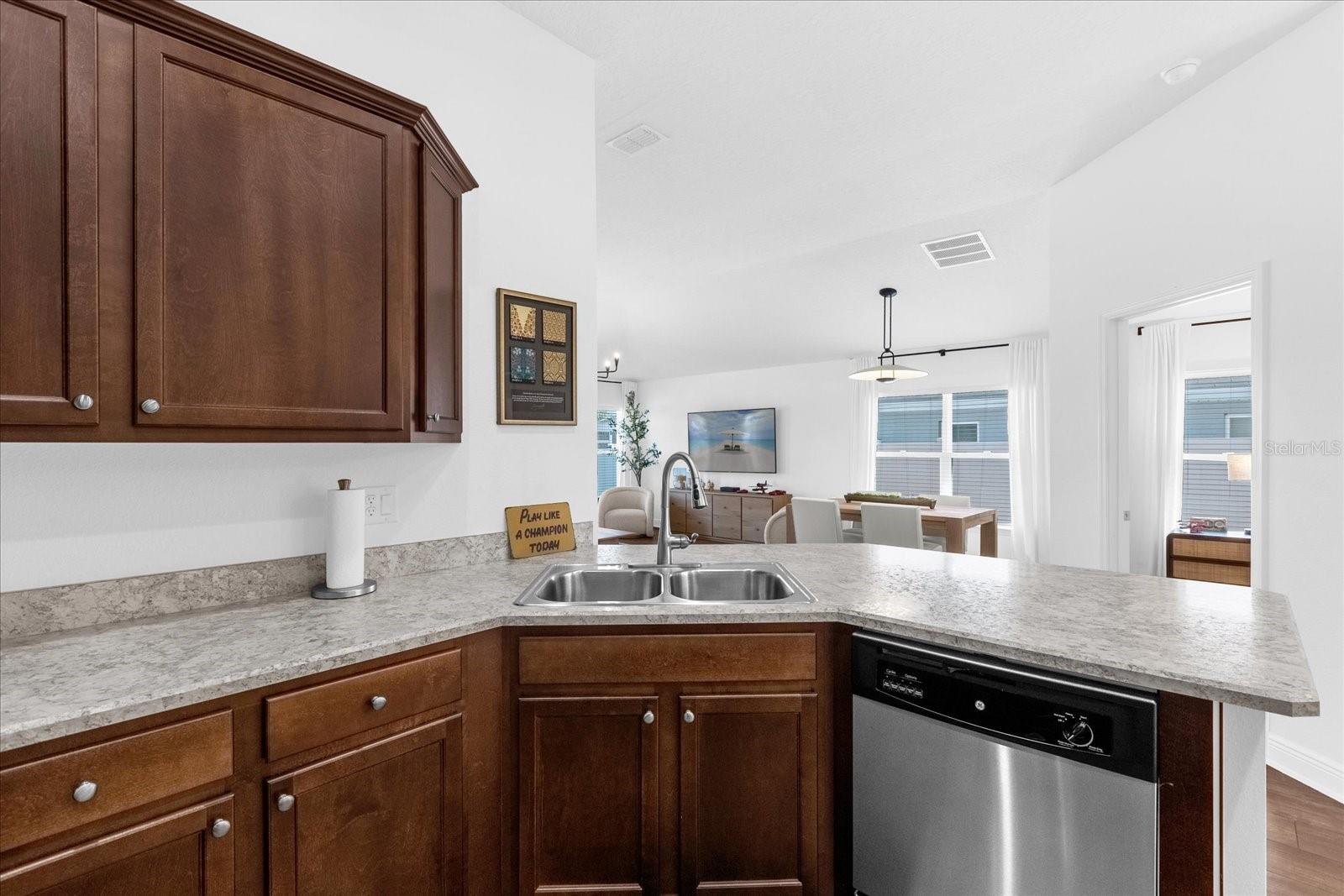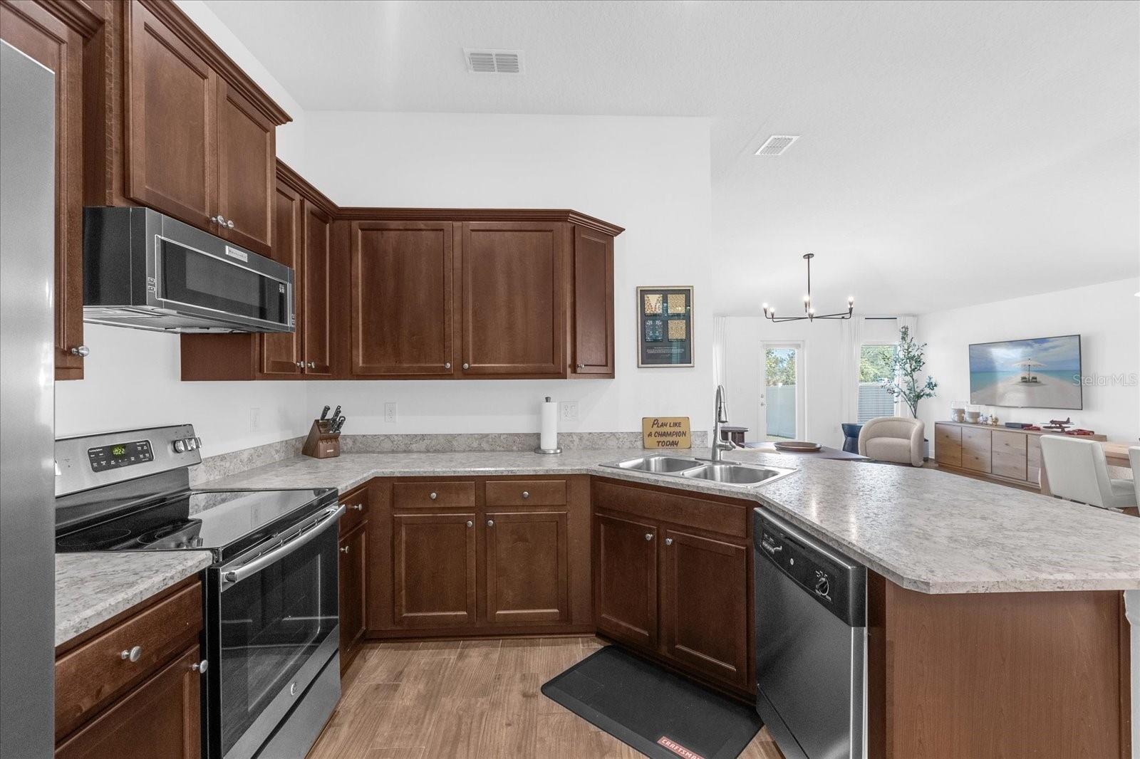 Stunning lakefront home in sought-after Tavares, FL—known as the Seaplane City! Experience tranquility in this 4-bedroom, 2-bath residence on Lake Saunders, a 336-acre private spring-fed lake perfect for fishing, boating, or soaking up the Florida sun from your own dock. This home features an open floor plan, soaring ceilings, and beautiful vinyl flooring throughout. The spacious primary bedroom includes a garden tub, separate shower, and walk-in closet. The interior has been freshly painted and boasts upgraded lighting, while the garage features durable epoxy flooring. On the exterior, enjoy lovely landscaping that enhances curb appeal, along with an upgraded sprinkler system fed by the lake to keep the grounds vibrant. Newly installed vinyl fencing ensures your privacy. The custom floating dock adjusts with the tide and features a long walkway made of synthetic wood, keeping your feet dry. Conveniently located within an hour of the beaches and just 45 minutes from downtown Orlando, with a seaplane base only 10 minutes away. Buyer has the option to purchase the home furnished for a bundled price. Don’t miss out—schedule your private tour today!