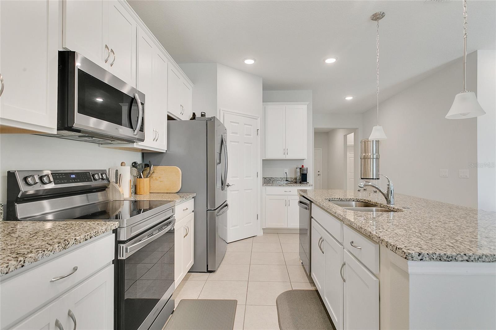 One or more photo(s) has been virtually staged. Welcome to the Portland home designed with a spacious living area, great for entertaining family and friends with upgrades throughout. Meticulously maintained, this home also serves as a “safe space” for those facing Multiple Chemical Sensitivities (MCS), and kept as chemical-free, smoke free, pet free and fragrance free, along with air purifiers throughout. The kitchen island anchors the open floor-plan and serves as is the hub of the home featuring 42-inch upper cabinets and stainless steel appliances throughout, while overlooking dining and living rooms. Backyard features premium vinyl fencing with gated access on both sides, an extended lanai with a smokeless fire pit for evening enjoyment. This home also features motion flood lights for additional security. The Avalon Park community on Lake Hermosa offers over 155 acre planned community with future mixed use town center within the community. Residence are surrounded by 15 acres of parks, lakes and nearby recreational space, community pool, walking paths along sidewalks and lake views. Centrally located, you will enjoy the convenience of a quick five miles to the dining and the shops of Mt. Dora, Eustis. Or take a 45 minute drive to enjoy the performing arts, sports, and entertainment of Orlando and the theme parks. NOTE: Home warranty is transferable to buyers at no cost.