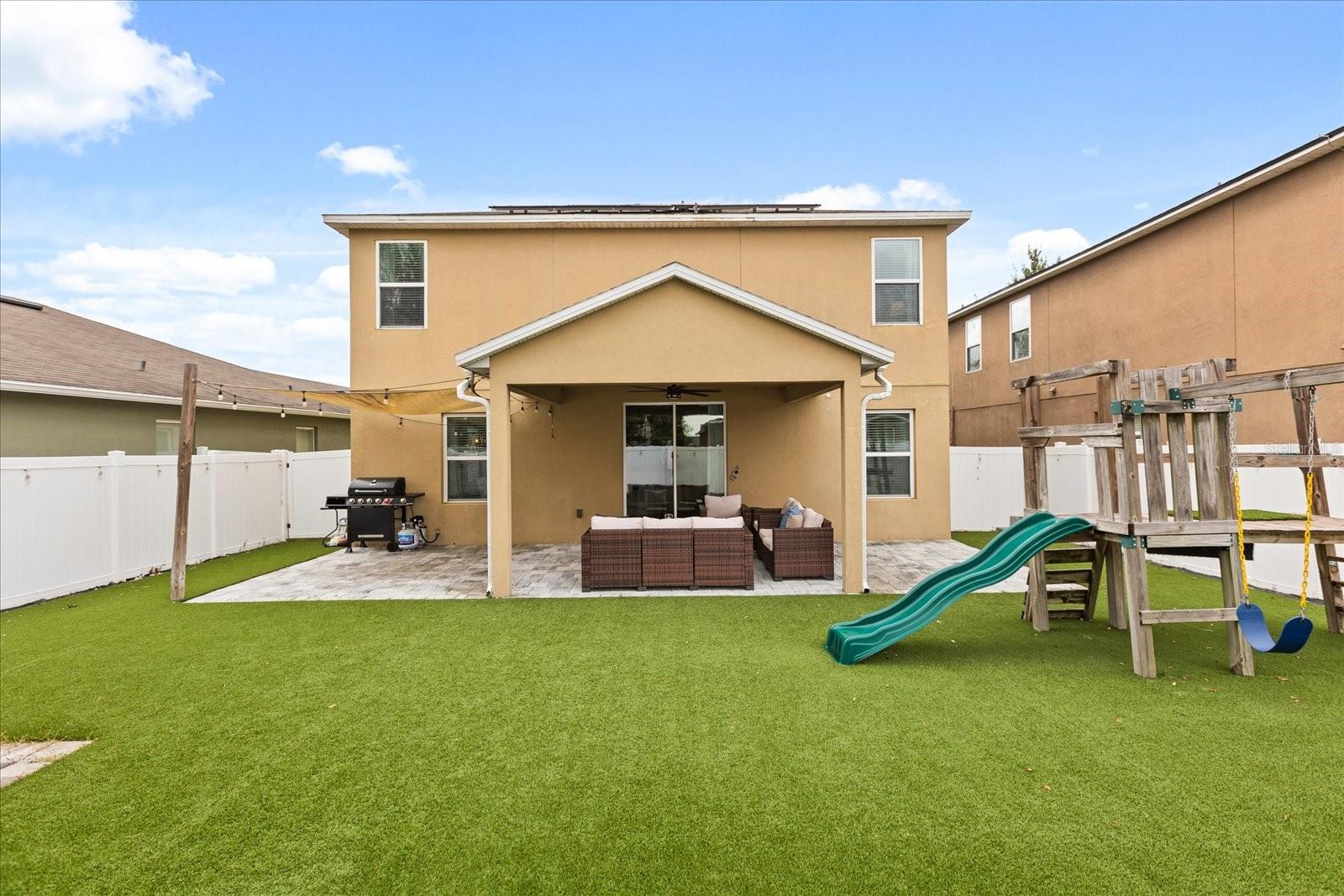 Welcome to your dream home in the desirable Oak Bend community. Enjoy $10,000 towards your closing costs by working with our lender. This beautifully maintained, two-story single-family residence boasts a spacious, family-friendly design, perfect for creating lasting memories. Built in 2014, this energy-efficient home features a modern aesthetic with recent updates, including new appliances and fresh paint in 2023, ensuring a move-in ready experience. Situated on a peaceful cul-de-sac, this home offers a perfect retreat with a low-maintenance backyard, complete with a covered paved patio and a cozy fire pit area—ideal for relaxing evenings and entertaining guests. This property features a 2-car garage, providing ample parking and storage. The gated community offers exclusive access to a sparkling pool and playground, making it an ideal environment for families seeking safety and recreation. Located just a short drive from Hickory Pointe Park, Downtown Mount Dora, Tavares, and the Florida Turnpike, this home combines tranquility with convenience. Step inside to discover a thoughtfully designed interior. The family room and dining area, freshly painted in 2023, create a welcoming space for gatherings. The spacious bedrooms, all located upstairs and also painted in 2023, feature built-in closets, offering plenty of storage. The laundry closet include, washer and dryer. The kitchen is a chef’s delight, It offers modern cabinetry and a functional layout conducive to family meals and entertaining. The backyard, redone in 2023, features lush grass turf and new patio pavers—perfect for outdoor enjoyment. Residents enjoy access to a community pool within this gated neighborhood, enhancing the lifestyle of leisure and relaxation. The prime location in Tavares, known as the Sea Plane capital, offers lakeside activities just across the street, including fishing, boating, and scenic parks. Recreational parks with picnic areas, piers, sand volleyball, and magnificent lake views are within 2-3 miles, providing endless outdoor fun. Don’t miss the opportunity to own this exceptional home in a prime location! Act now to schedule your private tour and make this stunning property yours today. Your perfect family lifestyle awaits!
