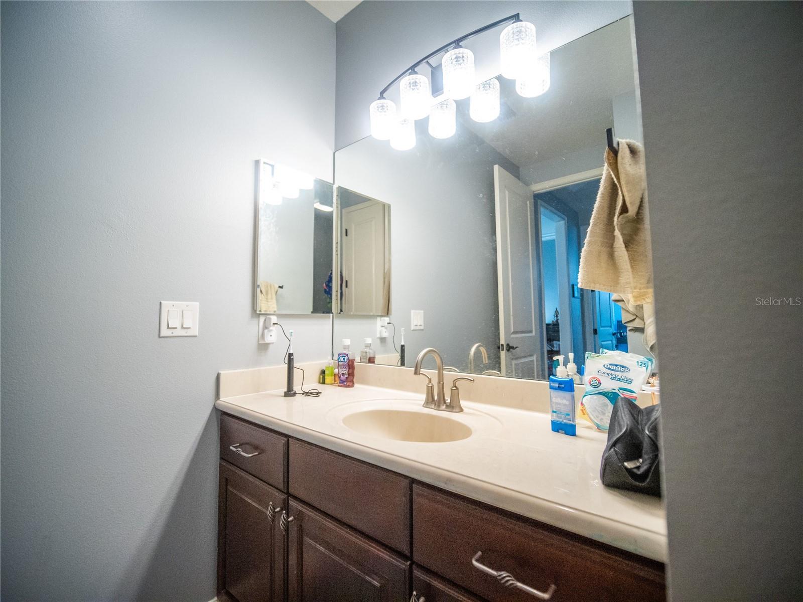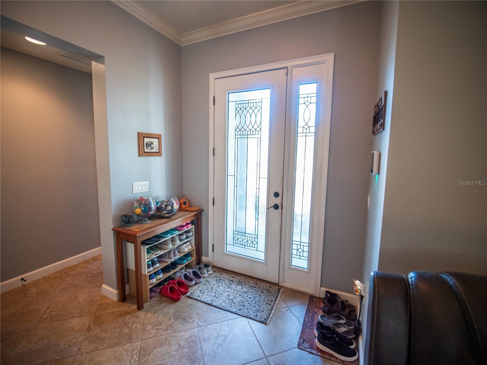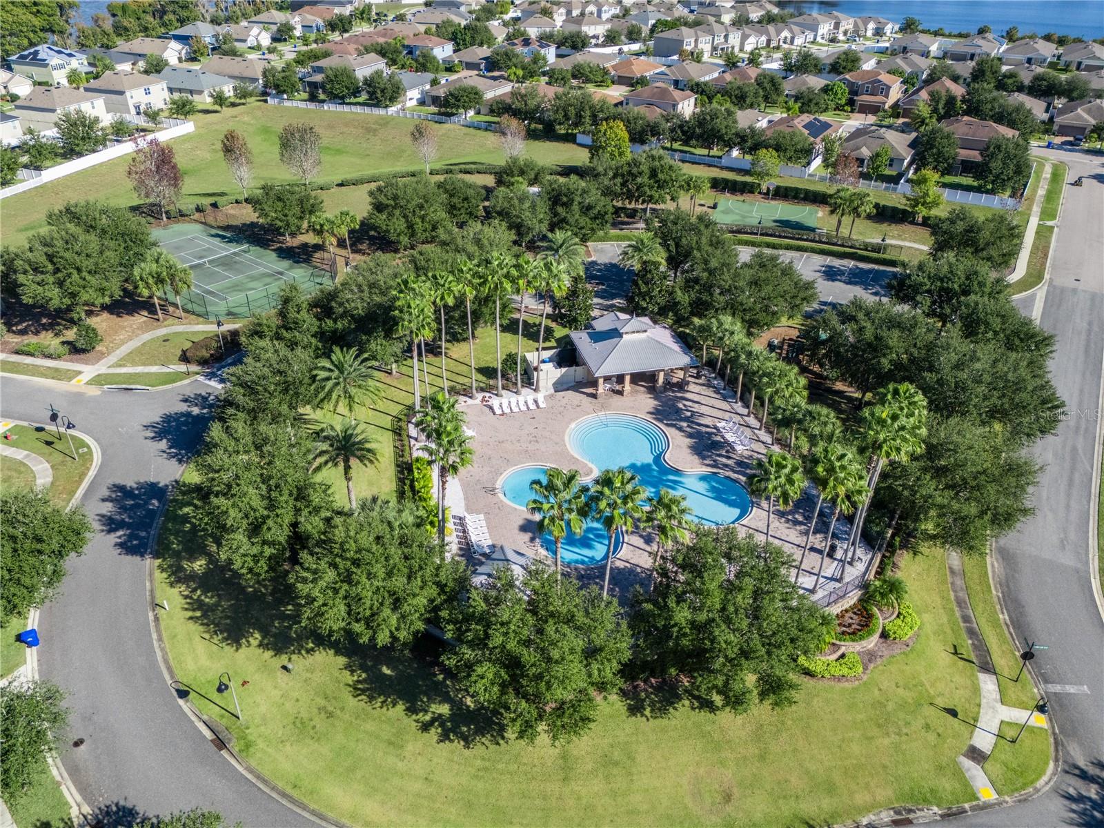 Luxury abounds in this stunning 3-bedroom, 3.5-bath former model home, filled with high-end upgrades and generously sized rooms throughout. From the moment you arrive, the gated community entrance with its tower and waterfall feature sets the tone for what’s to come. The home sits on an elevated corner lot along a one-way street, offering both privacy and curb appeal. A staircase leads you up to the covered front porch, welcoming you inside to an open, light-filled floor plan featuring 10-foot ceilings, 8-foot doors, crown molding, and plantation shutters throughout. The oversized great room and dining area flow seamlessly into a chef’s dream kitchen, complete with quartz countertops, a large center island and breakfast bar, custom wood cabinetry with under-cabinet lighting, pull-out drawers for pots and pans, and a large walk-in pantry with custom shelving. High-end appliances include built-in oven and microwave, convection oven, cooktop with custom wood exhaust hood. Off the dining area you’ll find a spacious media room with its own covered porch overlooking the rear alley, along with the laundry room that leads to the over-sized garage and concrete pavers inlayed on the driveway with alley access. The luxurious spacious first floor primary suite features an ensuite bath complete with a quartz vanity area with dual sinks, garden soaking tub, separate shower & leads to a huge custom walk in closet. Upstairs, a beautiful wood staircase opens to a huge bonus room & balcony, & offers endless possibilities including use as a potential 4th bedroom. The second floor primary suite comes complete with an en-suite bath & walk in closet. An additional roomy guest bedroom with an adjacent hall bathroom completes the second level. Built with solid block construction, this home is designed for efficiency and durability, featuring double-pane windows and a long-lasting metal roof. Community amenities are just as impressive and include the gated entrance, community pool, playground, tennis and basketball courts, gazebo and barbecue area, and a fishing pier on Lake Eustis. The HOA covers full lawn care, making this a true lock-and-leave, low-maintenance lifestyle. Conveniently located near Advent Health & easy commute to Orlando via the 429 Expressway extension, this home truly has it all. Schedule your showing today and experience luxury living with ease!