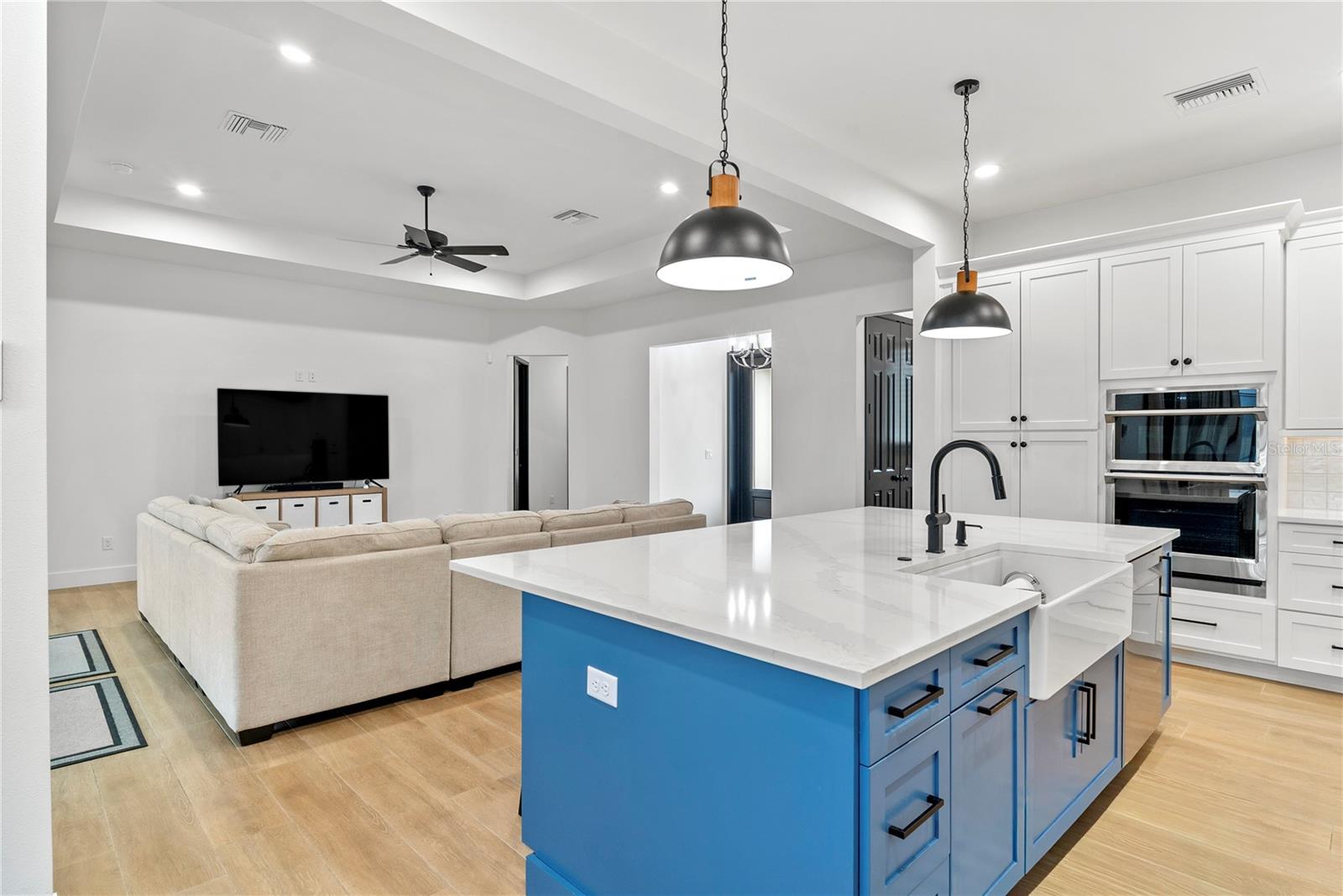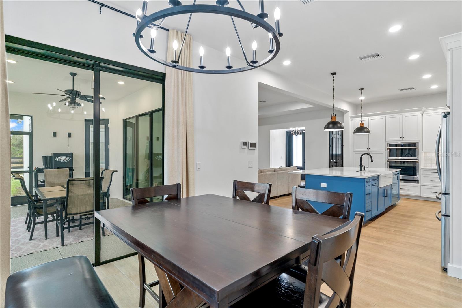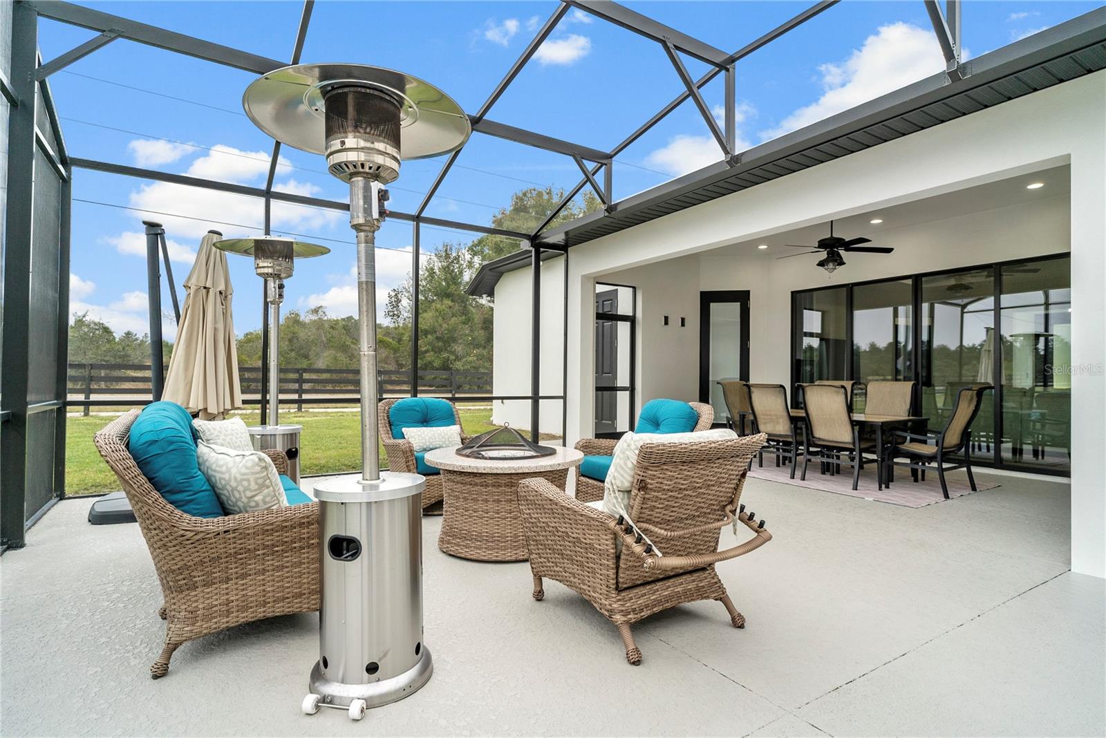 Enjoy lake access to the Harris Chain of Lakes through private community boat ramps, paired with 2.1 fully cleared acres and a nearly new custom home. This property offers a rare blend of space, privacy, and a lifestyle built around the water and open land. The home welcomes you into a bright, open-concept living space that serves as the central hub for everyday living and entertaining. Sliding glass doors lead to an extended screened-in lanai, creating seamless indoor-outdoor living and overlooking the expansive cleared property. With the acreage already cleared, the land offers a true blank canvas—ideal for a pool, outdoor living areas, or your own private retreat. The thoughtfully designed split floor plan provides both comfort and privacy. A private office/den is positioned near the front of the home, while the primary suite is tucked away, featuring two walk-in closets and an en-suite bath with dual vanities, soaking tub, and a separate walk-in shower. On the opposite side of the home, two bedrooms share a full bathroom, and a fourth bedroom with an additional bath is privately located toward the rear, perfect for guests or multigenerational living. Tile flooring runs throughout, complemented by 10-foot ceilings, upgraded fixtures, and enhanced lighting for a clean, cohesive feel. The kitchen anchors the home with quartz countertops, an oversized island with extra storage, 42-inch cabinets with crown molding, soft-close drawers, and built-in oven and microwave. Quartz countertops continue throughout all bathrooms. The oversized garage offers exceptional functionality with a 50-amp outlet, attic lift with power, and a high-efficiency 17-SEER AC system. Additional features include bronze-finish window frames and sliding glass doors, gutters, and an expanded concrete driveway. Designed with future flexibility in mind, the home is generator-ready with a leased 500-gallon propane tank, underground supply to the patio, two transfer switches, and an underground chase—making it easy to add an outdoor kitchen or whole-house generator. The property is part of the Hidden River Lake HOA, which provides access to two private boat ramps located within the gated portion of the community. The home itself is not gated, allowing easy access while still enjoying private lake privileges. The property is on city water and sewer and zoned for horses. Conveniently located just minutes from the shops and dining of Mount Dora and the waterfront attractions of Tavares, this home offers the best of both convenience and tranquility. This is more than a home—it’s a lifestyle. Space, lake access, thoughtful upgrades, and the freedom to create your own Florida dream.
