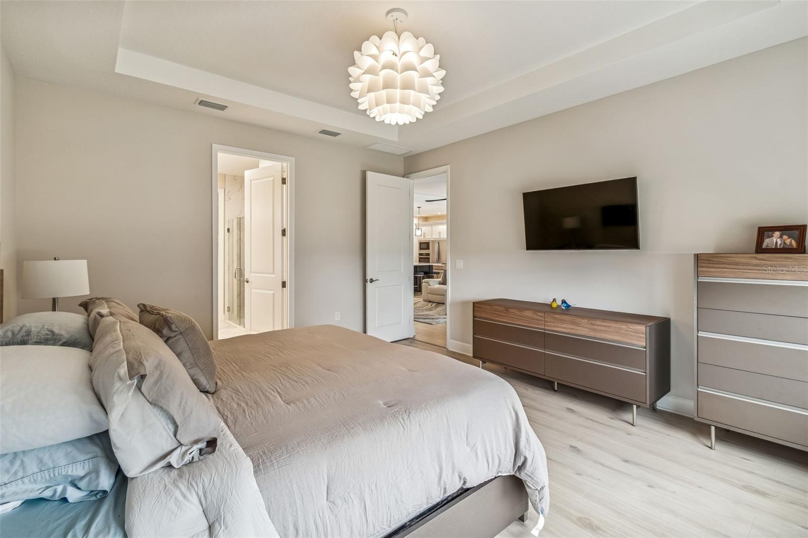 Welcome to the lifestyle you’ve been dreaming of in the premier 55+ active-adult community of Cresswind at Lake Harris. This nearly-new Jade model home features over $136,000 in designer upgrades, offering a bright, open floor plan and over $31,000 in post-closing upgrades making it a show stopper! Step inside to find a seamless transition from the foyer to the expansive Great Room, now featuring elegant luxury vinyl flooring throughout the main living areas and bedrooms, completely replacing the original carpet. The office/den with french doors can easily be converted into a 3rd bedroom. The chef’s kitchen is equipped with premium appliances, beautiful two toned cabinets, high level quartz countertops on the oversized island, and modern upgraded lighting. The custom fabric window treatments that add a touch of sophistication to every room. The great room and dining room are perfect for entertaining and are brought together with a magnificent 16ft slider door out to the extended covered lanai. The primary suite is a true retreat, boasting a tray ceiling and a luxurious en suite bath with dual vanities. Outdoor living is redefined on your covered lanai, which now features a full screen enclosure and a massive 12x24 paver extension, all overlooking a fully fenced backyard with high-end black aluminum fencing. Additional high-value highlights include a whole-house gutter system, professional epoxy garage floors, a Liftmaster opener, and upgraded designer light fixtures from Lamps Plus throughout the home and more! Residents of this gated community enjoy resort-style amenities including a lakefront clubhouse, 8 pickleball courts, a SmartFIT training center, and a resort pool. Experience "America’s Seaplane City" with private community boat dock access to the famous Harris Chain of Lakes. Why wait to build when you can get a truly move in ready home at a great price all in! Best of all!! 1 year builder warranty still valid for 10 months! Peace of mind for years to come! Call today for a tour!