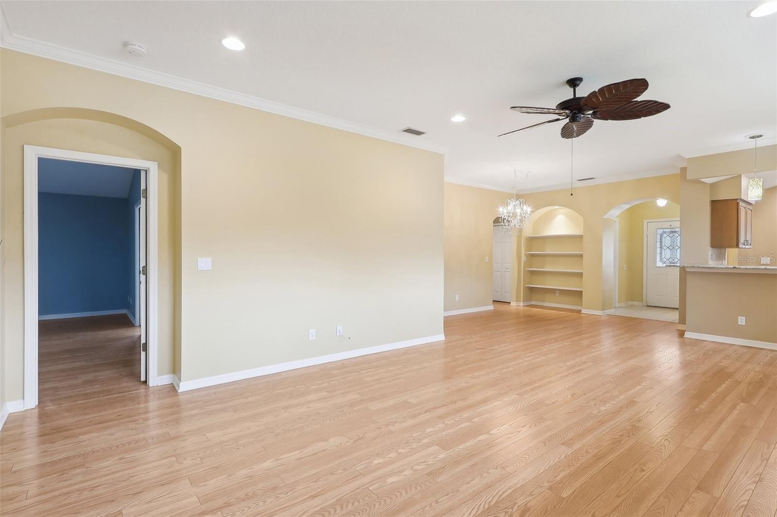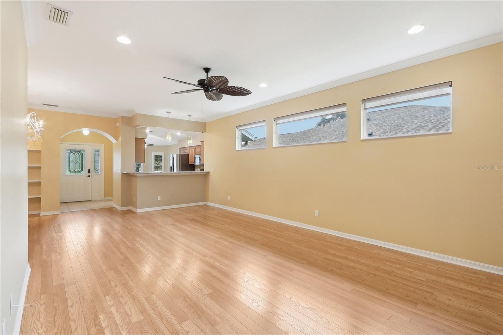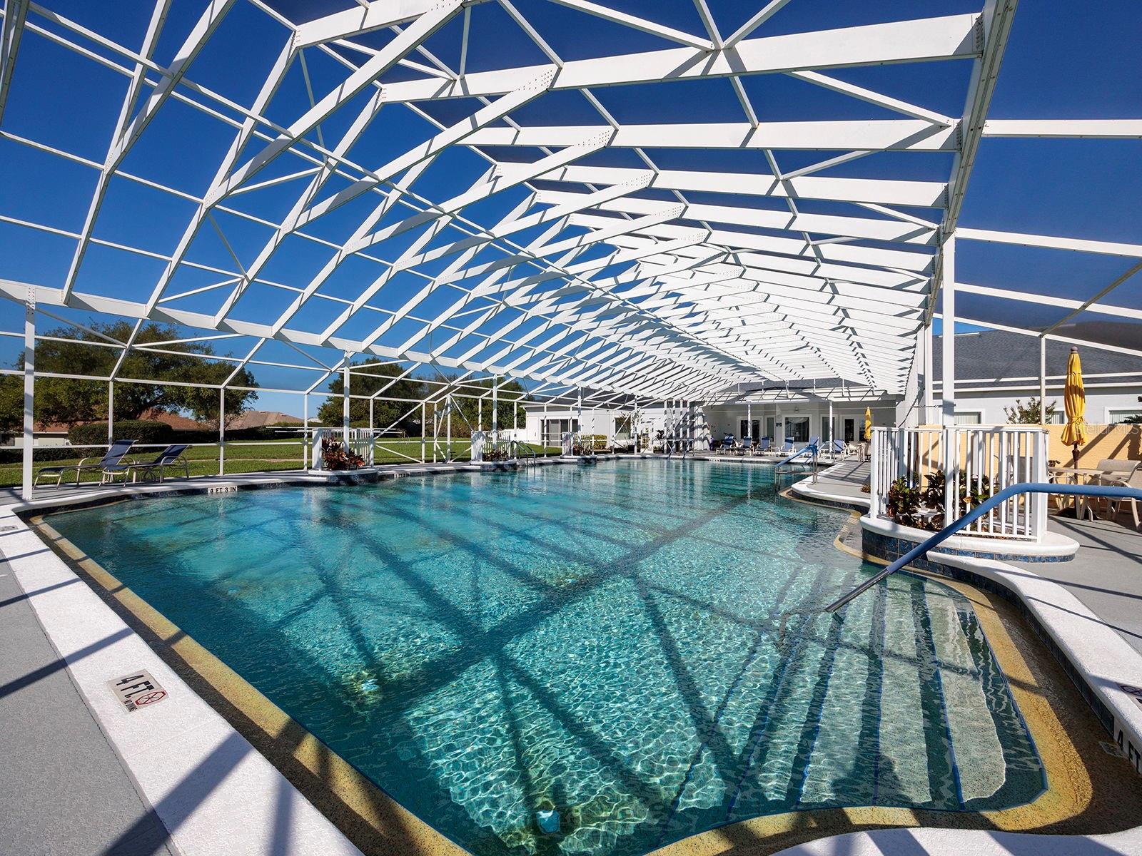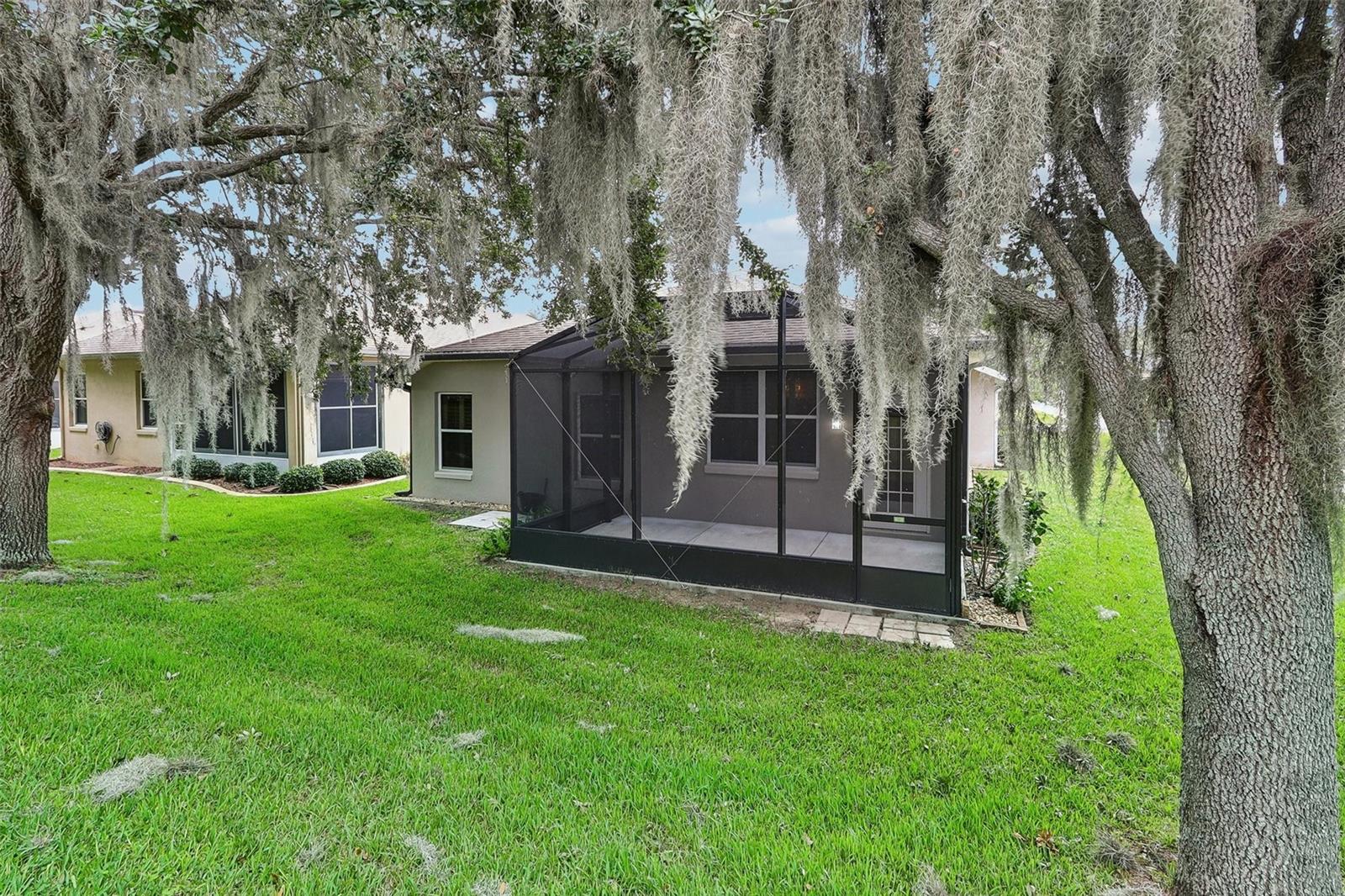 Home gets a brand-new roof before closing with an accepted offer! Welcome to this beautifully appointed 3-bedroom, 2-bath home located in the desirable waterfront community of Royal Harbor, a sought-after 55+ neighborhood nestled among the Harris Chain of Lakes. With its attractive landscaping and mature oak trees, this home boasts excellent curb appeal. Step inside to discover a meticulously maintained interior featuring an open floor plan that invites abundant natural light. The contemporary design includes stylish upgrades, such as neutral laminate wood flooring throughout, elegant tile in the kitchen and bathrooms, vaulted ceilings with crown molding, and stunning granite countertops. Plantation shutters add a touch of sophistication. As you enter through the screened breezeway, you'll find a dedicated laundry room to your right, leading to a spacious two-car garage equipped with a finished floor and an insulated door with a retractable screen. To the left, the well-sized kitchen features a gas range, a large pantry, a cozy breakfast nook with bay windows, and an eat-in bar. Beyond the kitchen, the dining area flows into the family room, which opens to the 16x9ft bonus room and a screened 17.5x10ft birdcage patio—an ideal bug-free spot to savor your slice of Florida paradise. This split-floor plan offers two bedrooms at the front of the home with a shared bathroom, one of which includes built-in storage and a walk-in closet, perfect for use as an office or craft room. At the rear of the home, the primary bedroom features a generous walk-in closet and an ensuite bathroom with a shower and double vanity. Royal Harbor offers a wealth of activities and amenities, making it an ideal place to call home! The HOA includes access to a fitness center, billiards room, arts and crafts room, library, card room, and a resort-style pool and spa, among other fantastic facilities.