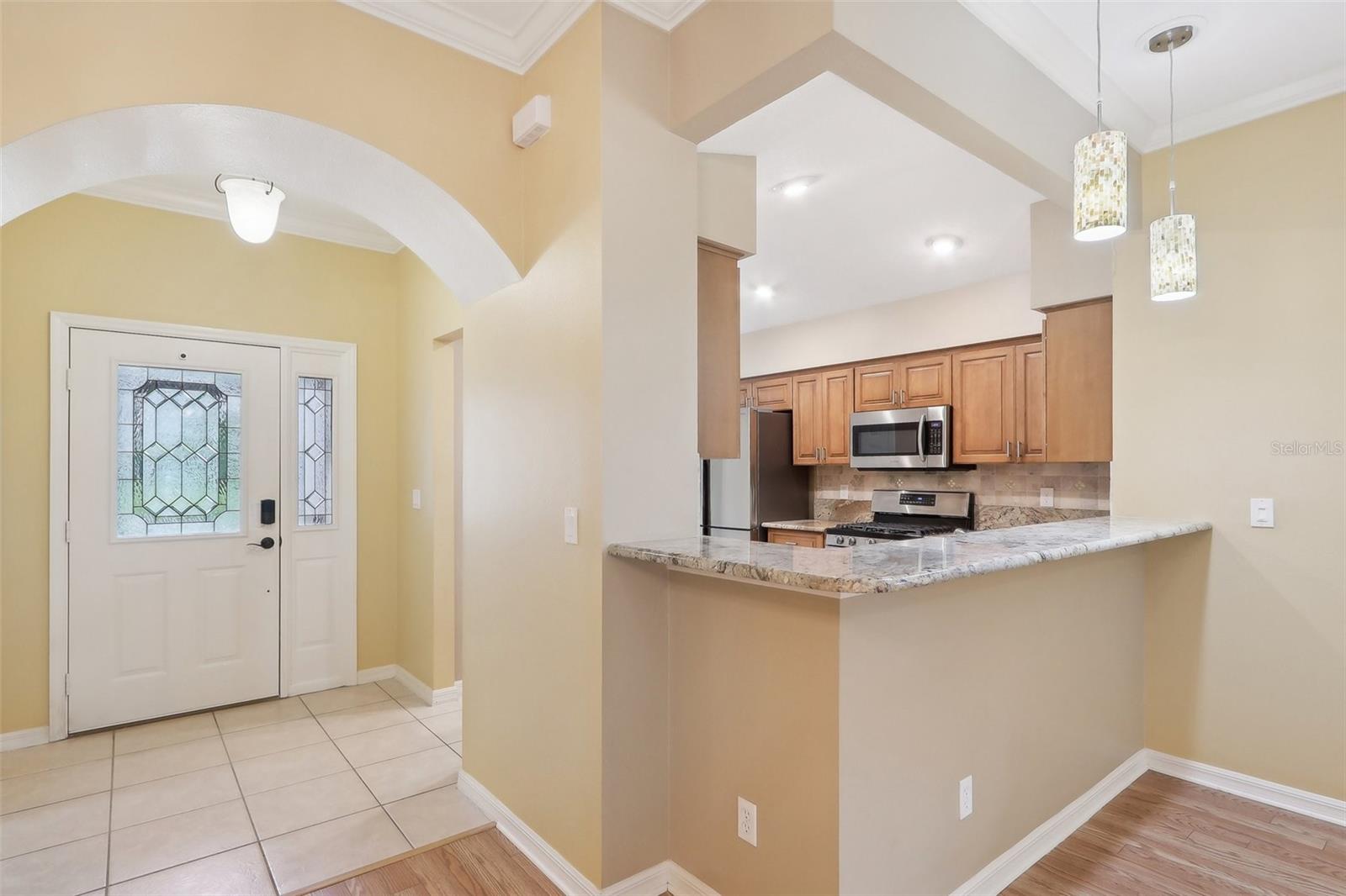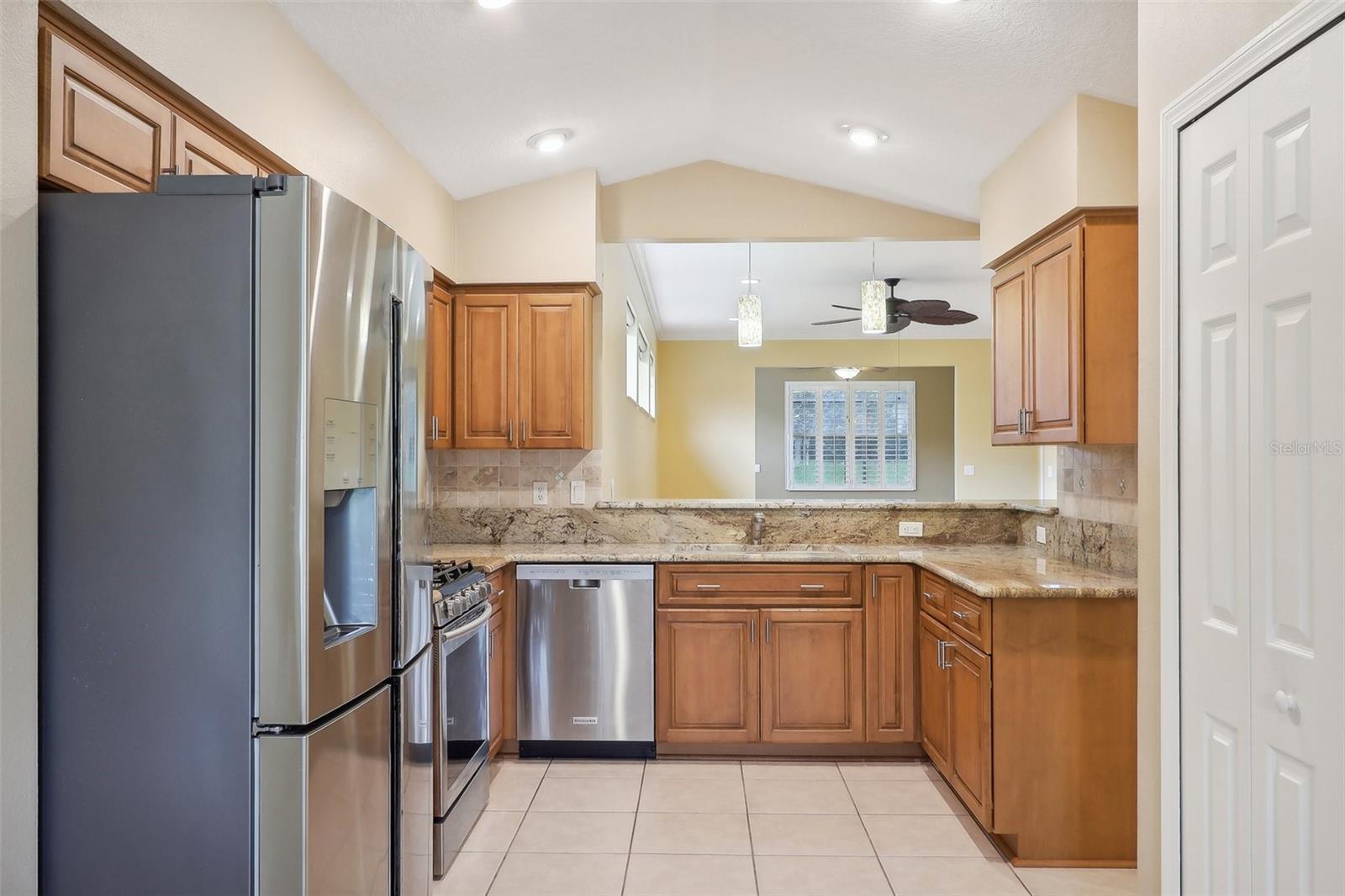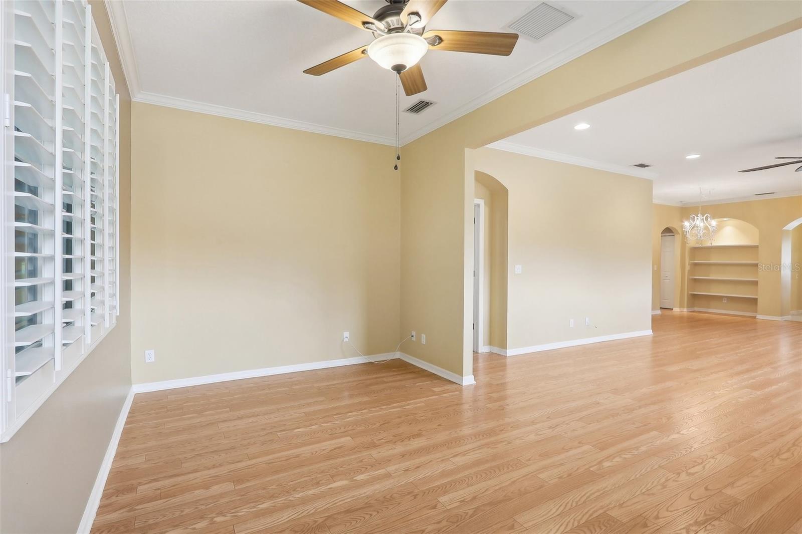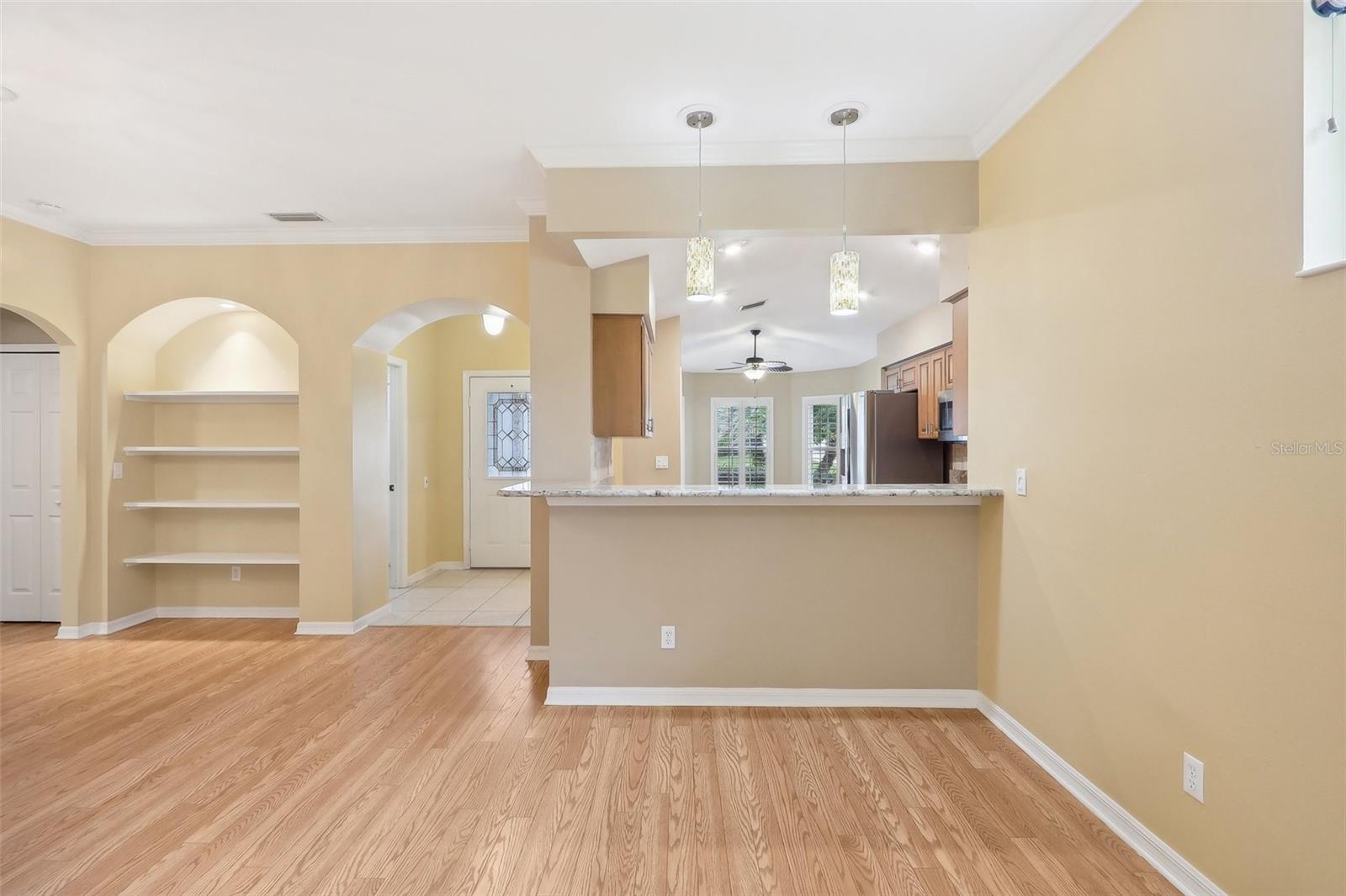 Home gets a brand-new roof before closing with an accepted offer! Welcome to this beautifully appointed 3-bedroom, 2-bath home located in the desirable waterfront community of Royal Harbor, a sought-after 55+ neighborhood nestled among the Harris Chain of Lakes. With its attractive landscaping and mature oak trees, this home boasts excellent curb appeal. Step inside to discover a meticulously maintained interior featuring an open floor plan that invites abundant natural light. The contemporary design includes stylish upgrades, such as neutral laminate wood flooring throughout, elegant tile in the kitchen and bathrooms, vaulted ceilings with crown molding, and stunning granite countertops. Plantation shutters add a touch of sophistication. As you enter through the screened breezeway, you'll find a dedicated laundry room to your right, leading to a spacious two-car garage equipped with a finished floor and an insulated door with a retractable screen. To the left, the well-sized kitchen features a gas range, a large pantry, a cozy breakfast nook with bay windows, and an eat-in bar. Beyond the kitchen, the dining area flows into the family room, which opens to the 16x9ft bonus room and a screened 17.5x10ft birdcage patio—an ideal bug-free spot to savor your slice of Florida paradise. This split-floor plan offers two bedrooms at the front of the home with a shared bathroom, one of which includes built-in storage and a walk-in closet, perfect for use as an office or craft room. At the rear of the home, the primary bedroom features a generous walk-in closet and an ensuite bathroom with a shower and double vanity. Royal Harbor offers a wealth of activities and amenities, making it an ideal place to call home! The HOA includes access to a fitness center, billiards room, arts and crafts room, library, card room, and a resort-style pool and spa, among other fantastic facilities.