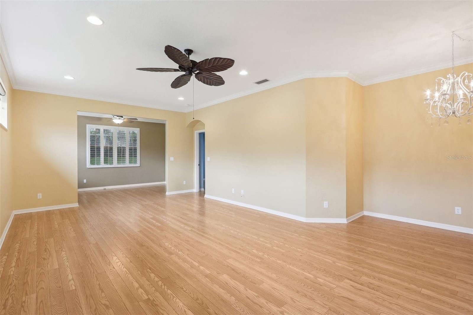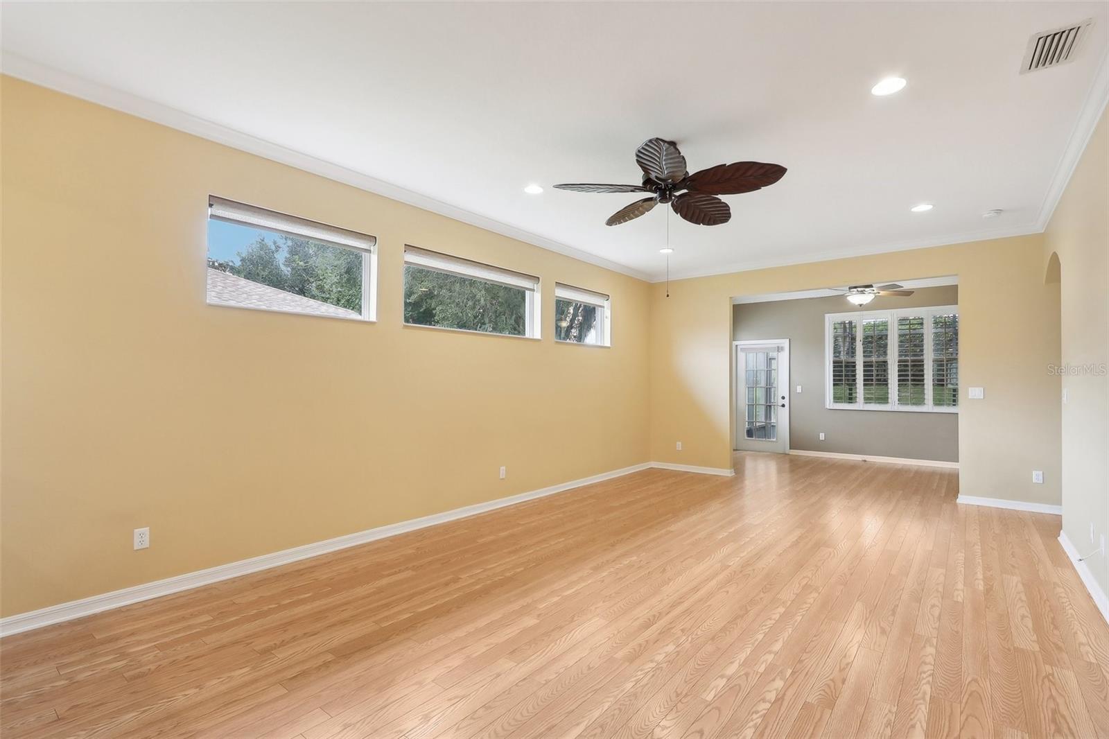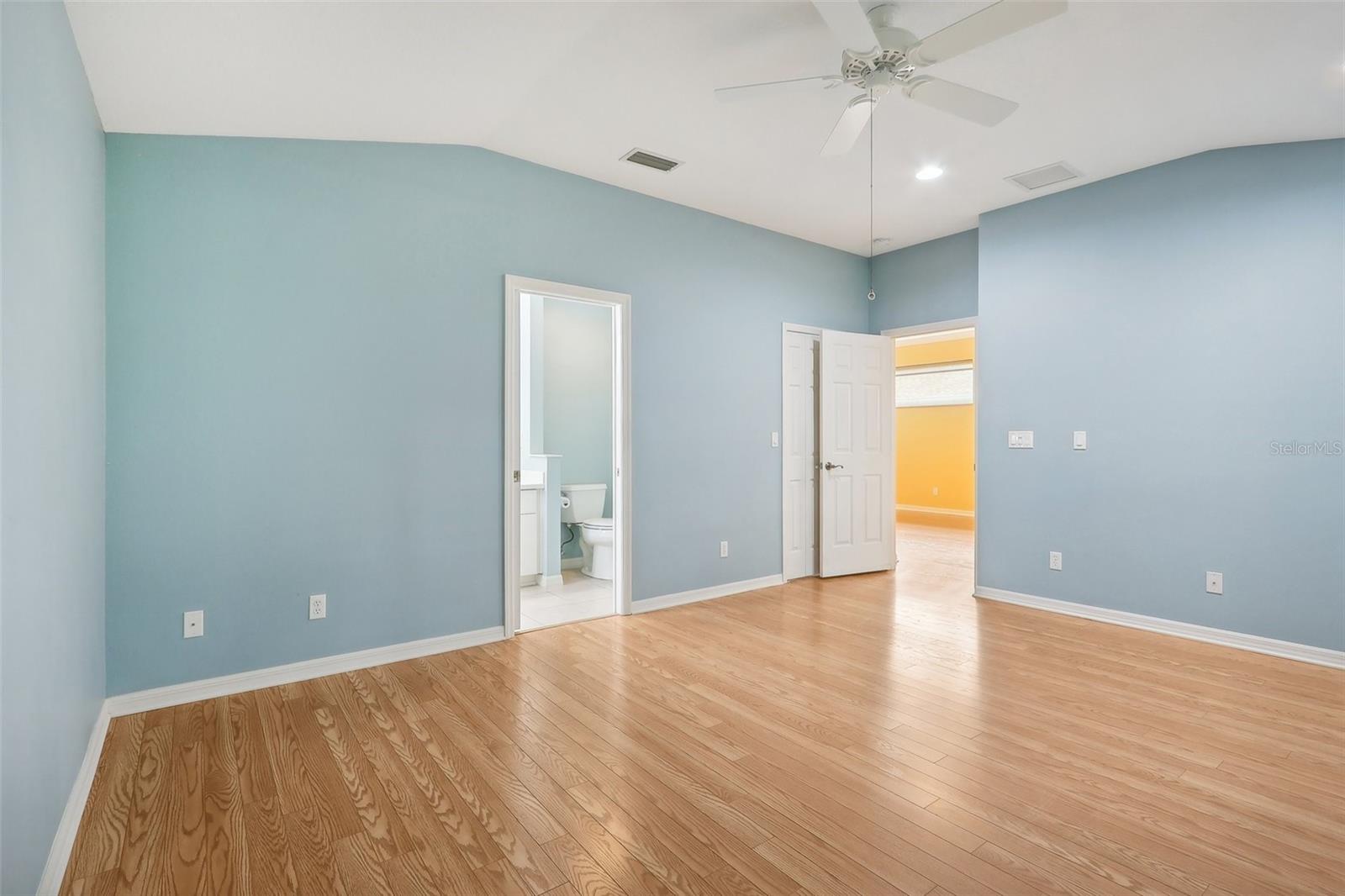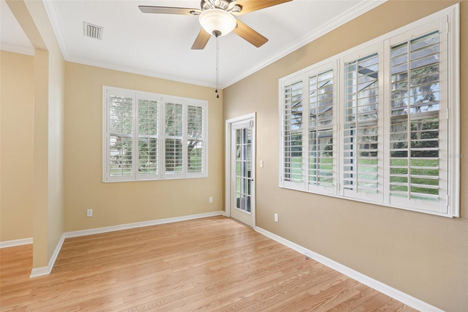 Home gets a brand-new roof before closing with an accepted offer! Welcome to this beautifully appointed 3-bedroom, 2-bath home located in the desirable waterfront community of Royal Harbor, a sought-after 55+ neighborhood nestled among the Harris Chain of Lakes. With its attractive landscaping and mature oak trees, this home boasts excellent curb appeal. Step inside to discover a meticulously maintained interior featuring an open floor plan that invites abundant natural light. The contemporary design includes stylish upgrades, such as neutral laminate wood flooring throughout, elegant tile in the kitchen and bathrooms, vaulted ceilings with crown molding, and stunning granite countertops. Plantation shutters add a touch of sophistication. As you enter through the screened breezeway, you'll find a dedicated laundry room to your right, leading to a spacious two-car garage equipped with a finished floor and an insulated door with a retractable screen. To the left, the well-sized kitchen features a gas range, a large pantry, a cozy breakfast nook with bay windows, and an eat-in bar. Beyond the kitchen, the dining area flows into the family room, which opens to the 16x9ft bonus room and a screened 17.5x10ft birdcage patio—an ideal bug-free spot to savor your slice of Florida paradise. This split-floor plan offers two bedrooms at the front of the home with a shared bathroom, one of which includes built-in storage and a walk-in closet, perfect for use as an office or craft room. At the rear of the home, the primary bedroom features a generous walk-in closet and an ensuite bathroom with a shower and double vanity. Royal Harbor offers a wealth of activities and amenities, making it an ideal place to call home! The HOA includes access to a fitness center, billiards room, arts and crafts room, library, card room, and a resort-style pool and spa, among other fantastic facilities.