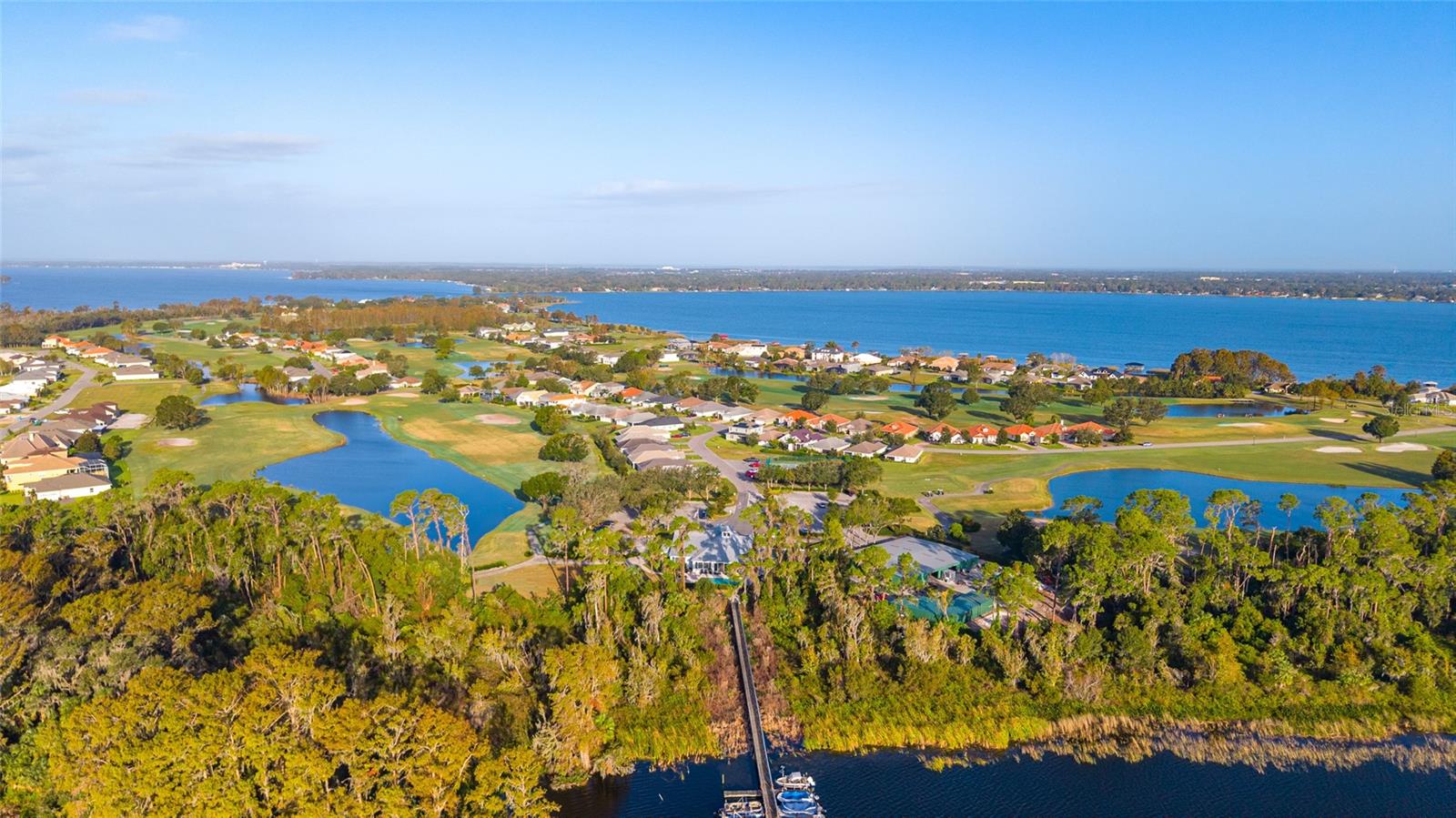 Welcome to this stunning home in the scenic, gated community of Deer Island Country Club! Located just 40 miles northwest of Orlando, this 18-hole golf community is nestled between Lake Dora and Lake Beauclair, offering tranquil lake and golf course views. This 3-bedroom, 2.5-bathroom residence includes an office, an oversized two-car garage, and extra space for your golf cart. Step inside to find a wealth of upgrades and nautical touches, with tile flooring throughout and cozy carpet in the bedrooms. The kitchen serves as the heart of the home, featuring a massive island, all stainless-steel appliances, white cabinetry, and an eye-catching backsplash that adds a modern flair. The spacious primary bedroom offers two walk-in closets, dual vanities, an elegant soaking tub, and a large shower, creating a spa-like retreat. Enjoy sunsets and breathtaking views from the pool area, perfect for relaxation and entertaining. With its prime location and exceptional features, this home is a must-see!