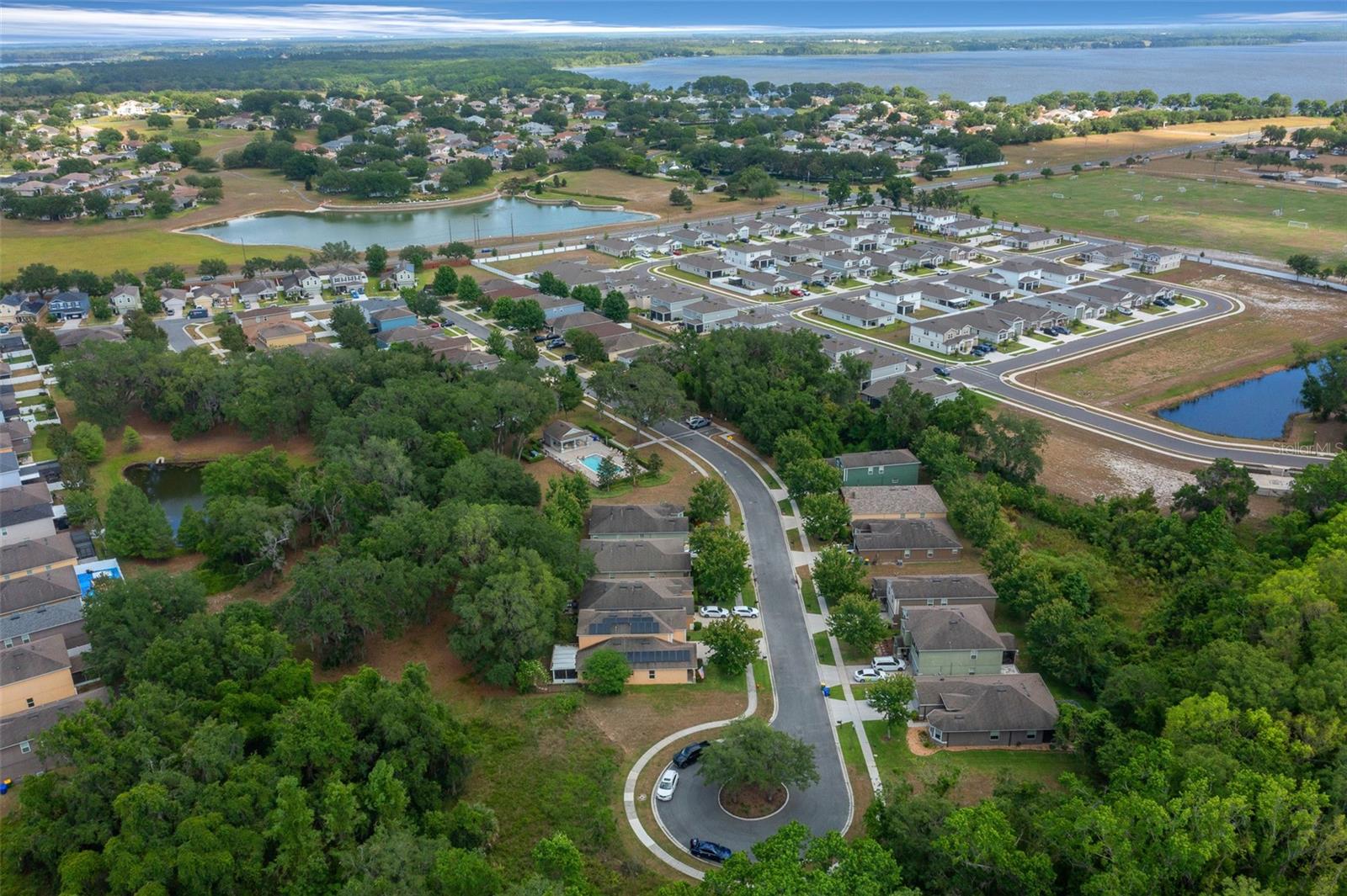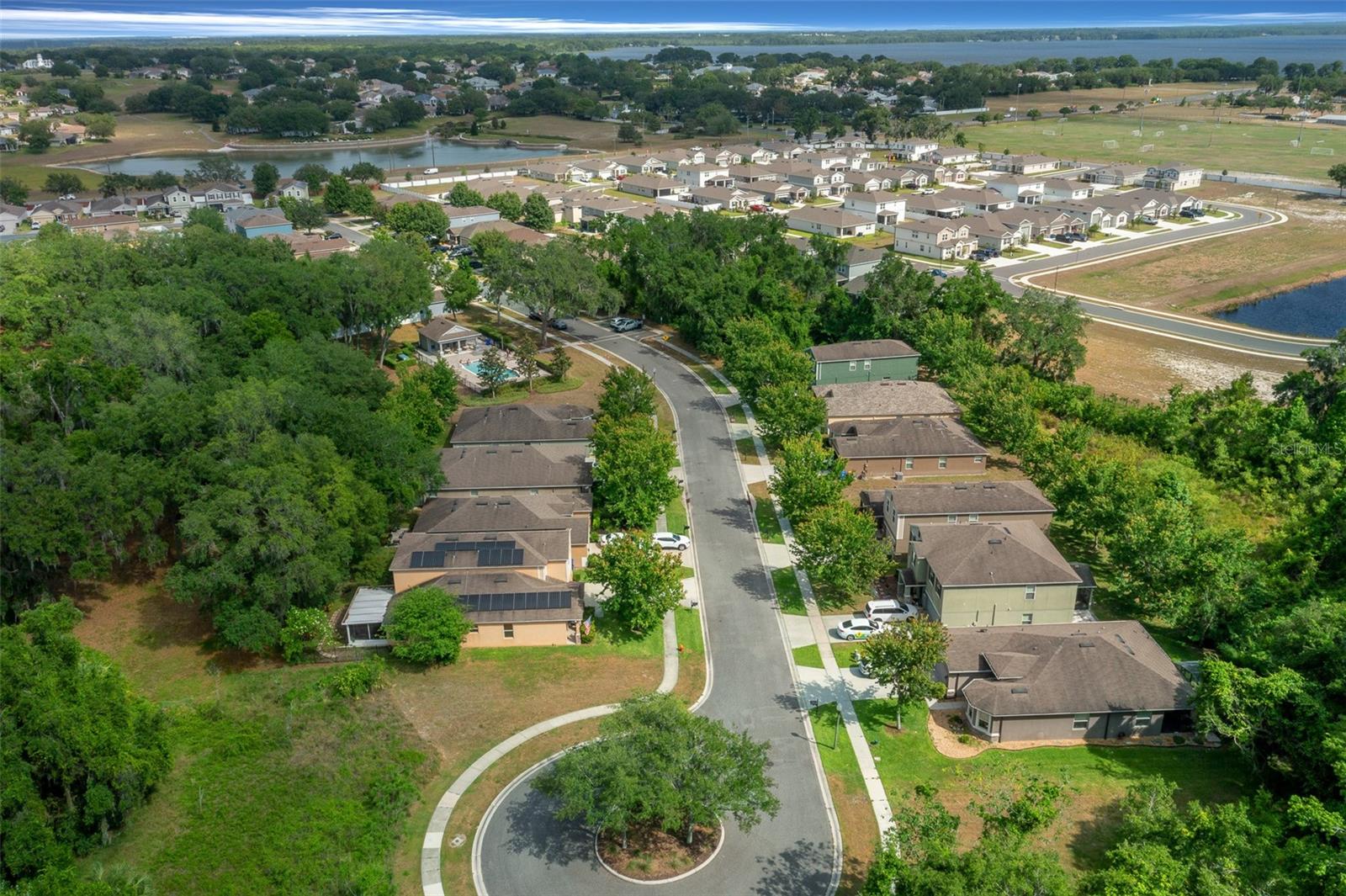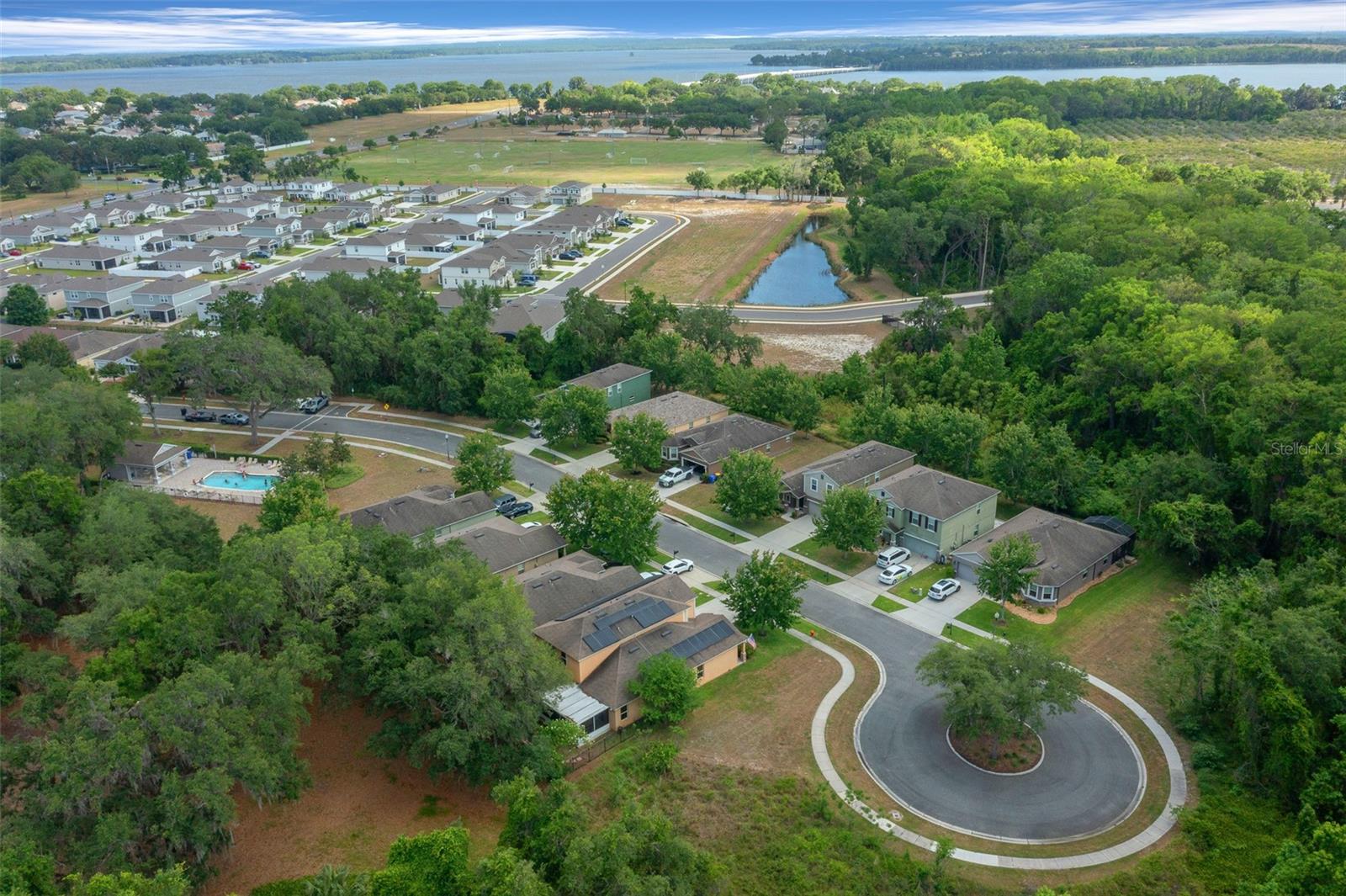Welcome to this beautiful 5-bedroom, 3.5-bath, two-story home located near stunning Lake Harris and the Chain of Lakes—perfect for boating, fishing, and outdoor fun. Nestled in the highly desirable, gated community of Oak Bend, you'll enjoy peace of mind, tree-lined streets, sidewalks for evening strolls, and access to a sparkling community pool. Tucked away at the end of a quiet cul-de-sac, this home offers added privacy with its prime location at the edge of the neighborhood. Step inside to find a spacious living room that flows into a large great room combining the kitchen, dining area, and family space—perfect for entertaining or relaxed family living. The kitchen and dining area overlook a screened-in porch, ideal for enjoying Florida evenings. Downstairs features a convenient half bath for guests, while upstairs you'll find a living/game room and four generously sized bedrooms with two full bathrooms. The luxurious master suite is on the main level and offers a true retreat with a massive walk-in closet and a spa-like ensuite bathroom. Enjoy relaxing evenings in your oversized hot tub, and with solar panels already installed, you’ll benefit from significantly reduced electric bills! This home truly has it all—space, comfort, privacy, and a wonderful community. Don’t miss your chance to make it yours!