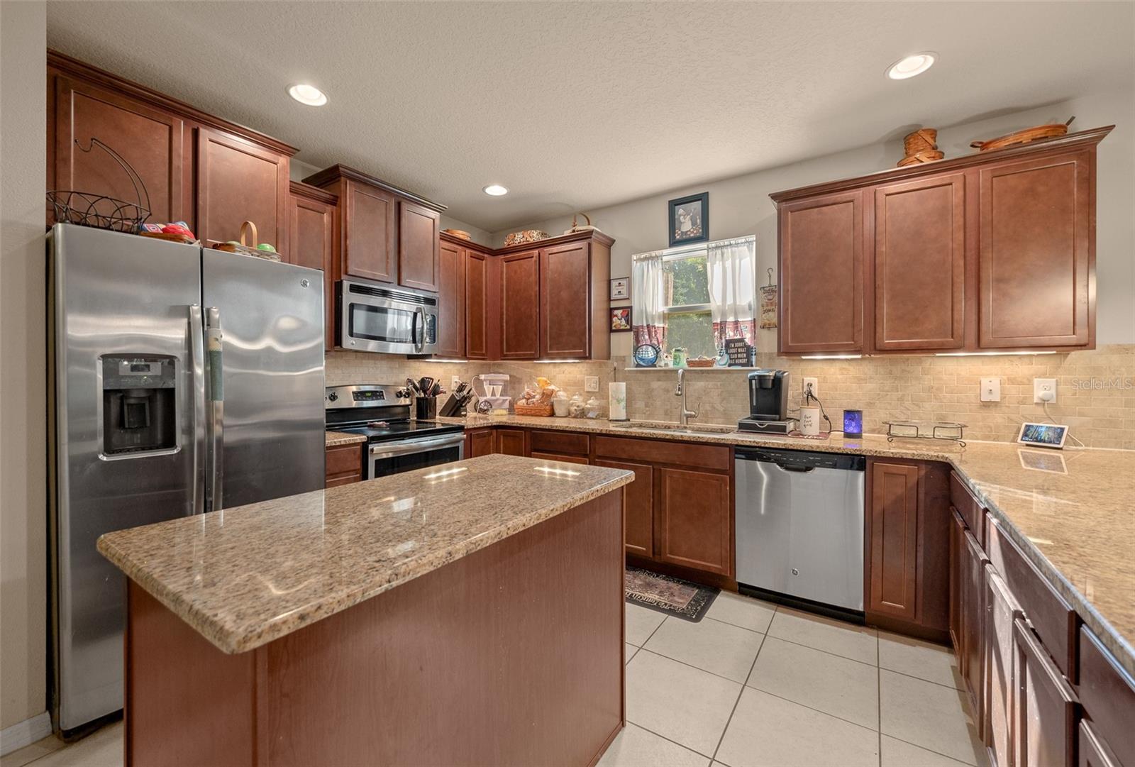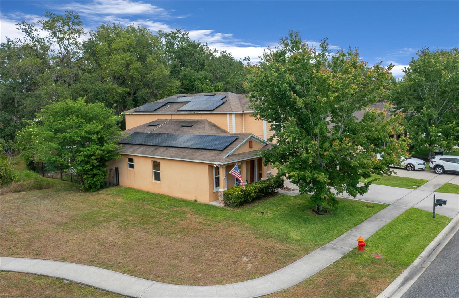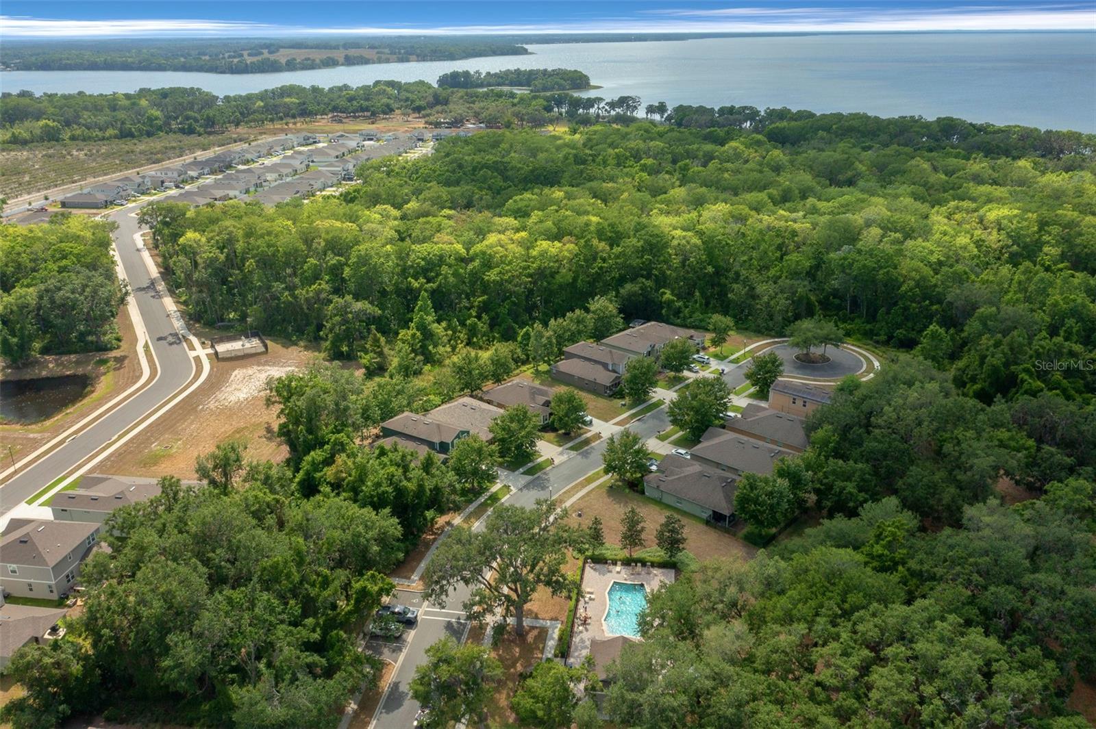 Welcome to this beautiful 5-bedroom, 3.5-bath, two-story home located near stunning Lake Harris and the Chain of Lakes—perfect for boating, fishing, and outdoor fun. Nestled in the highly desirable, gated community of Oak Bend, you'll enjoy peace of mind, tree-lined streets, sidewalks for evening strolls, and access to a sparkling community pool. Tucked away at the end of a quiet cul-de-sac, this home offers added privacy with its prime location at the edge of the neighborhood. Step inside to find a spacious living room that flows into a large great room combining the kitchen, dining area, and family space—perfect for entertaining or relaxed family living. The kitchen and dining area overlook a screened-in porch, ideal for enjoying Florida evenings. Downstairs features a convenient half bath for guests, while upstairs you'll find a living/game room and four generously sized bedrooms with two full bathrooms. The luxurious master suite is on the main level and offers a true retreat with a massive walk-in closet and a spa-like ensuite bathroom. Enjoy relaxing evenings in your oversized hot tub, and with solar panels already installed, you’ll benefit from significantly reduced electric bills! This home truly has it all—space, comfort, privacy, and a wonderful community. Don’t miss your chance to make it yours!