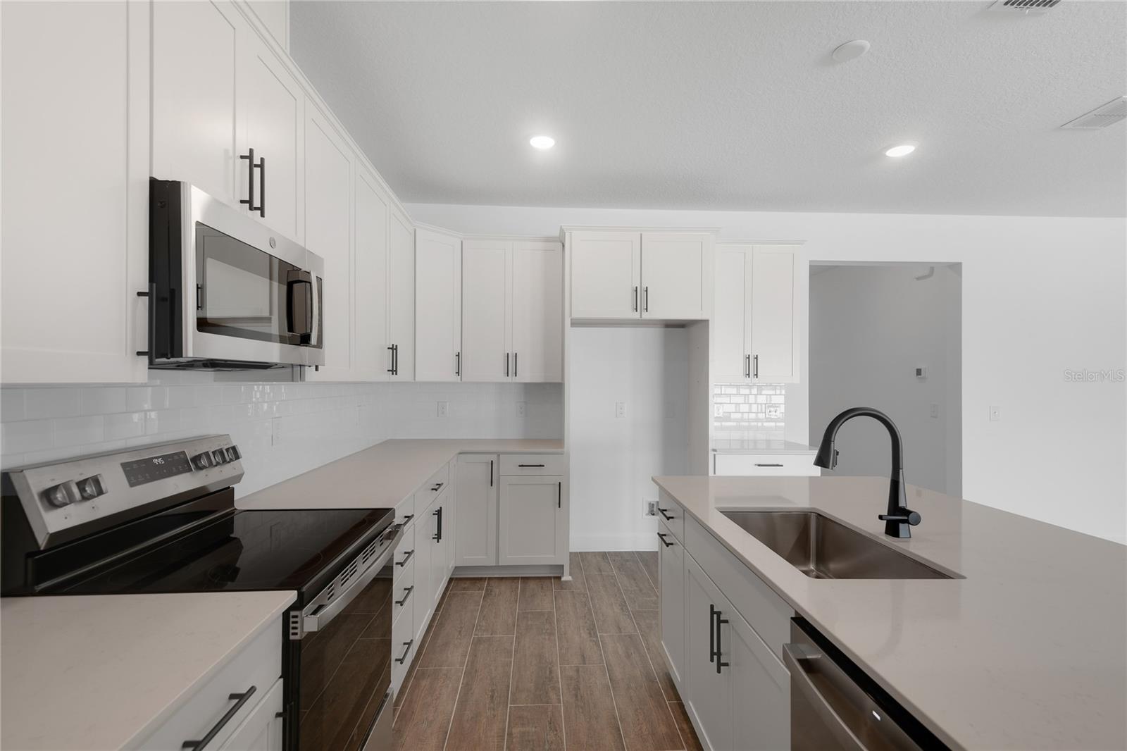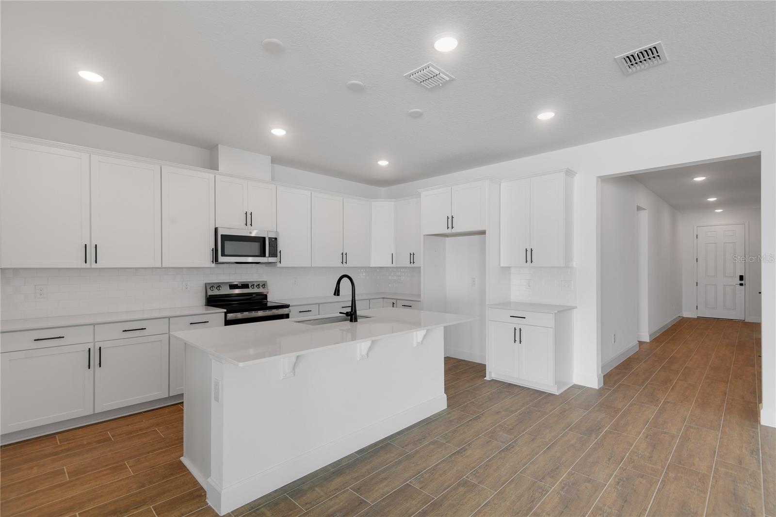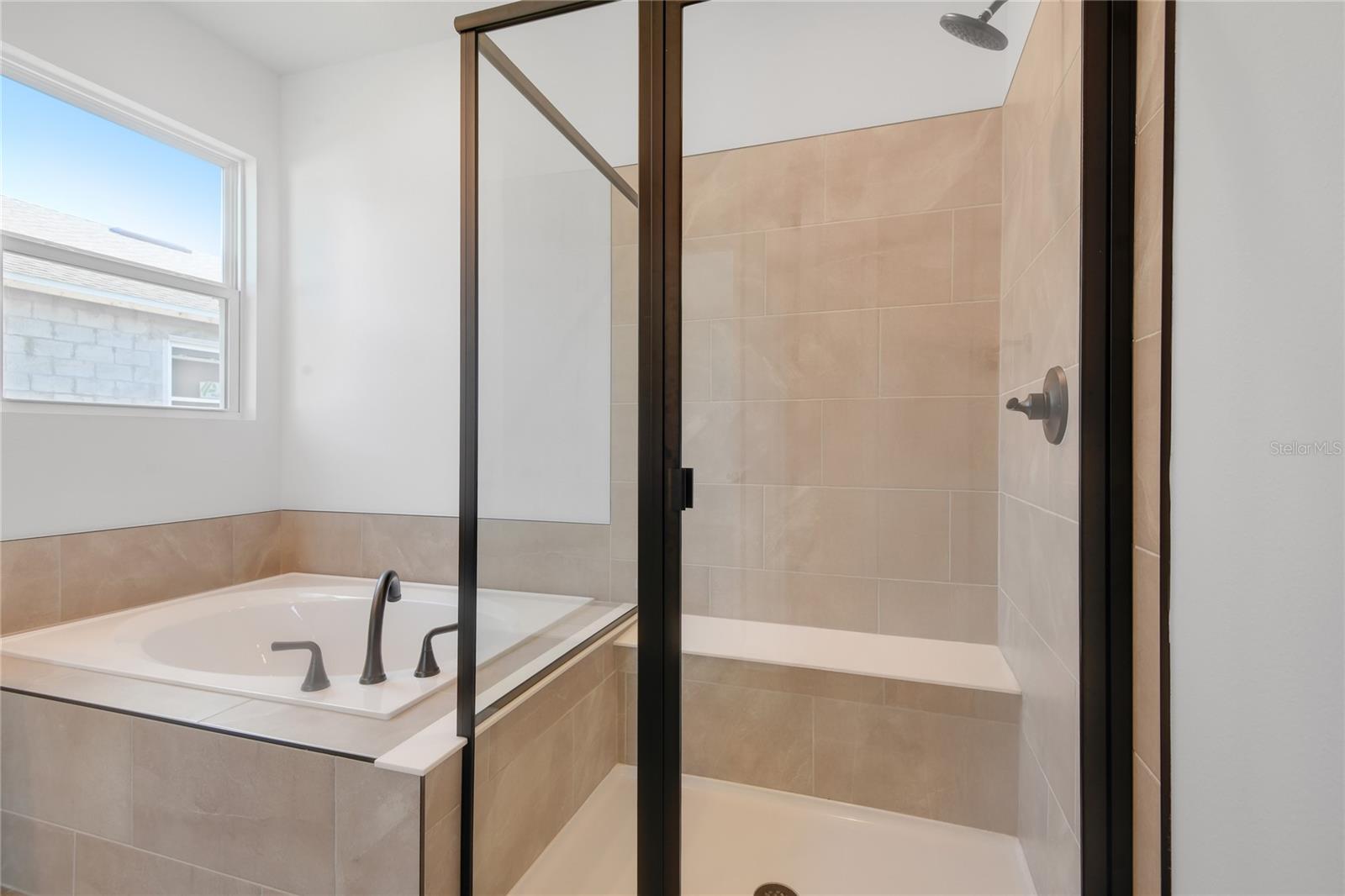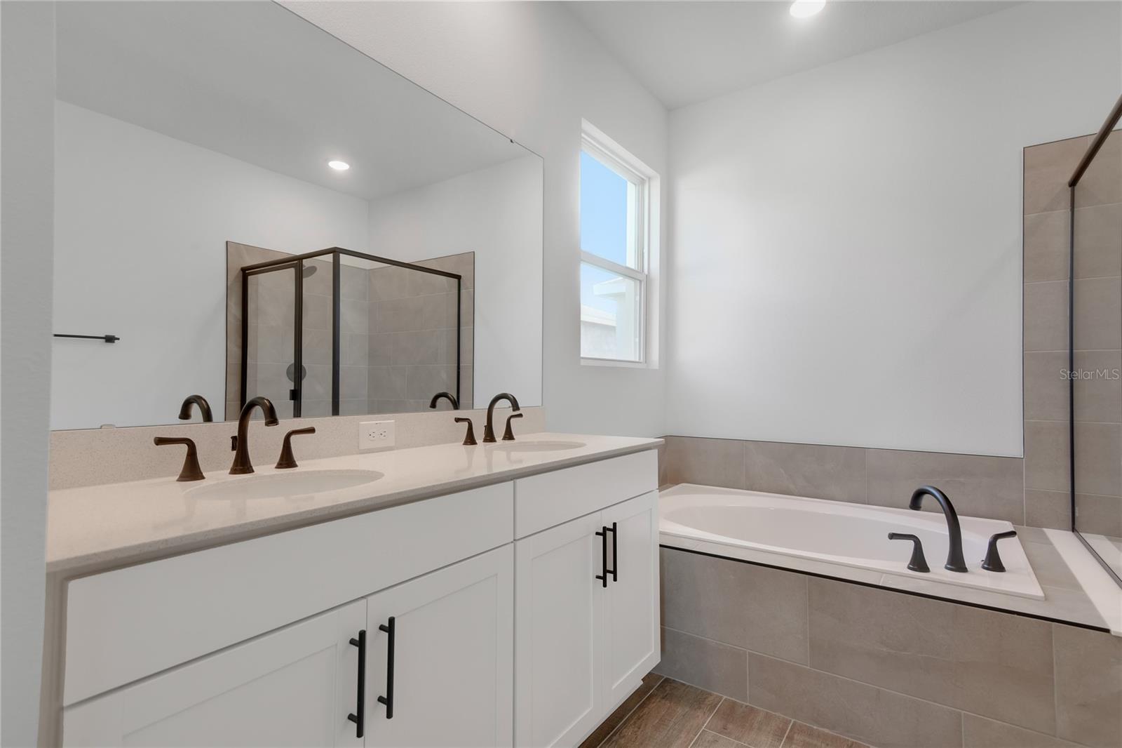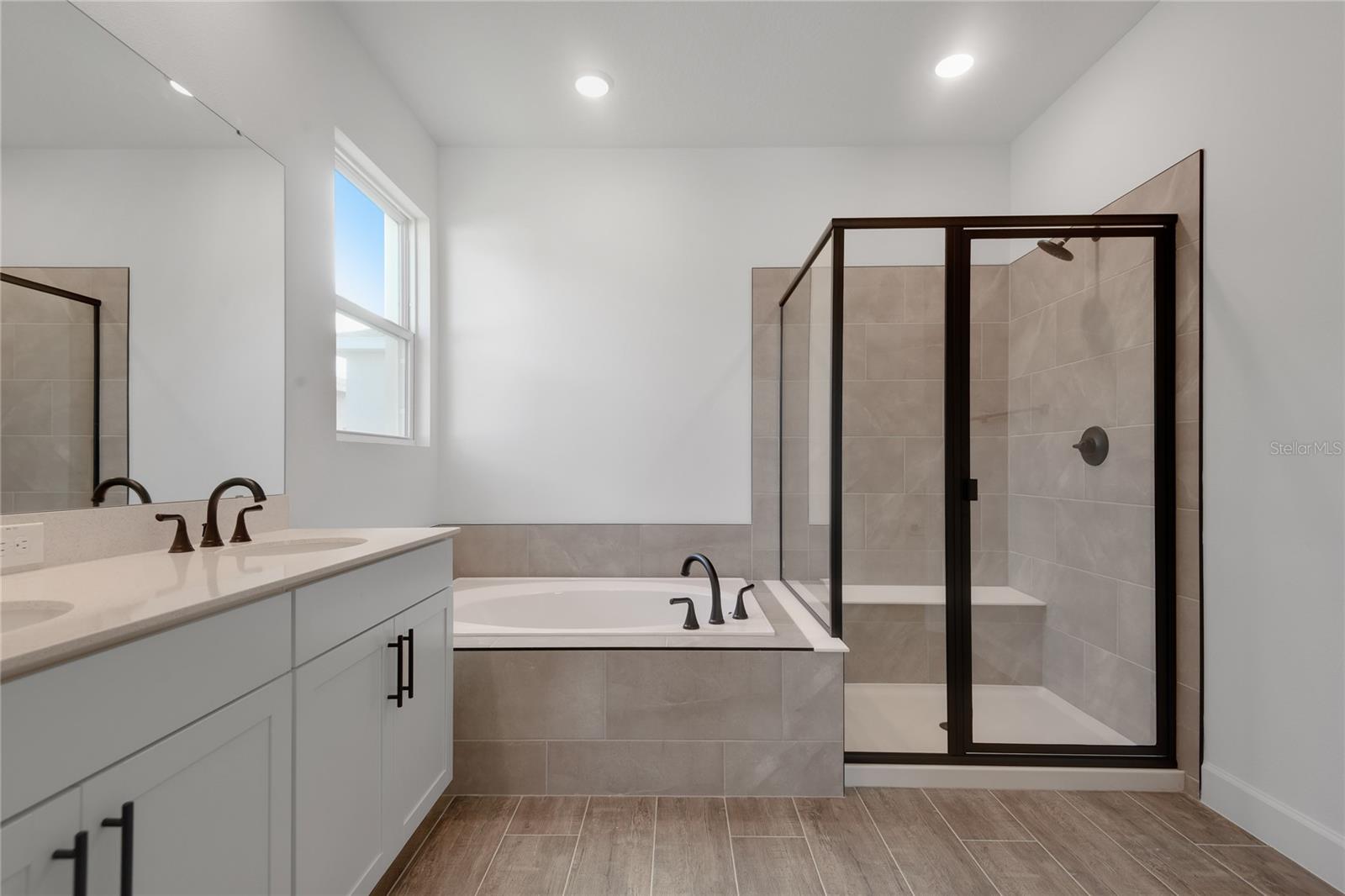 Under Construction. The thoughtfully designed Slate floor plan opens with two bedrooms flanking a full hall bath. Beyond the entry, you'll find an open layout with a dining nook, a great room with access to an inviting covered patio, and a kitchen with a center island, walk-in pantry and abundant cabinetry. The primary suite is nearby, offering a generous walk-in closet and a private bath with a shower and a separate soaking tub. A laundry room and a fourth bedroom with its own private bath complete the home. This home offers Smart Thermostat, Curated 42" white cabinets with soft close, matte black finishes, kitchen backsplash, quartz in kitchen and all the bathrooms, 9 X 35 staggered wood look tile, 5 1/4 baseboards, video doorbell, and a 3 car garage. * SAMPLE PHOTOS Actual homes as constructed may not contain the features and layouts depicted and may vary from image(s). **Take advantage of special financing + Flex Funds on quick move-in homes**Options may vary by community, so see your sales associate for details. These offers are available for select homes on a first-come, first-served basis.