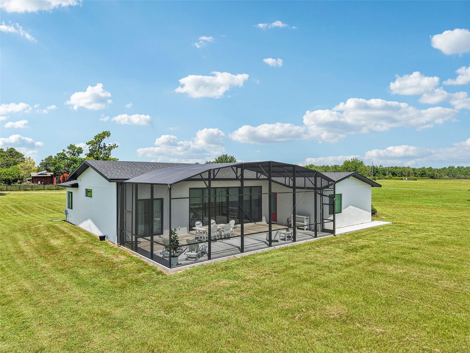 *** Price change due to sale of additional parcel separately *** 2023 contemporary custom home on over 2.7-acres - waterfront / equestrian zoned property, situated in the gated community of Hidden River Lakes. Build a dock on the 140ft of waterfront and cruise through the Harris Chain of Lakes. Chill in the extensive screened lanai and revel in the privacy, views and vast array of wildlife that calls the Hidden River Lakes community home. The home boasts 3 bedrooms with walk-in closets, 2 full bathrooms and flex / office, all with great proportions. 10-12ft ceilings throughout the home and a wonderfully light and bright living room with open floor plan. High specification kitchen has Real River Rock Stone and River Rock Cabinetry, Champagne Bronze accessories, Black Stainless Appliances & Real Marble stone backsplash. Modern lighting throughout. Huge sliders flank one wall of the living room exposing the huge screened lanai and the open views across the property and down to the water. This home gives enormous flexibility - fence your self a paddock and stable your horses on your property / purchase the second parcel for a second dwelling for family or investment / build accessory buildings for your toys and bring the boat and RV to your homesite. This home is economical to run with Sprayed Insulation for high efficiency and low power bills! Windows are Double pane with additional heat layer that serve to block out sun during day. Floors are Old Chicago Style (abandoned warehouse), waterproof and durable. Hidden River Lakes enjoys a great central position; just down from Deer Island Golf Club, a few miles from the Historic Town of Mt Dora and still under an hour to the International Airport, Disney World and all of the main Central Florida attractions. This is one of those hidden gem communities you have to see to appreciate. No 5ft lot lines here!!