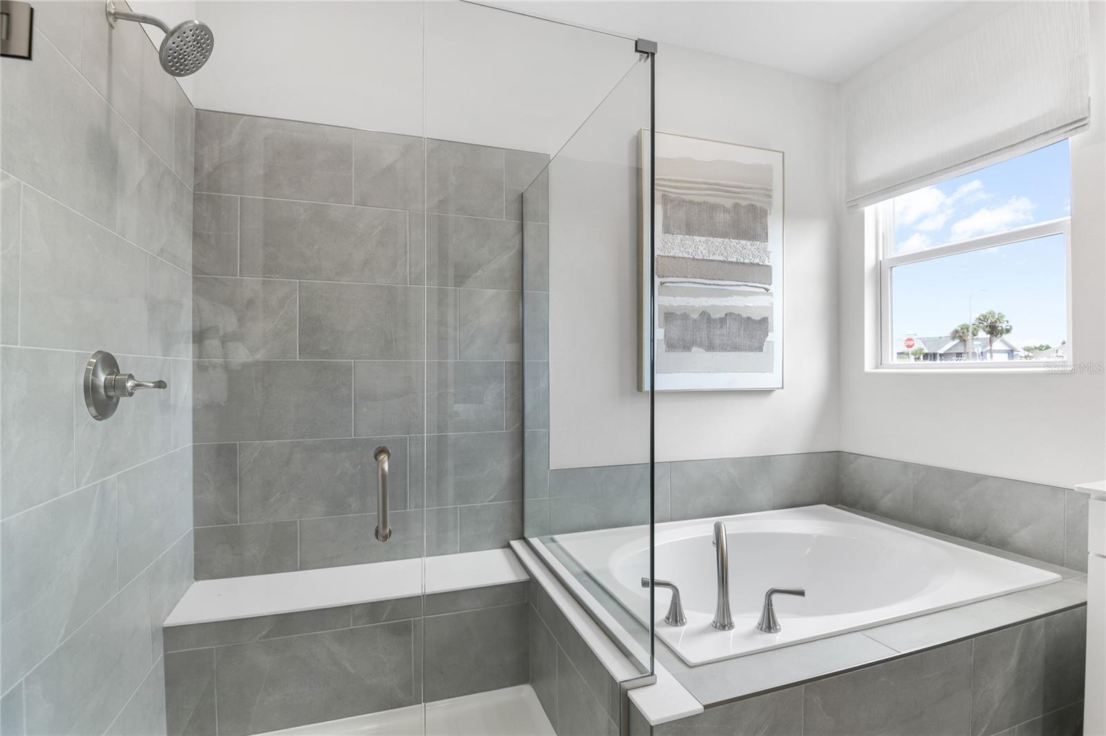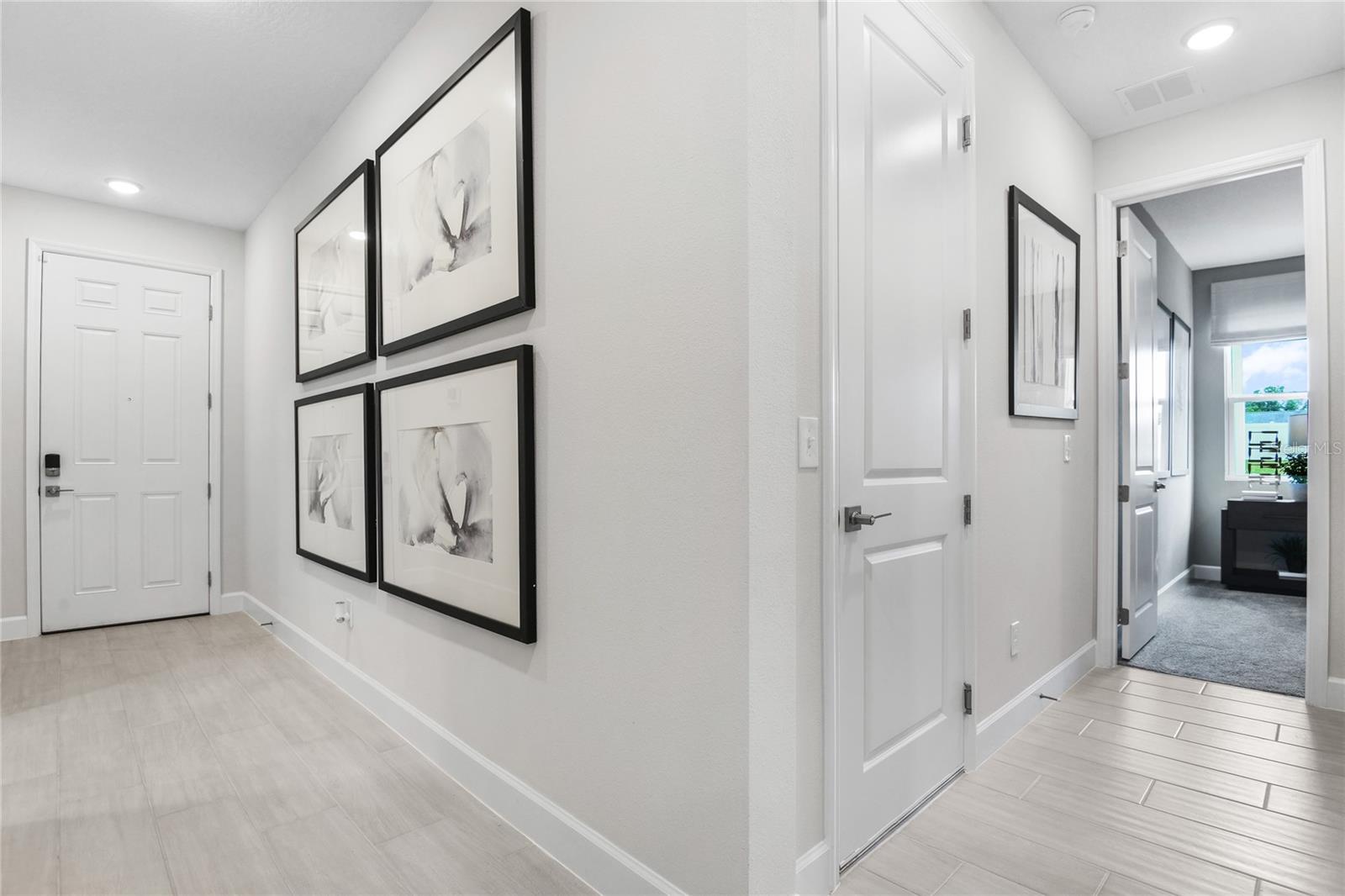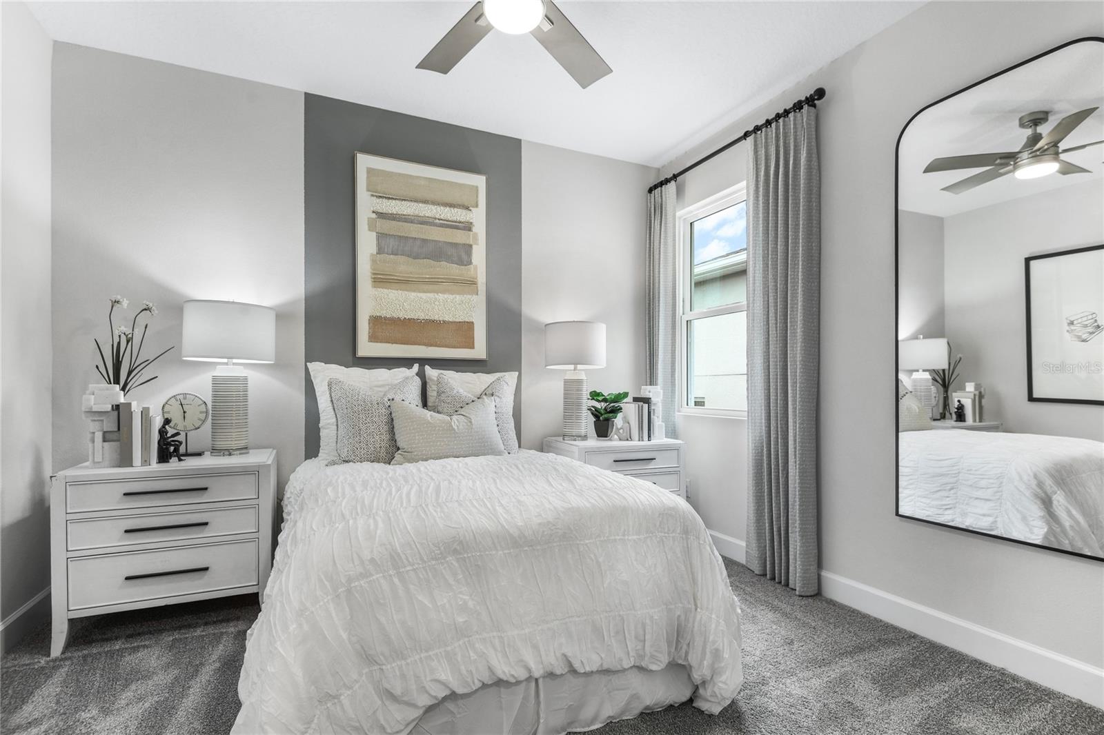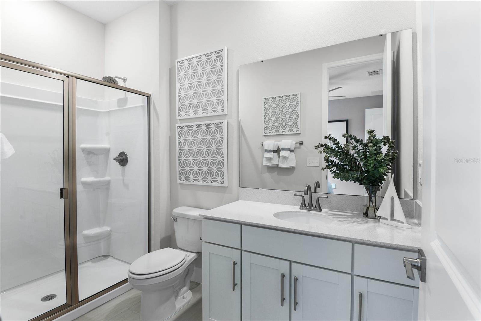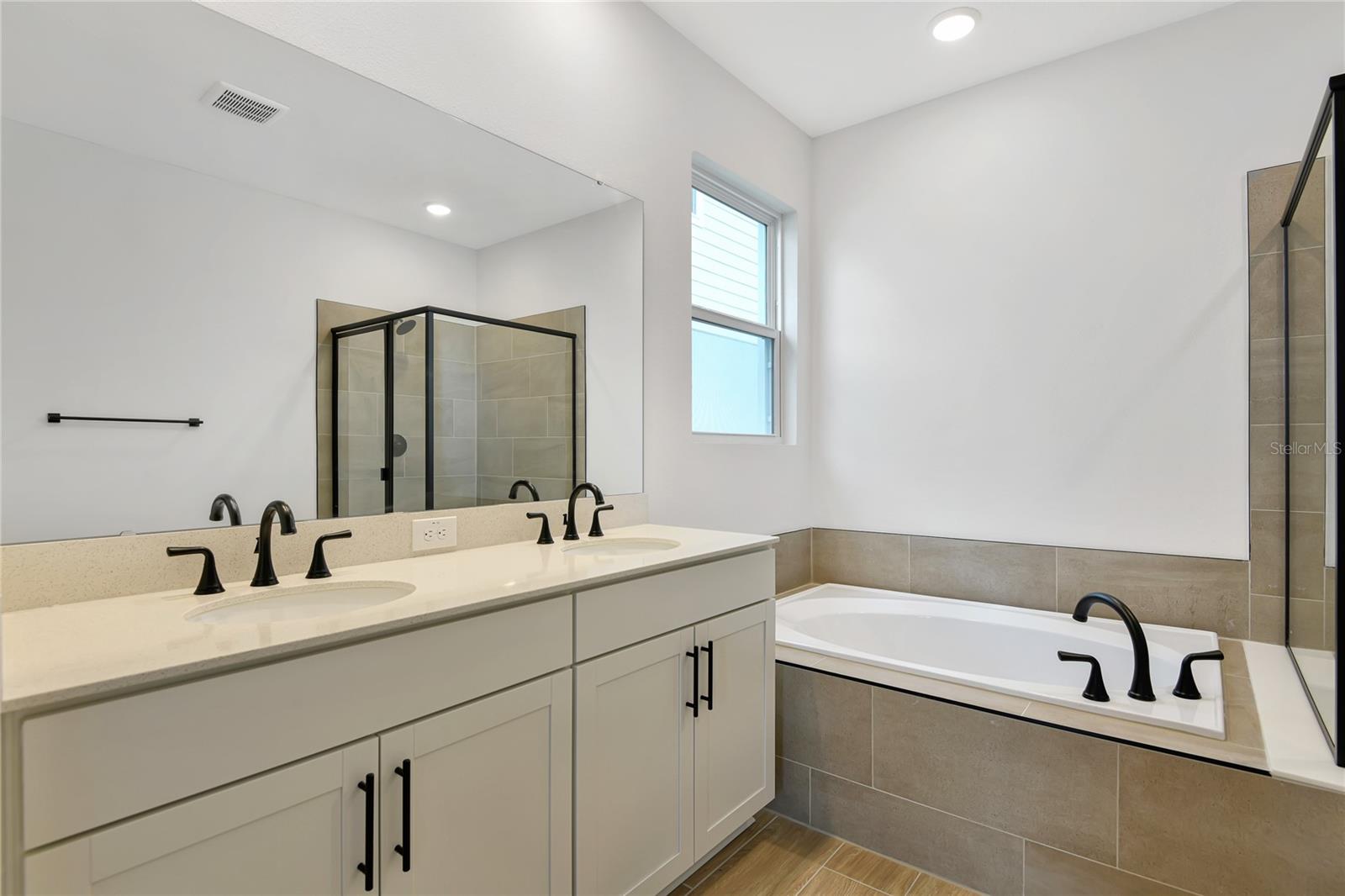 Under Construction. The thoughtfully designed Slate floor plan opens with two bedrooms flanking a full hall bath. Beyond the entry, you'll find an open layout with a dining nook, a great room with access to an inviting covered patio, and a kitchen with a center island, walk-in pantry, and abundant cabinetry. The primary suite is nearby, offering a generous walk-in closet and a private bath with a shower and a separate soaking tub. A laundry room and a fourth bedroom with its own private bath complete the home. This home offers Smart Thermostat, Curated 42" white cabinets with soft close, matte black finishes, kitchen backsplash, quartz in kitchen and all the bathrooms, 9 X 35 staggered wood look tile, 5 1/4 baseboards and video doorbell. * SAMPLE PHOTOS Actual homes as constructed may not contain the features and layouts depicted and may vary from image(s). **Take advantage of special financing + Flex Funds on quick move-in homes** Options may vary by community, so see your sales associate for details. These offers are available for select homes on a first-come, first-served basis.