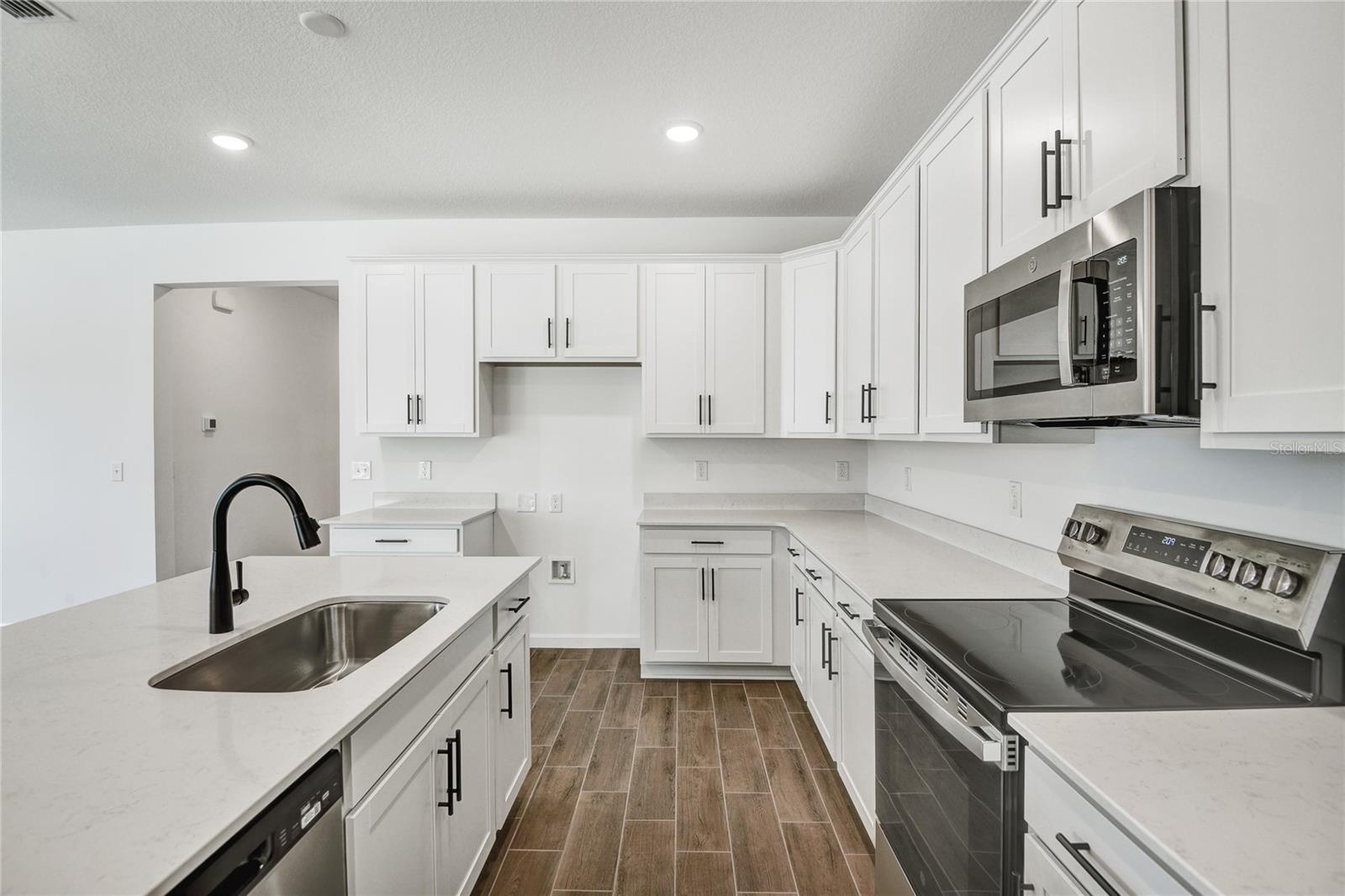 The thoughtfully designed Slate floor plan opens with two bedrooms flanking a full hall bath. Beyond the entry, you’ll find an open layout with a dining nook, a great room with access to an inviting covered patio, and a kitchen with a center island, walk-in pantry and abundant cabinetry. The master suite is nearby, offering a generous walk-in closet and a private bath with optional dual sinks, a shower and a separate soaking tub. A laundry room and a fourth bedroom with its own private bath complete the home., Interior finishes include amazing Kitchen cabinets/Stainless Steel Appliances/Tile Flooring in all common areas/ Quartz Countertops in the kitchen. *Take advantage of special financing on quick move-in homes OR buy a to-be-built home and enjoy up to $20,000 in Flex Funds toward homes that can close in a timely manner! Options may vary by community, and offers are available on select homes on a first-come, first-served basis. Contact builder for more information!
