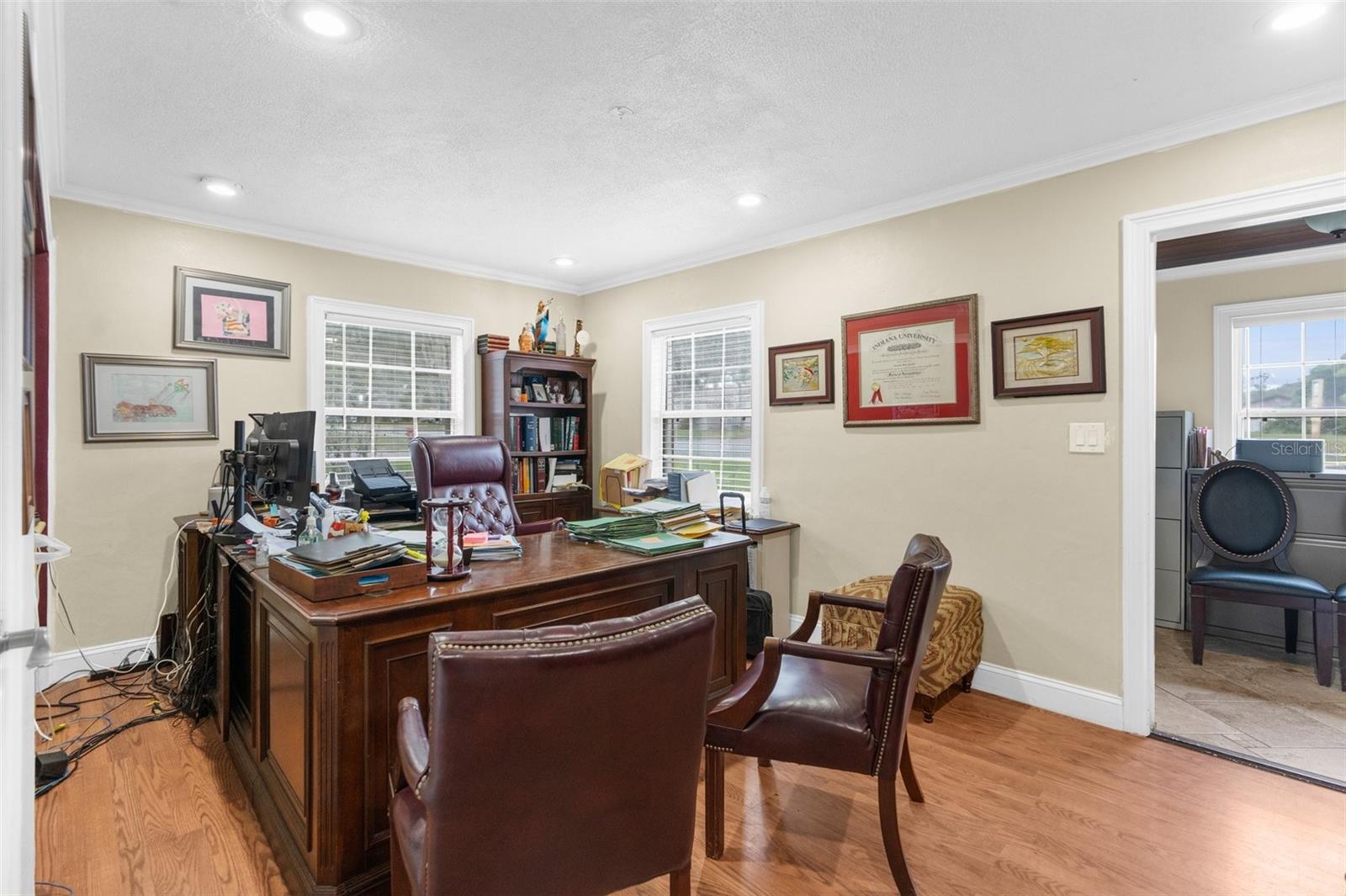 Prime opportunity in the heart of Tavares, “America’s Seaplane City,” on an oversized corner lot with versatile mixed-use zoning. This exceptional property is ideal for business, residential, or multifamily use, allowing you to combine business and living spaces seamlessly. Positioned just three blocks from the Lake County Courthouse and government buildings, four blocks from the Lake County Jail, and only half a mile from Tavares Seaport, the location offers unmatched convenience. Major city thoroughfares, U.S. 441, and Duncan Drive are nearby, ensuring easy access. The building features three main offices, an internal reception area, a central reception lobby, a spacious waiting room, and a conference room for meetings. Employees benefit from a dedicated bathroom and a break room, while a second bathroom is available for clients or visitors. A unique addition is the adjacent apartment with a private entrance, high ceilings, a bedroom, a flex room (second bedroom or office), a full bathroom, a laundry area, a fully equipped kitchen, and a comfortable living room, providing abundant storage and living space.