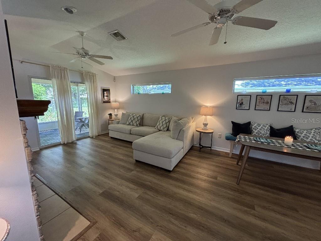 WELCOME HOME to 1984 GOLDEN PALM CIRCLE!! Darling Florida cottage style single family home! 2 BR/ 2 BA, and 2 car garage. Welcoming woodburning fireplace! Newly renovated, All NEW: AC, luxury laminate wood plank floors, kitchen cabinets, sink, fixtures, quartz and butcher block counters, bath vanities, bath fixtures, commodes, light fixtures, paint, rain gutters, garage floor epoxy and more! Appliances included! 2 car garage with utility sink. Fenced in yard. LOW HOAs ($165/ month) covers weekly lawn care, community pool, tennis, and pickleball! Golf cart friendly town!! Pop down to the restaurants, park, ice cream store or antique shops by the lake! This home is located in a friendly, small community - close to restaurants, shopping, the hospital, Publix, schools, and the Tavares seaplane base! It’s just a short scenic drive along Lakeshore to quaint downtown Mount Dora and all of its charm. This is Florida living at its best! Welcome Home!