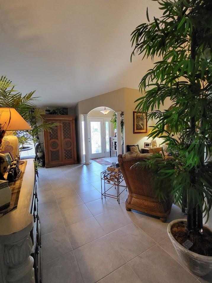 Welcome home to this beautifully maintained 3-bedroom 2 bath home with an oversized garage with 625 square feet that has a door keypad for easy access, screened sliding doors, a side entry door and cabinetry. Owners are offering up to $5,000 toward closing and prepaid assistance. The home offers a great floor plan and features a split bedroom layout with a spacious primary suite and large walk-in closet. There is a large bonus room that could be used as a fourth bedroom, media room or office and has its own entrance, sink and cabinetry. The home has architectural features that include high ceilings, plant ledges, stunning entrance, and columns. The Kitchen has an abundance of granite counters, high end stainless appliances, and a large walk-in pantry. The home is in a sought-after community with a low HOA fee of only $70 per month and offers many amenities which include a Community Pool, Fitness Center, Playground, Playing Field, Racquetball Courts, Gym, Sidewalks, Garbage Pickup twice weekly, and street sweeper that is seen on a regular basis. Major updates include new water heater (2025) new garage door opener (2025), New Tile Flooring (2024), New Enclosure Screen (2024), Roof (2022), AC (2021). This home is Move in Ready. Owners Can Close Quickly. Schedule today and discover all the many reasons you should live here.