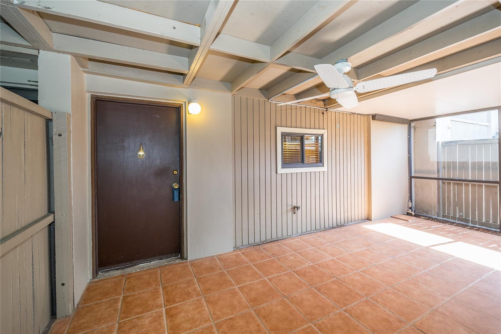 SELLER MOTIVATED, brand-new AC installed* 3 bedroom 1 ½ bath, master bath can be accessed through master bedroom or hall. Double pane windows throughout, with the exception of sliding glass doors leading to a tiled screened porch with sliding clear panels to close for weather or to make it more private. The kitchen has been updated with oak cabinets and hard countertops. All flooring is tile or hardwood. ½ bath down, utility closet, and storage. The screened area off the carport has a storage area; the screened area does have tile flooring, except for the drainage area. The carport has one space, but there are guest parking spots. The owner has access to the pool and tennis courts. SELLER SAYS "MAKE AN OFFER"