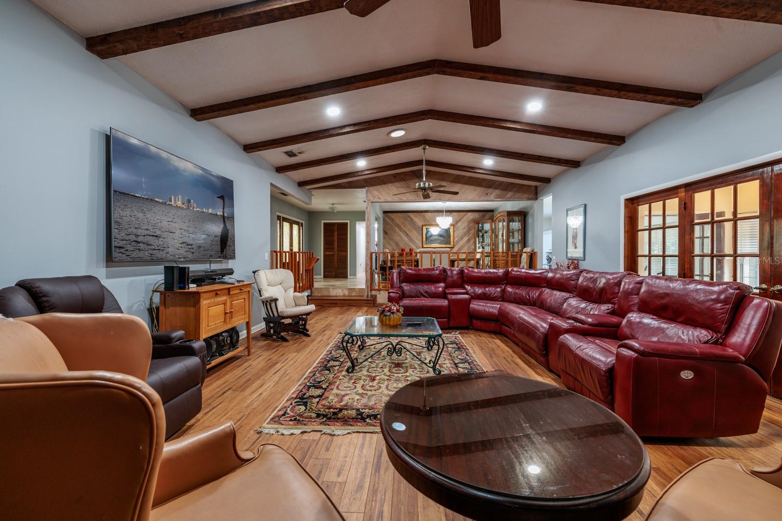 This spacious 5-bedroom, 3-bathroom split-level ranch home is ideally situated on a peaceful street in the leafy, well-established neighborhood of Temple Terrace, just around the corner from the Temple Terrace Family Recreation Complex. Nestled on a generously sized lot, the property has a backyard complete with a deck, inground pool, and a large, screened lanai, perfect for outdoor living and entertaining. Recent updates include a new roof (2023), a new A/C unit (December 2024), a fully renovated kitchen (2024), updated bathrooms, and a new water heater (2023). The expansive great room features soaring cathedral ceilings, a wood-burning fireplace, and French doors that open to an enclosed, air-conditioned Florida room, providing fantastic additional space for family and friends to gather. The brand-new kitchen offers granite countertops, an eat-in breakfast area, and plenty of storage, making it a dream for any home cook. The large master suite includes an ensuite bathroom with a jet tub, its own water heater and a separate walk-in closet, offering a private retreat. On the opposite side of the house are 3 guestrooms and 2 full bathrooms. The versatile 5th bedroom is currently being used as an office. A floor plan is included with the photos of the property. This home is located in a non-flood zone, so no flood insurance is required, and there are no HOA or CDD fees. The neighborhood is known for its excellent Charter Schools, and nearby International Baccalaureate programs. Conveniently located near I-75, the University of South Florida, the 14th hole of the Temple Terrace Golf and Country Club, Busch Gardens, the VA and Moffitt Hospitals, and just a short drive to beautiful beaches, this home offers the perfect balance of tranquility and accessibility.