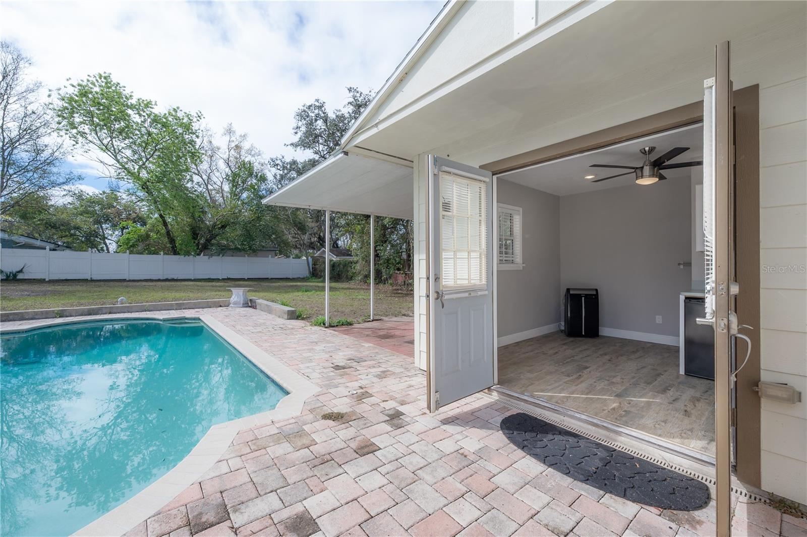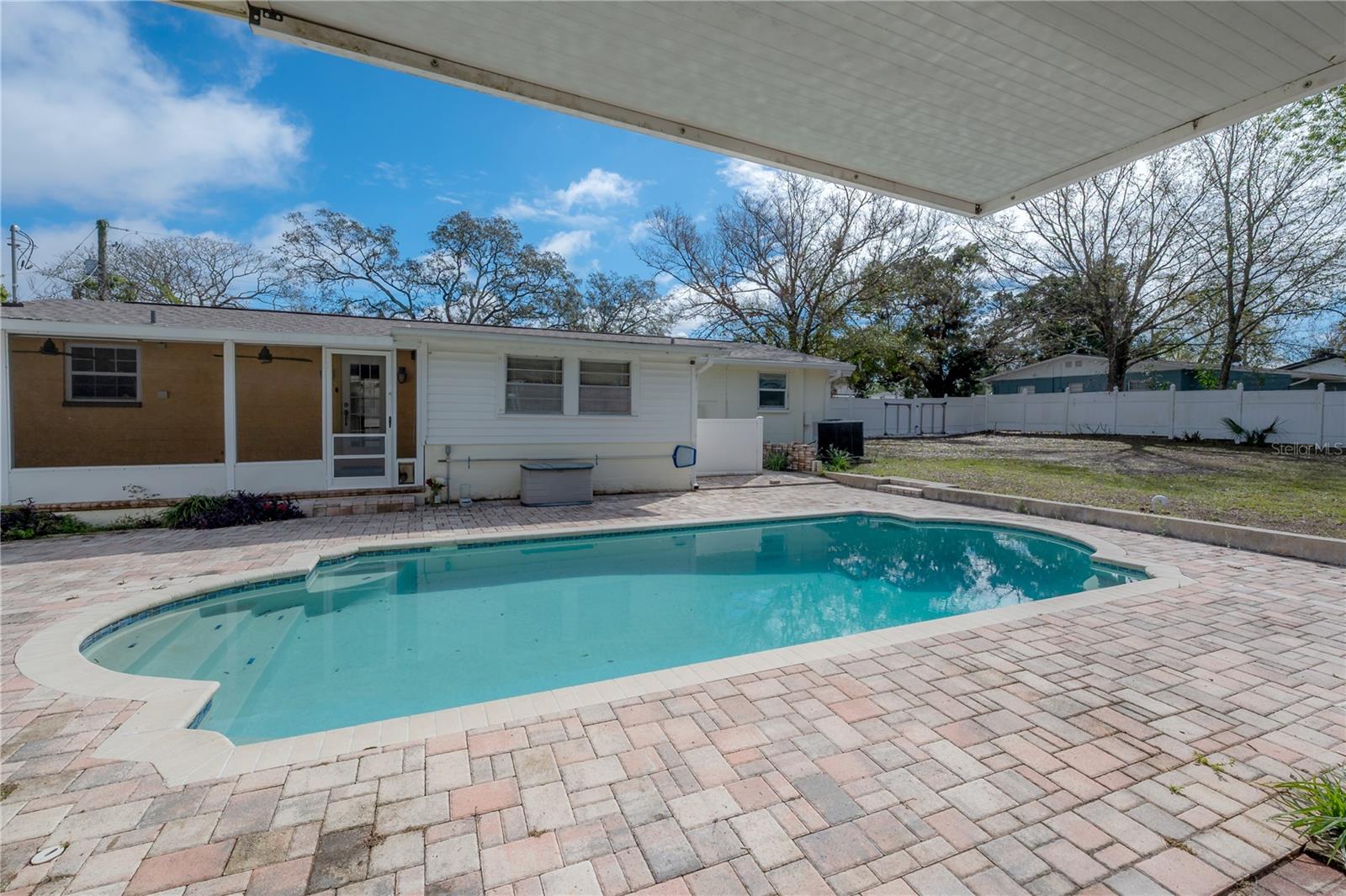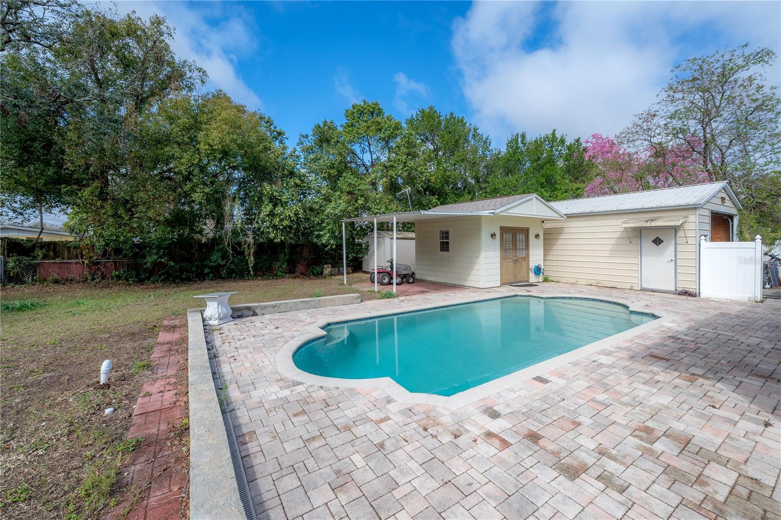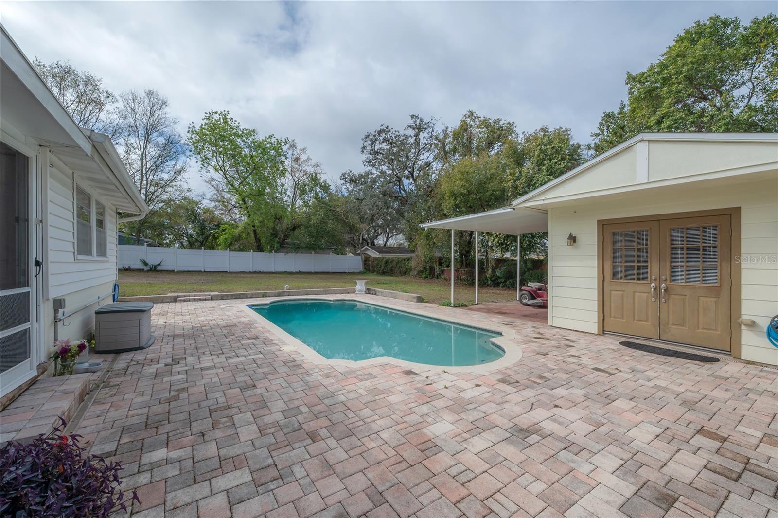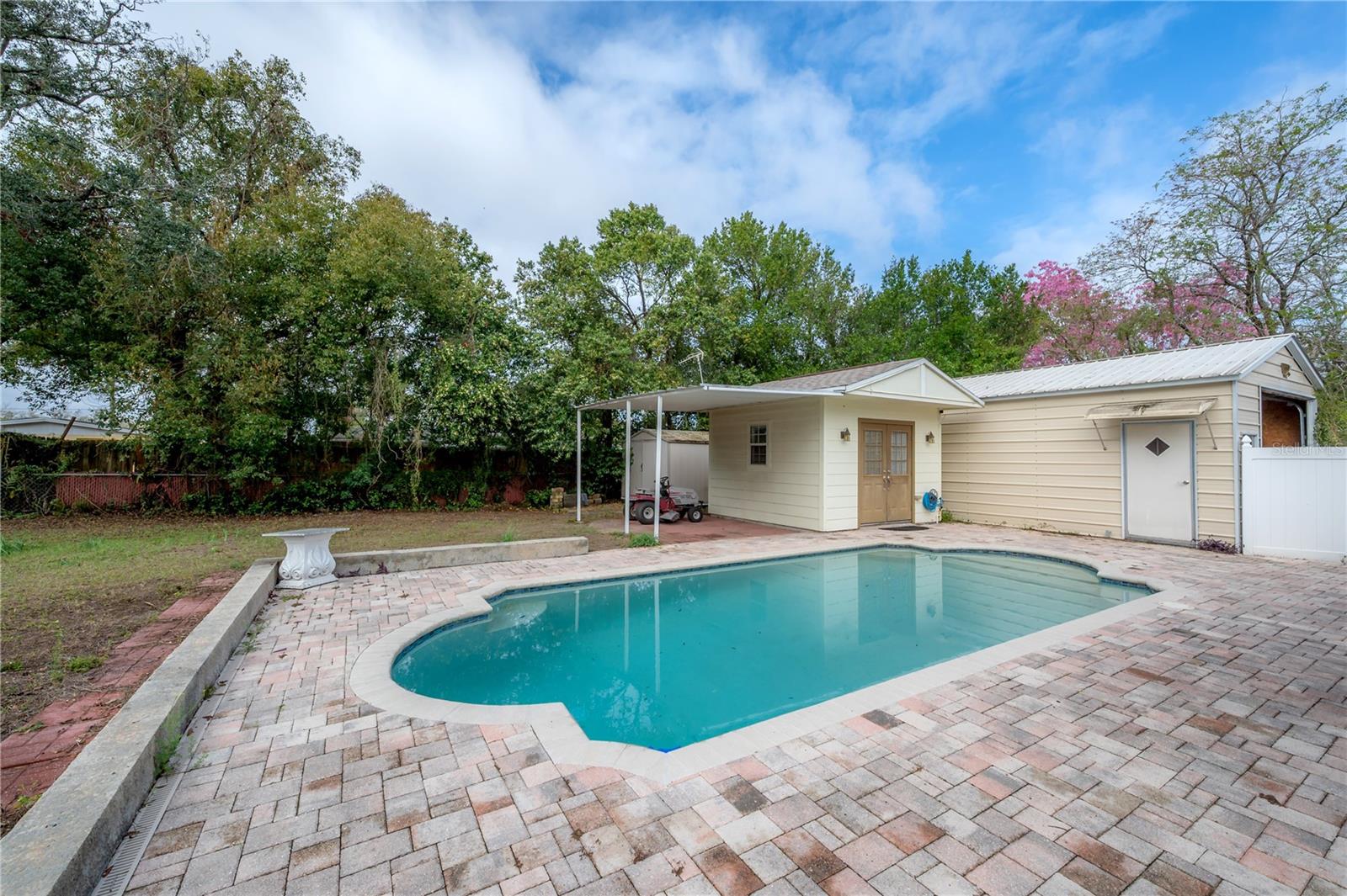 Backyard Bliss Awaits! Pool, Guest Space, & Recent Upgrades—No HOA! Beat the Florida heat in style! This 3-bedroom, 2-bath home with a detached studio casita is the ultimate summer sanctuary—complete with your very own private pool and spacious screened-in patio. Tucked away on a quiet dead-end street in the vibrant metro Tampa Bay area, this property offers the perfect blend of relaxation, flexibility, and functionality. Step inside to an open, airy layout filled with natural light and finished with engineered hardwood flooring. The kitchen is a chef’s dream—featuring granite countertops, a large center island with two pantries for maximum storage and prep space. The primary suite includes a generous walk-in closet and private en-suite bath, while two additional bedrooms share an updated full bathroom with updated finishes. The backyard is a true showstopper. Cool off in the sparkling pool, lounge on the brick paver patio, or unwind on the screened-in lanai with dual ceiling fans—all surrounded by mature trees and a fully fenced yard with the expansive feel of the double lot. It’s a private oasis designed for entertaining and everyday enjoyment. Recent Upgrades Include-- New pool pump motor + cleaner (July 2025)-- New water heater (July 2025) -- HVAC serviced (July 2025) --Newly updated GFCI outlets and other electrical improvements -- 1-year home warranty included with acceptable offer. Bonus Spaces & Features... Detached 1-bed/1-bath studio perfect for guests, remote work, or creative space -- Oversized 18x38 ft insulated garage/workshop with water and power—ideal for projects, RVs, or boat storage -- Double lot feel with space to roam or expand -- No HOA or CDD fees -- Convenient access to parks, golf, schools, Hillsborough River, and major roadways. Enjoy the best of Florida living—right from your own backyard. This home checks all the boxes for comfort, style, VALUE, and versatility. Schedule your private showing today!