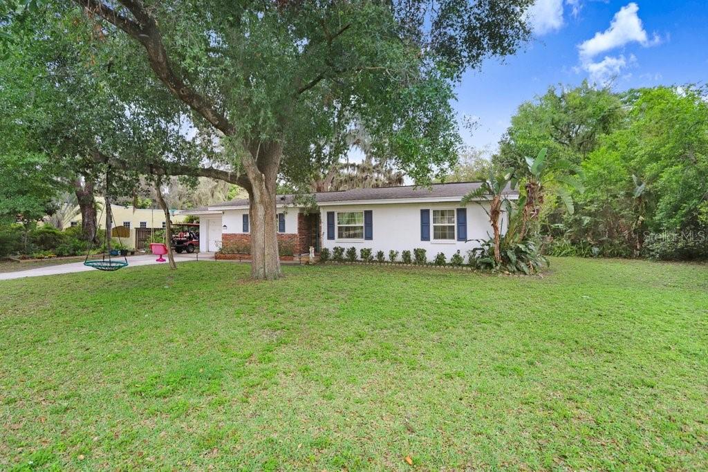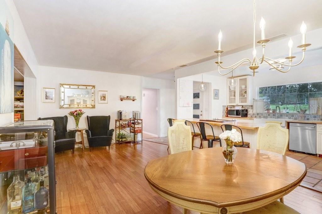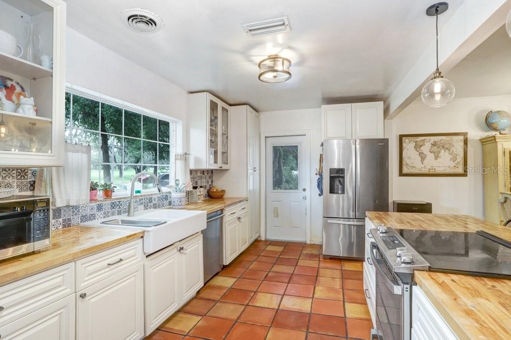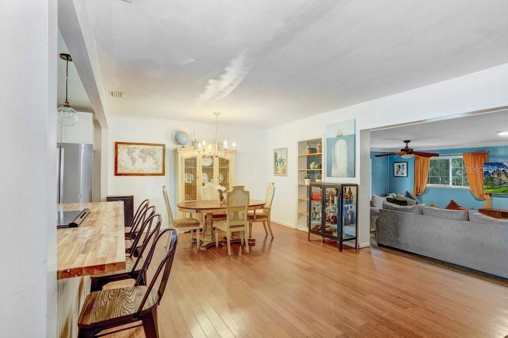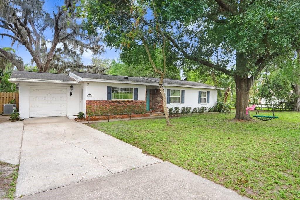 Welcome to this delightful 1950’s gem, nestled right on the 12th hole of the Temple Terrace Golf Course! This charming 3-bedroom, 2-bathroom home blends 1950s character with thoughtful modern updates—offering the perfect balance of style, comfort, and functionality. From the moment you arrive, you'll be captivated by the scenic golf course views from the front of the home. Step inside to discover a spacious open floor plan that seamlessly connects the living, dining, and kitchen areas—ideal for entertaining or relaxing with family. The kitchen, beautifully updated in 2017, features warm butcher block countertops, a chic tile backsplash, crisp white cabinetry, and classic Saltillo tile flooring. A large front-facing window brings in natural light, and a convenient side entry door adds easy access. The kitchen opens to bar seating, a cozy dining area, and a formal living room, flowing effortlessly into a generous family room and an additional bonus room—perfect as a fourth bedroom, home office, or playroom. Tucked away to the right of the kitchen, the bedroom wing can be closed off with a pocket door for added privacy. The primary suite includes a private ensuite bath with a walk-in shower, while two additional bedrooms share a full bathroom with a tub-shower combo. One of the guest bedrooms features beautiful bamboo hardwood flooring, also added in 2017. Outside, enjoy a backyard built for fun and relaxation, with a sparkling pool and a deep 180-foot lot—plenty of space for entertaining or creating your dream outdoor oasis. The one-car garage includes laundry space, and the extended driveway with an extra parking pad ensures plenty of room for guests. Additional updates bring peace of mind: roof (2017), Pella Windows (2017), AC (2018), hot water heater (2022), pool heater (2022), and brand new carpet (2024). This home offers timeless charm with modern comfort—don’t miss your chance to make it yours!