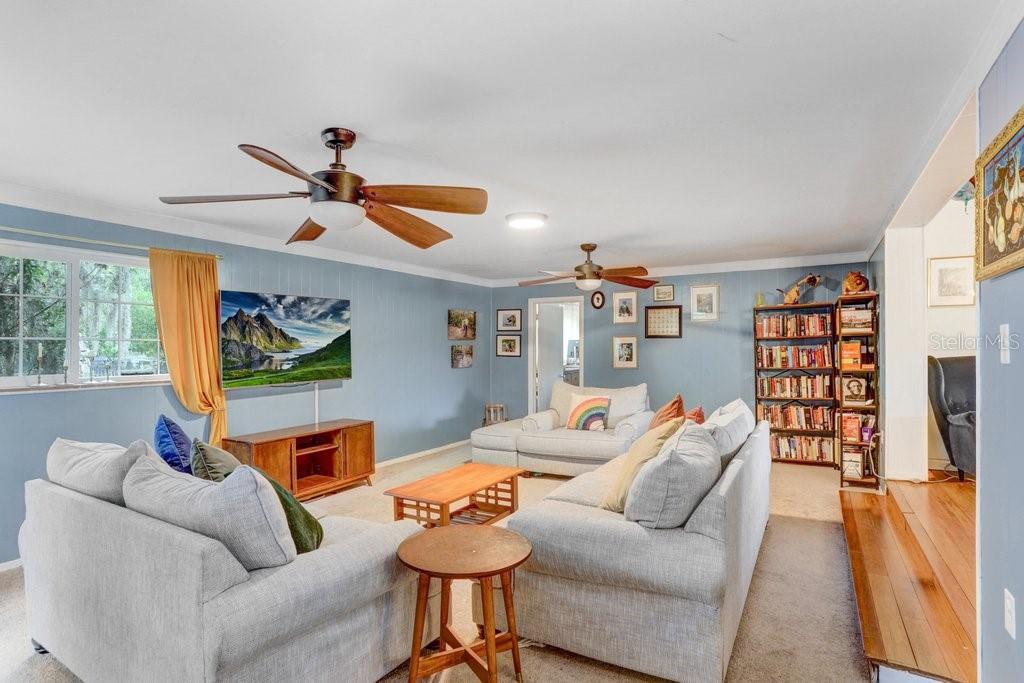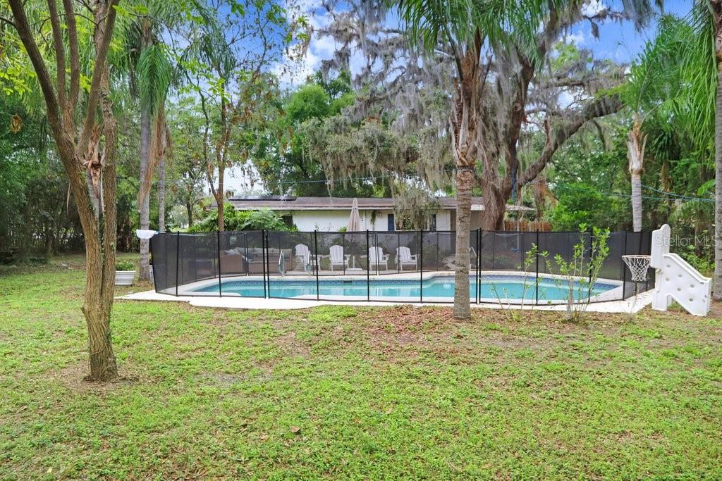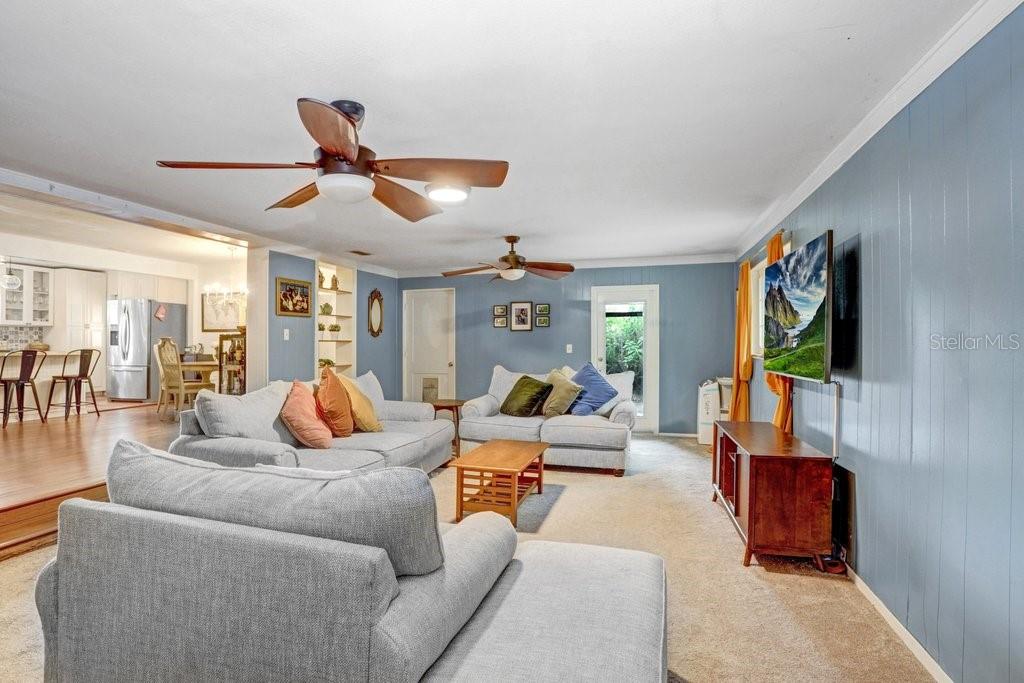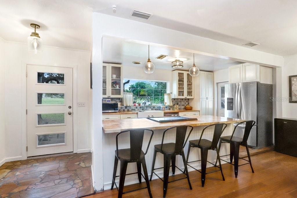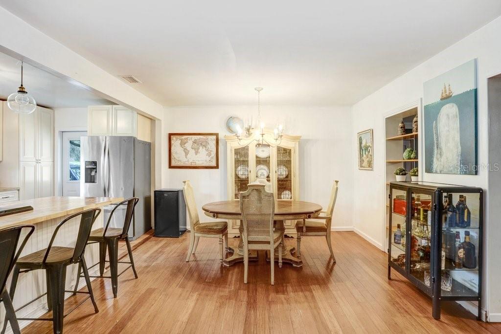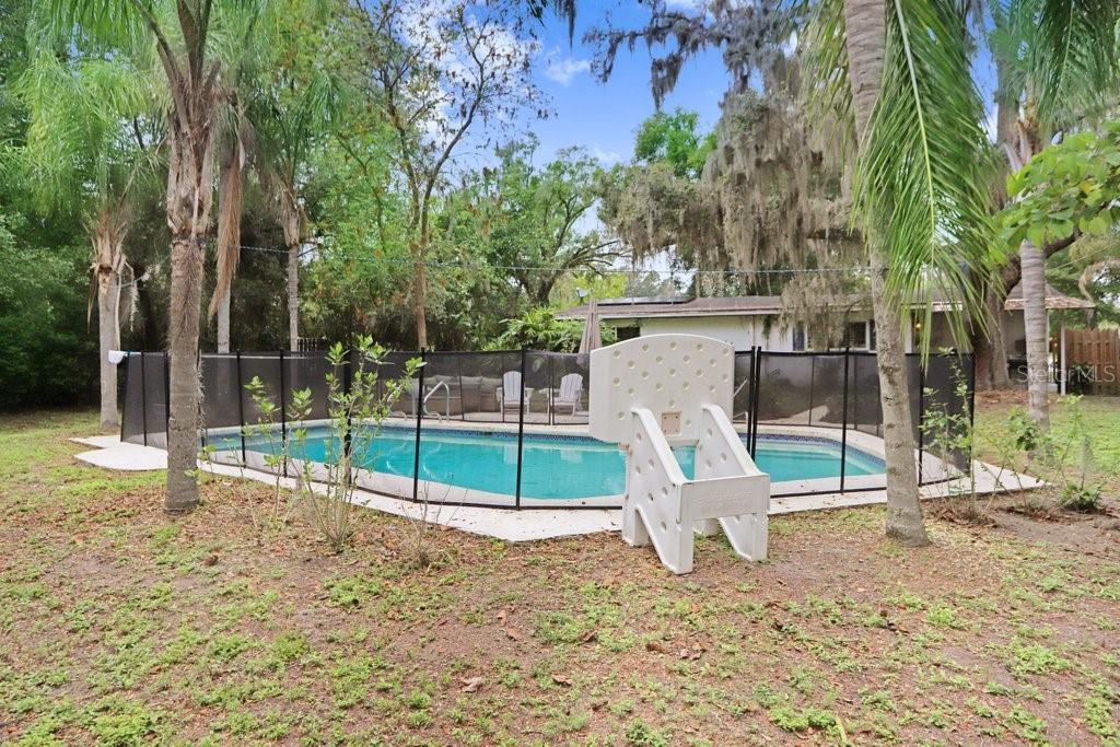 Welcome to this delightful 1950’s gem, nestled right on the 12th hole of the Temple Terrace Golf Course! This charming 3-bedroom, 2-bathroom home blends 1950s character with thoughtful modern updates—offering the perfect balance of style, comfort, and functionality. From the moment you arrive, you'll be captivated by the scenic golf course views from the front of the home. Step inside to discover a spacious open floor plan that seamlessly connects the living, dining, and kitchen areas—ideal for entertaining or relaxing with family. The kitchen, beautifully updated in 2017, features warm butcher block countertops, a chic tile backsplash, crisp white cabinetry, and classic Saltillo tile flooring. A large front-facing window brings in natural light, and a convenient side entry door adds easy access. The kitchen opens to bar seating, a cozy dining area, and a formal living room, flowing effortlessly into a generous family room and an additional bonus room—perfect as a fourth bedroom, home office, or playroom. Tucked away to the right of the kitchen, the bedroom wing can be closed off with a pocket door for added privacy. The primary suite includes a private ensuite bath with a walk-in shower, while two additional bedrooms share a full bathroom with a tub-shower combo. One of the guest bedrooms features beautiful bamboo hardwood flooring, also added in 2017. Outside, enjoy a backyard built for fun and relaxation, with a sparkling pool and a deep 180-foot lot—plenty of space for entertaining or creating your dream outdoor oasis. The one-car garage includes laundry space, and the extended driveway with an extra parking pad ensures plenty of room for guests. Additional updates bring peace of mind: roof (2017), Pella Windows (2017), AC (2018), hot water heater (2022), pool heater (2022), and brand new carpet (2024). This home offers timeless charm with modern comfort—don’t miss your chance to make it yours!