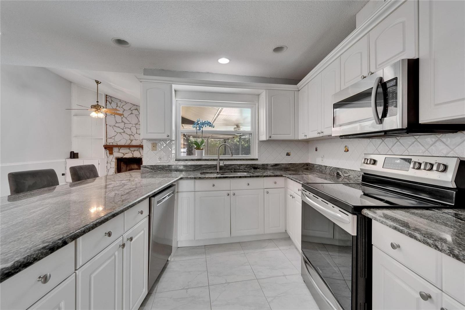 One or more photo(s) has been virtually staged. Stylish, Smart & Sparkling with Upgrades — This Pool Home Has It All! Welcome to your Florida dream home — updated, well-loved, and ready to impress! This 4-bedroom, 2.5-bath gem offers a spacious split floor plan, vaulted ceilings in the primary suite, a walk-in closet that actually fits your wardrobe, and double sinks so you don’t have to share. The formal living room features elegant etched glass doors and easily transforms into a home office, playroom, or quiet retreat. Enjoy beautiful views of the sparkling screened-in pool from the formal living room, kitchen, and family room—perfect for relaxing or entertaining. The kitchen opens to the family room and offers granite countertops, white cabinetry, and a sunny dinette space for casual meals and conversation. Built in 1985 with block construction and sitting on a large 0.21-acre lot in Flood Zone X, this home has 2,021 heated square feet (2,740 total) and upgrades in all the right places. The roof was replaced in 2015, the A/C system and water heater were both installed in 2022, and the windows were upgraded to double-pane, low-E gas in 2021. The exterior was freshly painted in 2022, and the fenced backyard includes a large shed (sold as-is), new pool pump motor, and new LED pool light. Inside, enjoy new stainless steel sink faucets, rainfall showerheads, updated modern light fixtures, fairly new carpet (two years), new slow-close toilet seats, cabinet knobs, a Nest smart thermostat, and high-efficiency attic insulation with an R41 rating. The super quiet garage door has new rollers and springs, and the garage also includes an electric car charger. The home is also equipped with a generator to keep select appliances and lights running in the event of a power outage. All kitchen appliances convey, including the refrigerator, stove, dishwasher, microwave, and garbage disposal. Conveniently located near parks, a recreation center, golf course, and USF, this home blends comfort, functionality, and a fantastic location. Come see why this one checks every box.