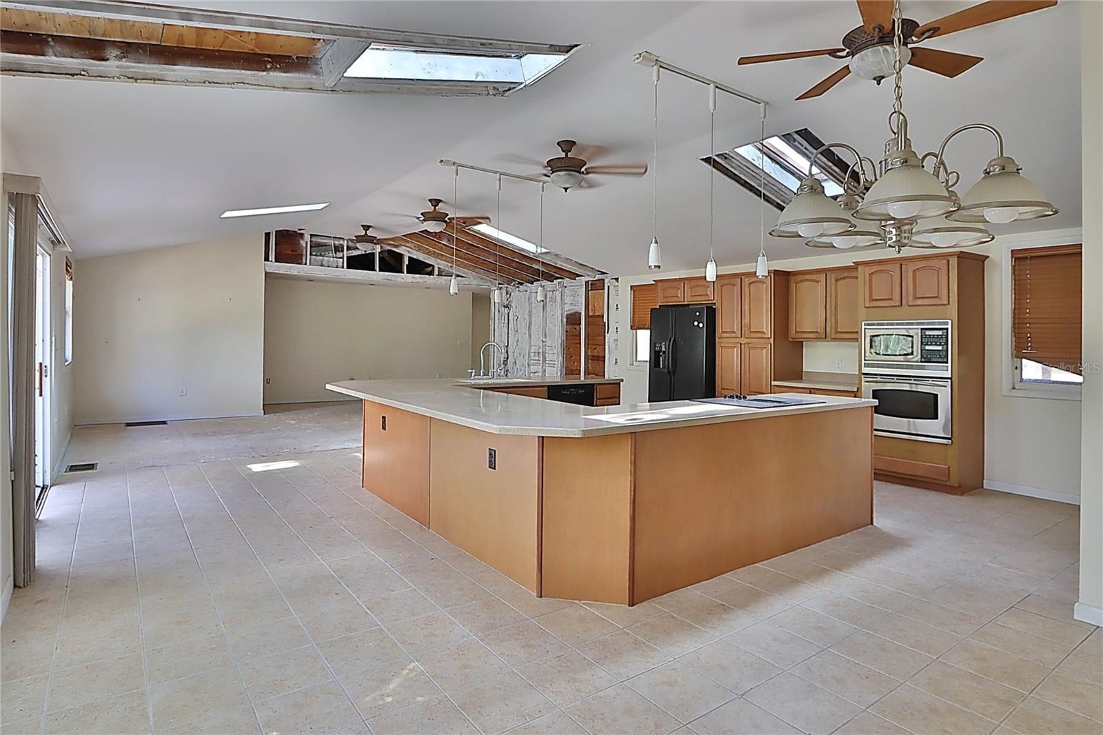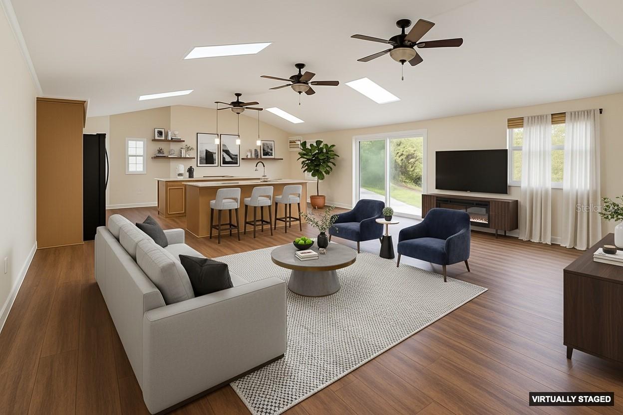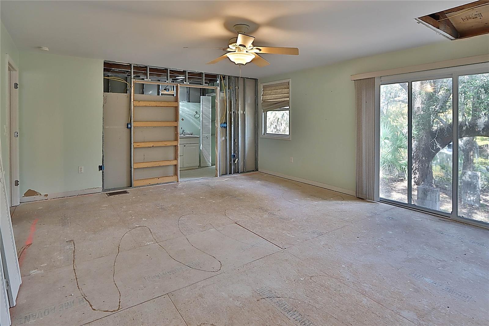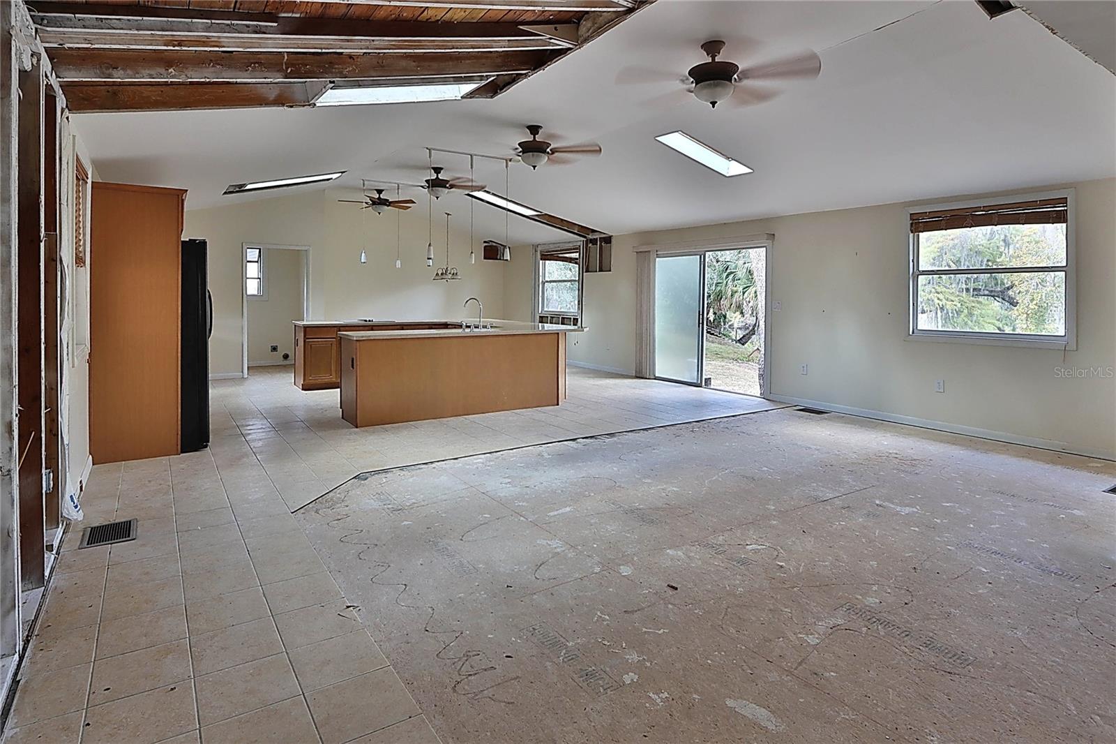 One or more photos have been virtually staged. Opportunity awaits the discerning buyer who can see the potential in this waterfront home directly on the Hillsborough River! A brand new roof was just installed in October 2025 followed by professional mold remediation just completed in November 2025. Important to note: the home did NOT flood from the river! There was a leak in the old roof that allowed water intrusion, and that is the reason why mold remediation was completed. The home is now ready for drywall installation and a fresh coat of paint in your favorite color! Featuring over 2000 SF of living space with vaulted ceilings and natural skylights and sliders looking out to the large backyard overlooking the river. The rear deck needs to be replaced, but just imagine hosting dinner parties with family and friends surrounded by nature and the babbling waters of the river. Central hub of the home includes a large living area on one side of the enormous kitchen with dining area on the other side. Each of the three bedrooms have their own attached full bath, and in addition, there is a half bath, shared with laundry facilities, off of the kitchen. Skylights and sliders allow lots of natural light giving the home an expansive feel.You can't beat the location of your new home! Right off of Fowler (SR 582), by 56th St. Only 3 miles to USF, 6 miles to I-275 or 3 miles to I-75, and 20 miles to Tampa International Airport. Tons of shopping, restaurants, entertainment venues like Busch Gardens, Adventure Island, MOSI, local parks and rec centers, and the list goes on! Optional paid memberships to the Temple Terrace Golf and Country Club are available as well. They offer social, golf, and even summer memberships! Any information provided, including room measurements, should be verified by buyer.