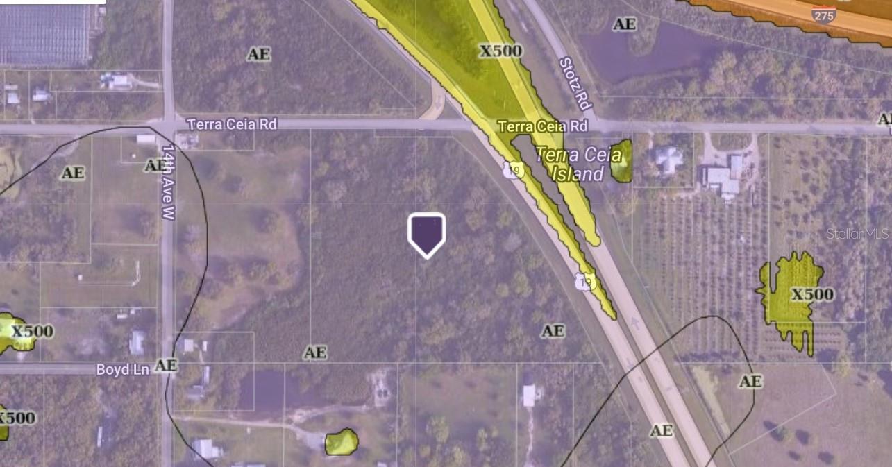 Tax Legal Description: COM AT THE NW COR OF THE SW 1/4 OF SEC 26,TH S 89 DEG 53 MIN 05 SEC E ALG THE N LN OF THE SD SW 1/4 ALSO BEING THE SLY R/W LN OF TERRA CEIA RD, A DIST OF 409.06 FT FOR A POB; TH CONT S 89 DEG 53 MIN 05 SEC E, ALG SD N LN, A DIST OF 402.15 FT TO A PT ON THE WLY R/W OF US HWY NO. 19, SD PT BEING ON A CURVE CONCAVE TO THE SW, HAVING A RDIUS OF 3751.72 FT; TH SELY