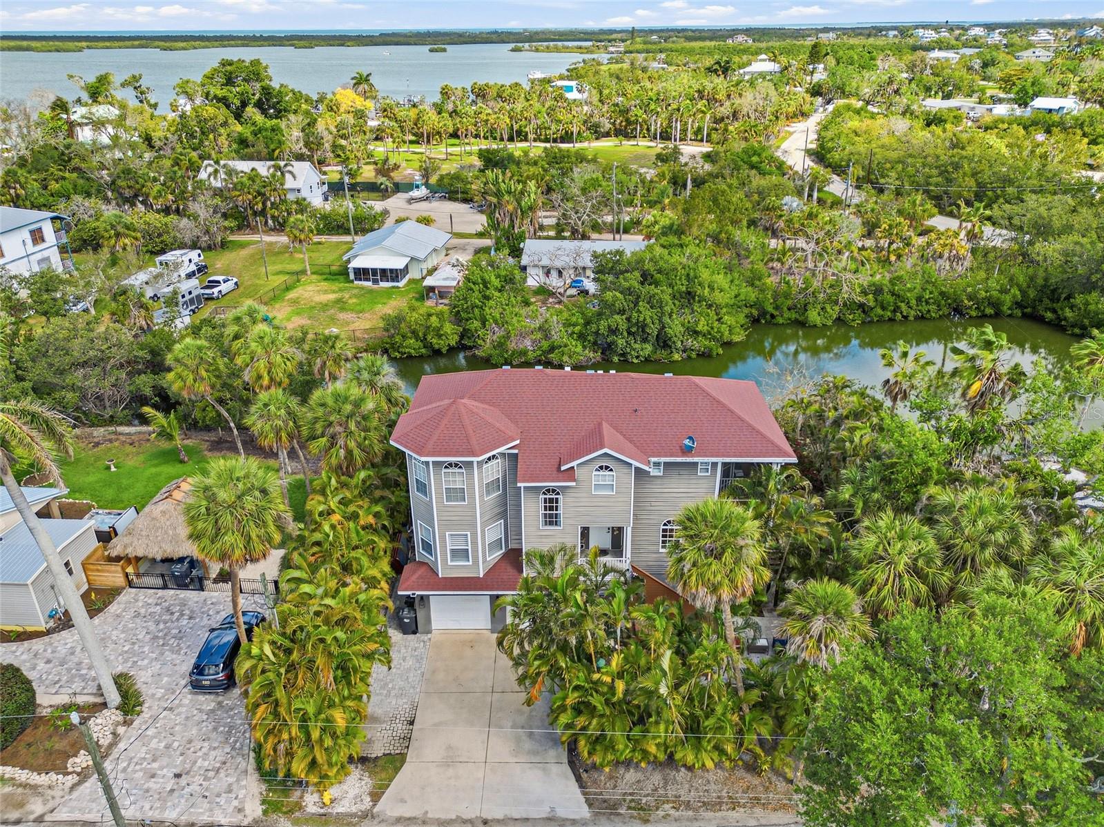 Welcome home to a peaceful retreat nestled in the heart of Terra Ceia, where natural beauty surrounds you at every turn. As you wind through the community, you’ll immediately feel a sense of calm before arriving at this stunning residence, framed by lush tropical landscaping and captivating curb appeal. Access is effortless with both elevator and stair entry leading to the main living level as well as the 3rd floor. Inside, rich wood flooring flows seamlessly throughout, setting a warm and inviting tone. The expansive living room is ideal for entertaining or unwinding, showcasing tranquil views of the shimmering saltwater lake and opening to a private balcony perfect for enjoying gentle breezes and serene sunsets. A versatile study or den just off the living area provides the ideal space for a home office or quiet retreat. The kitchen is designed to inspire, offering abundant cabinetry and countertop space to satisfy any home chef. A second private balcony makes outdoor grilling both convenient and enjoyable. The adjoining formal dining room is perfectly suited for hosting gatherings, while a well-placed half bath completes this level. Upstairs, the third floor features a full-size laundry room and a spacious primary suite that serves as a true sanctuary. Enjoy your own private balcony, a generous walk-in closet, and a beautifully appointed ensuite bath. Two additional bedrooms are thoughtfully positioned down the hall, sharing a full bathroom and a private balcony with picturesque lake views. Step outside and immerse yourself in the tranquil surroundings. Your private dock invites you to relax by the water or enjoy peaceful moments lakeside. An oversized swim spa offers the perfect place to unwind after a long day, while multiple seating areas throughout the grounds create inviting spaces for conversation or quiet reflection. The expansive garage provides ample room for vehicles, storage, or even a workshop tailored to fit your lifestyle needs. For those seeking direct access to Gulf waters and exceptional fishing, a rare opportunity awaits. The vacant lot across the street is available for purchase at $175,000, offering a newly installed dock and additional space for parking or entertaining. This is more than a home, it’s a serene escape in one of Terra Ceia’s most peaceful settings. Don’t miss your opportunity to own your own slice of paradise. Schedule your private showing today.