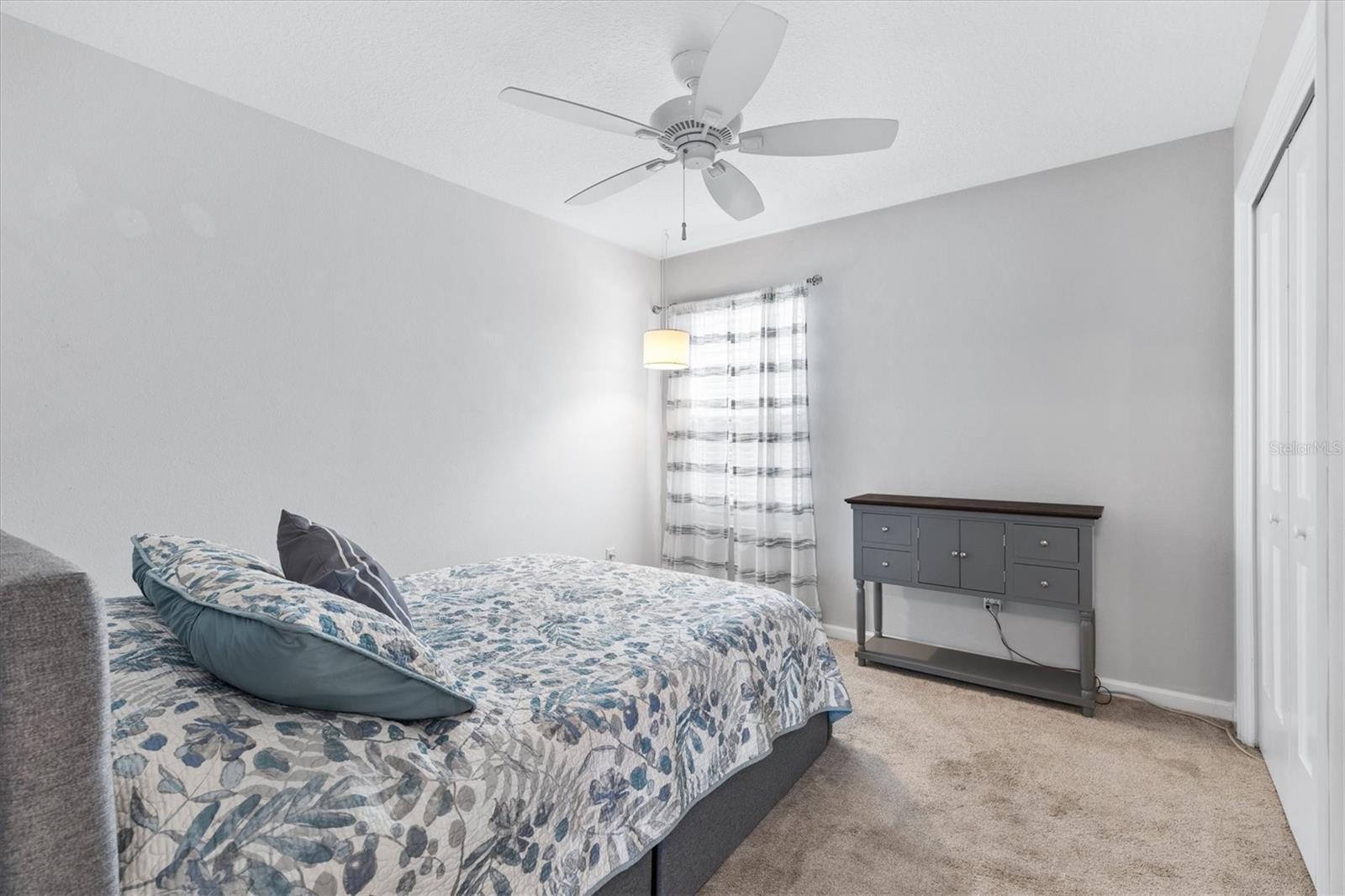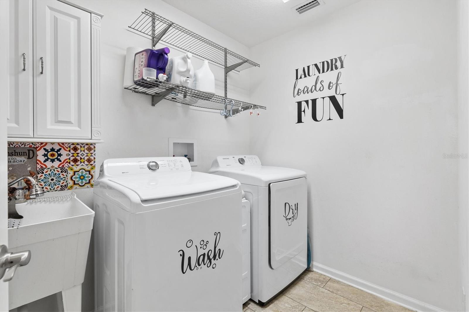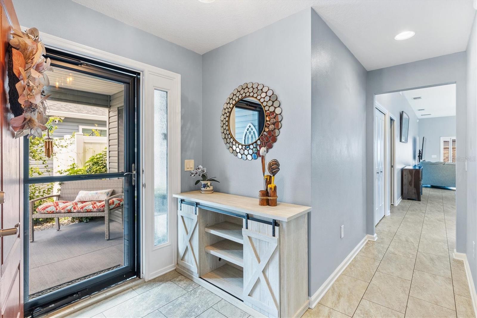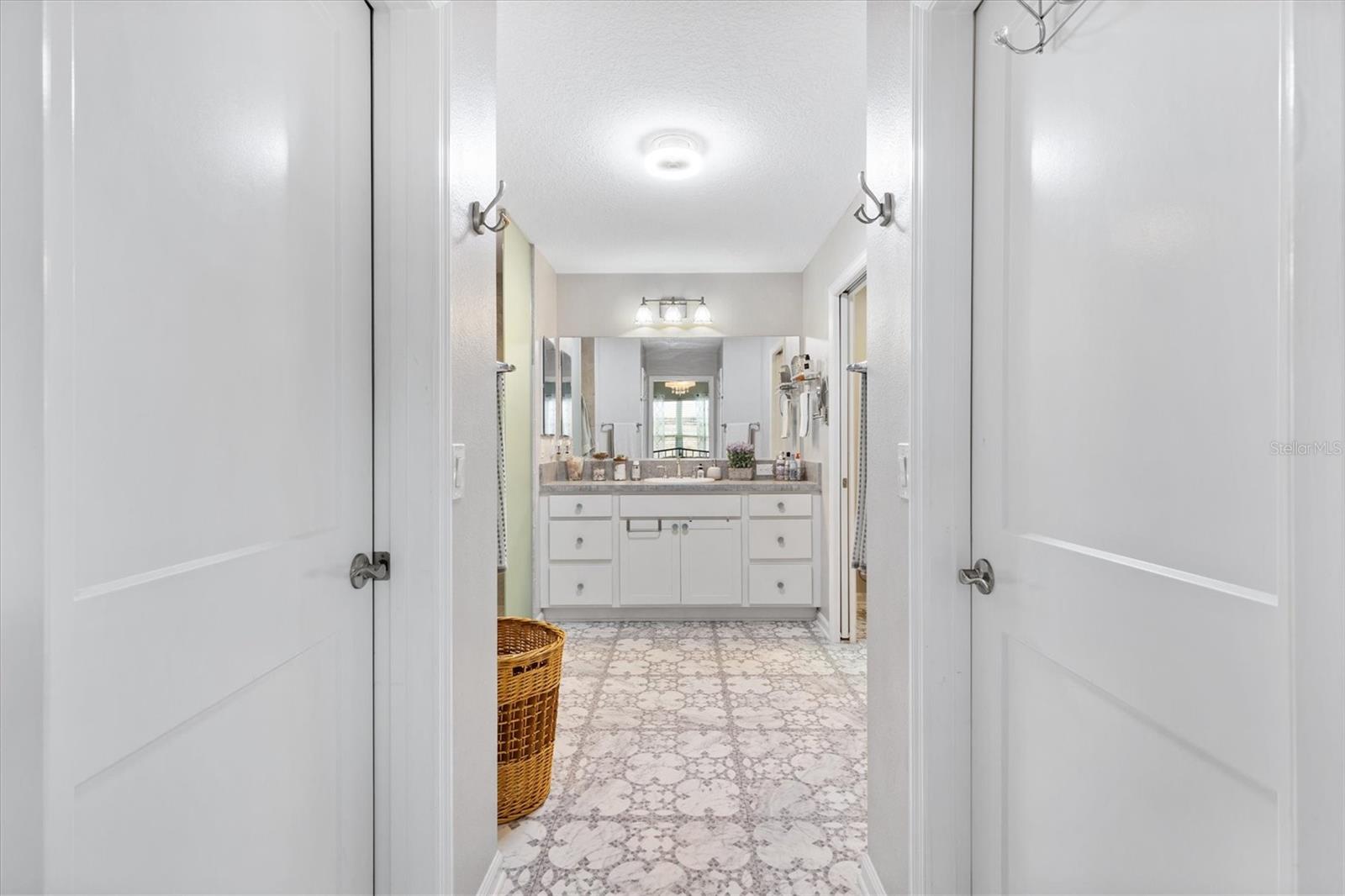 Indulge in effortless elegance within this stunning 3-bedroom, 2-bathroom courtyard villa. The home's open layout seamlessly connects the kitchen, dining, and living areas, creating a spacious and inviting atmosphere. Elevate your everyday living with upgraded light fixtures and ceiling fans that grace every corner of this residence. Luxury vinyl plank flooring flows effortlessly throughout the main living areas and bathrooms, combining the warmth and beauty of hardwood with the practicality of low-maintenance living. This durable and stylish flooring choice offers a sophisticated touch while ensuring easy care. The gourmet kitchen is a chef's dream, featuring a generous island perfect for culinary adventures or casual dining. High-end stainless steel appliances, including a gas stove, and a chic backsplash complete this culinary haven. Retreat to the oversized owner's suite, a tranquil sanctuary boasting a spa-like Roman shower. The second bathroom offers a convenient tub/shower combination. Discover the versatility of a pocket door that effortlessly transforms one of the guest bedrooms and its bathroom into a private guest suite, ideal for accommodating visitors. Step outside to your screened lanai, a peaceful retreat surrounded by privacy walls, perfect for relaxation or entertaining. Immerse yourself in the vibrant lifestyle of The Villages, a renowned retirement community offering an array of amenities to suit every interest. From championship golf courses and world-class recreation facilities to cultural events, clubs, and social activities, there's always something to enjoy. Experience the ultimate in carefree living in this exquisite courtyard villa.
