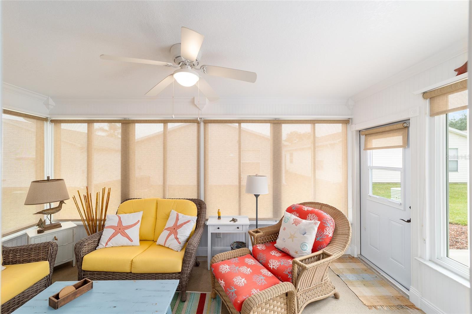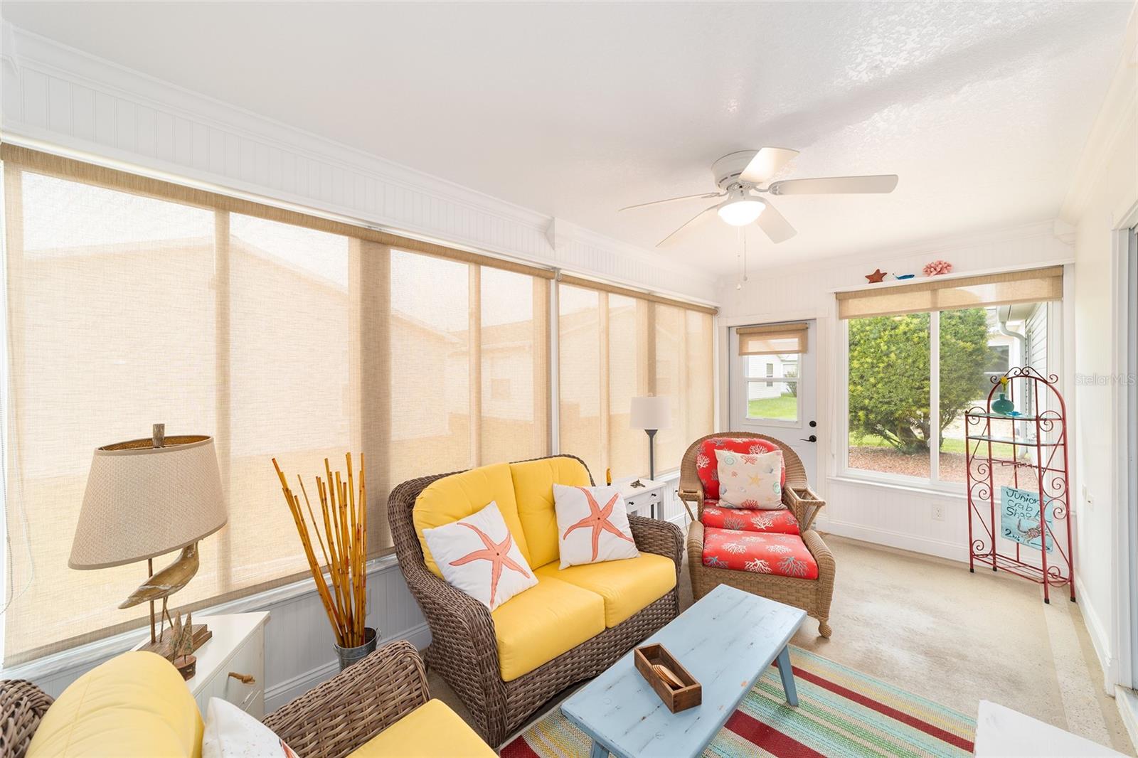Here’s your chance to own a beautifully maintained, fully furnished 3-bedroom, 2-bath, 2-car garage home in the lovely Village of Belle Aire. From the moment you walk in, you’ll notice the warm, inviting colors and gorgeous tile and maple hardwood flooring that give the home a welcoming, comfortable feel. The enclosed lanai, complete with wainscoting, crown molding, window treatments, and a ceiling fan, is perfect for relaxing or entertaining year-round. This home has an open floor plan with high vaulted ceilings, giving it a bright and spacious feel. The split layout offers privacy, with the primary suite on one side and the guest bedrooms on the other. The third bedroom has a Murphy bed, making it perfect for guests, a home office, or a hobby room. The two-car garage comes with a sliding screen, bicycles, a golf cart, and plenty of storage, making it easy to take full advantage of everything The Villages has to offer. Life in The Villages is unmatched, golf, swimming, shopping, dining, community events, and nightly entertainment are all right at your doorstep. Plus, you’re close to Nancy Lopez Legacy Country Club and Glenview Champions Golf & Country Club, both offering fine dining, tennis, pools, and more. Step right in and get ready to enjoy.