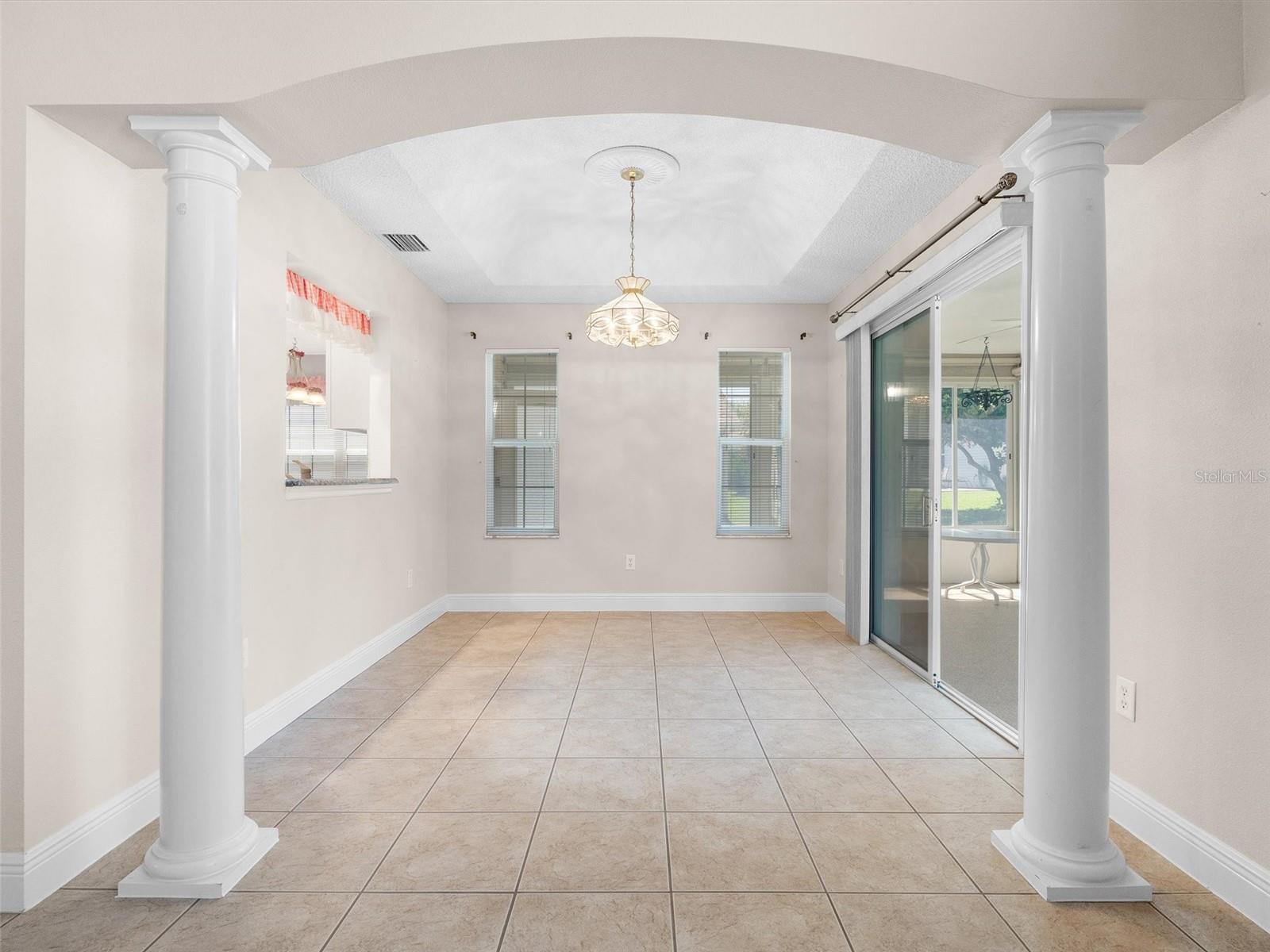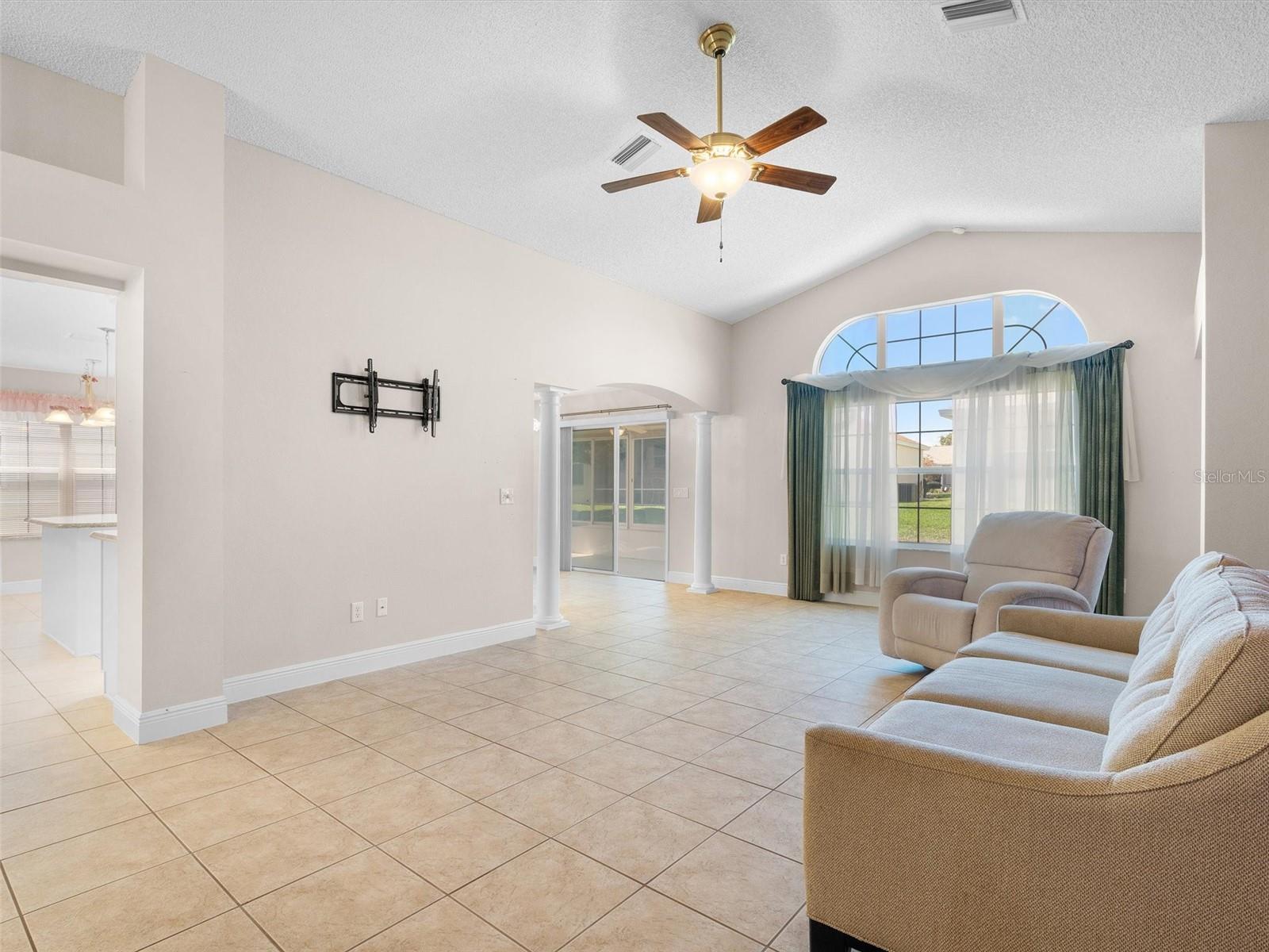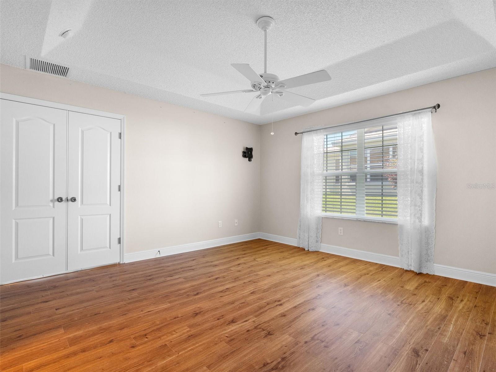 This stunning 3/2 Oleander model home in the Village of Liberty Park is brimming with charm and style, and best of all, there's NO BOND! NEW ROOF!! As you approach the property, you'll be greeted by a covered and screened enclosed front entry, complete with a beautiful leaded glass front door flanked by glass side panels and a transom window. Once inside, enjoy the spacious living room and formal dining room with sliders to the lanai. The kitchen features granite, a gas stove, serving island, pantry closet, and a solar tube that floods the space with natural light. The pull-out cabinet shelves make organizing a breeze, and the dining nook is ideal for enjoying casual meals with family and friends. Connecting seamlessly with the kitchen is an enclosed and screened lanai boasting an epoxy-coated floor, ideal for relaxation and entertaining. Just beyond, an outdoor grilling patio awaits, offering the perfect spot for enjoying barbecues year round. Retreat to the master suite at the rear of the home, showcasing wood-look laminate floors, a tray ceiling, and his and her walk-in closets that lead to an ensuite bath. Features dual granite vanities, a shower with a built-in bench, and a private water closet. The carpeted guest bedrooms at the front of the home are perfect for accommodating loved ones or creating a home office or hobby room. They share a bath with a shower tub combo. Additional features include entry hall coat closet, attic stair kit, electric screened garage door, pull down shades in the lanai, and whole-home humidity control. Home comes with 1 year home warranty!! It’s a great location surrounded by 14 executive golf courses and less than a mile from Southern Star, Yankee Clipper, and Turtle Run Championship Golf Courses. With eight recreation centers located within a mile, residents will enjoy plentiful indoor and outdoor activities. Take a leisurely stroll to Allamanda Family pool and St. Charles Adult Pool. And with Lake Sumter and Brownwood Town Centers, just minutes away, you’ll have access to an abundance of dining shopping and entertainment. This location can't be beat! Don’t delay! Watch our virtual tour of this fabulous home and make your appointment to see this house today so you can start living The Villages Dream! Bedroom Closet Type: Walk-in Closet (Primary Bedroom).