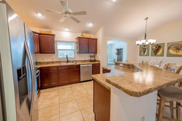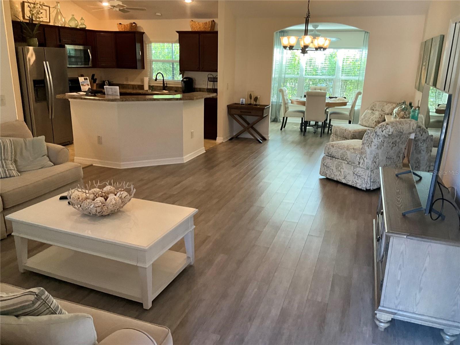 Motivated seller! This beautifully furnished Allamanda model in the Village of Fenney offers a spacious open concept with in-suite laundry and a well-equipped kitchen. The additional room can be used as a sitting area or expanded dining space, filled with natural light perfect for relaxing. With like-new furniture and stainless steel appliances, just bring your clothes and toothbrush to move in. Tall ceilings in the living room, kitchen, and dining area create an airy feel. Enjoy the screened-in lanai with a TV and adjacent patio for grilling—ideal for sports fans. The main bedroom features his and her closets and an en-suite bath, while the split bedroom design ensures privacy with pocket doors separating the other two bedrooms and bathroom. Built in 2017, this 3-bedroom, 2-bath home with a 2-car garage is tastefully decorated. Located in The Villages, you'll have easy access to Fenney Grill, which serves a full menu and bar, provides daily entertainment, and has a pool with a zero-gravity entrance where you can order poolside. Family members are welcome, and the area features walking trails, shaded picnic tables, and plenty of social groups. Enjoy clubs for pickleball, tennis, and more, with a large circle of players throughout The Villages. The community boasts over 3,000 organized activities weekly, including card games, exercise groups, and outdoor social leagues. Golf enthusiasts will love the numerous courses designed by professional players, including Nancy Lopez Legacy Golf & Country Club and Palmer Legends Country Club, as well as fun and challenging putting courses with real grass greens. You will find the Village of Fenney to be home to some of the friendliest folks you will ever meet. Come on down and make new lifelong friends in this warm and welcoming community. The owner lives out of state and is ready to sell—bring us your best offer ! Let this be your new dream home for escaping the cold winters up north or your forever home in the friendly Florida sunshine. Priced to sell quickly!