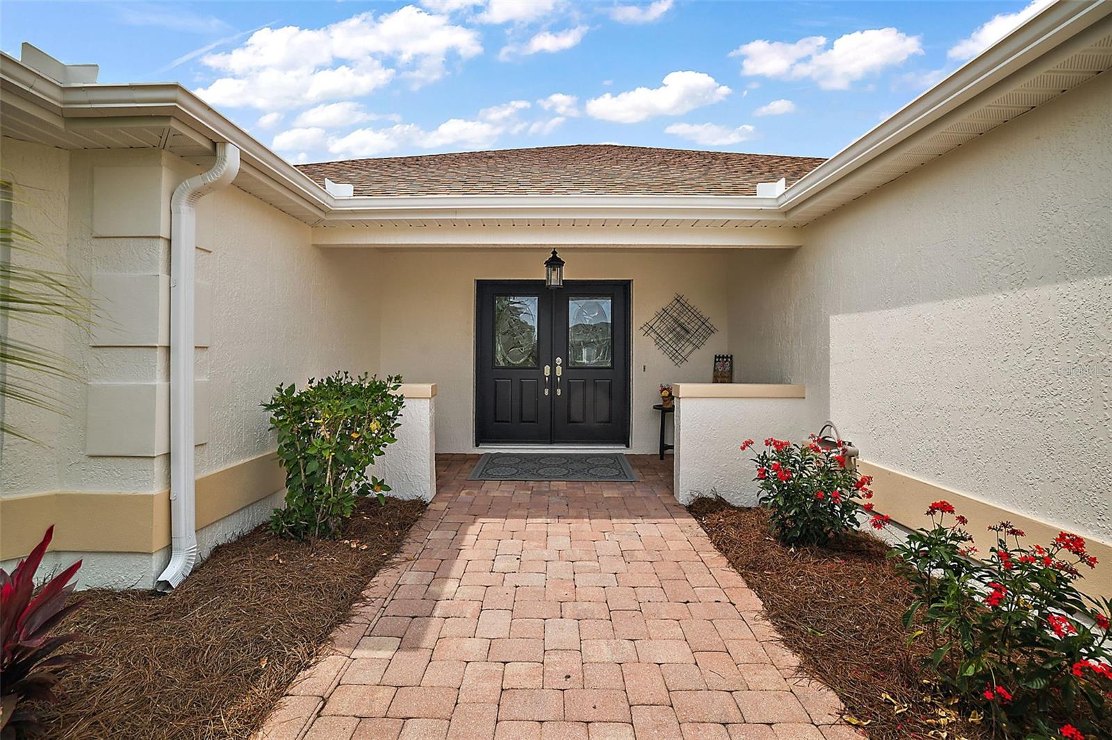 BEAUTIFULLY RENOVATED HOME IN THE VILLAGES...NEW ROOF 2024...NEW HVAC 2024...NEW HOT WATER HEATER 2024... BOND PAID...SUPER LOCATION, 5 minutes from NIGHTLY ENTERTAINMENT, SHOPPING, RESTAURANTS, MEDICAL and GROCERY STORES...This GORGEOUS 3/2/2 is a BLOCK and Stucco Fabulous DESIGNER HOME with all the BELLS and WHISTLES. DOUBLE DOOR ENTRY, CHEF KITCHEN with SS APPLIANCES, QUARTZ Countertops Light and Bright. SPACIOUS LIVING AREA, VAULTED CEILING, LVP FLOORING throughout (NO CARPET), INDOOR Laundry, the front guest bedroom has a BAY WINDOW with Lots of natural lighting. The THIRD BEDROOM/DEN is perfect for an office, hobby room or 3rd bedroom (without a closet). New INTERIOR AND EXTERIOR Paint, NEW LIGHT FIXTURES and CEILING FANS, BOTH BATHROOMS HAVE QUARTZ COUNTERTOPS, along with NEW SINKS, FIXTURES and more. Double FRENCH DOORS lead to the SPACIOUS MASTER BEDROOM SUITE with Sliding Glass Door to SCREENED ENCLOSURE. The EnSuite Master bath features LARGE WALK-IN CLOSET, DOUBLE SINKS, including WALK-IN SHOWER and Separate WATER CLOSET...Sliders Open to NICE SIZE SCREEN ENCLOSURE. Great Curb Appeal with PAVER BRICK Driveway and Walkway with LUSH Landscaping and PALM TREE. Come and ENJOY ALL THAT THE VILLAGES has to offer, call today to schedule your private showing.