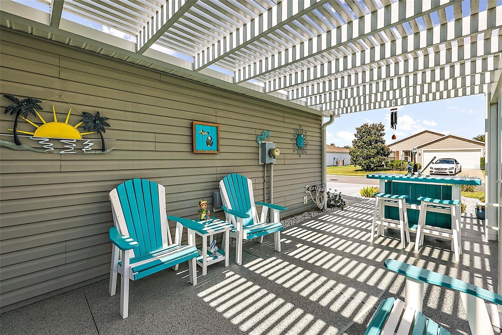 Welcome to your dream home! This beautifully upgraded 3/2 Tuckett Inn model, nestled in the sought-after village of Buttonwood, is a true gem – exuding a perfect blend of comfort and style. As you approach, high-end DECORATIVE driveway and walkway paint enhance the curb appeal, inviting you into your own private retreat. Step inside, and you'll immediately feel embraced by a sense of warmth and luxury. Designed for modern living, this home features an OPEN FLOOR PLAN with VAULTED ceilings that effortlessly flows from one space to another, while a pocket door provides privacy between the living area and bedrooms. Luxury Vinyl Plank (LVP) throughout ensures low-maintenance living for years to come. The heart of the home lies in the stunning UPDATED KITCHEN, adorned with QUARTZ countertops, a large breakfast bar, TILE backsplash, elegant cabinetry with pull-out shelves, and NEW stainless steel appliances. The primary bedroom offers a sanctuary of its own, boasting beautiful LVP flooring, high ceilings, and a spacious WALK-IN closet. The home also features updated ceiling fans and light fixtures throughout. Gorgeous GRANITE and QUARTZ countertops grace both bathrooms; while the guest bathroom also features a beautifully UPDATED SHOWER, adding a touch of elegance that your guests will certainly enjoy. Step outside to discover the beautifully LANDSCAPED yard, complete with a charming patio with PERGOLA and screened lanai. Whether you're entertaining guests or seeking peaceful moments of solitude, this outdoor space is sure to delight. Last but not least, the EXTRA-WIDE GARAGE with screened door and pull-down attic stairs offers room for all of your vehicle & storage needs. Recently renovated with over $60,000 in enhancements, including a NEW HVAC system installed in 2021, this home is a testament to meticulous attention to detail. From flooring to lighting fixtures, every corner has been carefully considered to ensure a modern and inviting atmosphere. For added convenience, a reverse osmosis water system (under the kitchen sink) and whole-house water softener (in the garage) have been installed, providing pristine water for your daily needs. Front outdoor seating area furniture, all window treatments in the home, and a spare fridge in the garage are included, adding to the home's allure. With its thoughtful upgrades and impeccable design, this home offers the ultimate in comfort and luxury at an affordable price. Don't miss your chance to make it yours! The Village of Buttonwood is conveniently located near Lake Sumter Landing and Brownwood Paddock Square, Cane Garden Country Club and Championship Golf Course, Seabreeze and Lake Miona Regional Recreation Centers, Colony Plaza, Pinellas Plaza, and County Road 466 with an abundance of shopping, restaurants, banking, and medical. PLEASE WATCH OUR WALKTHROUGH VIDEO OF THIS BEAUTIFUL HOME and CALL TODAY to schedule your Private Showing or Virtual Tour!