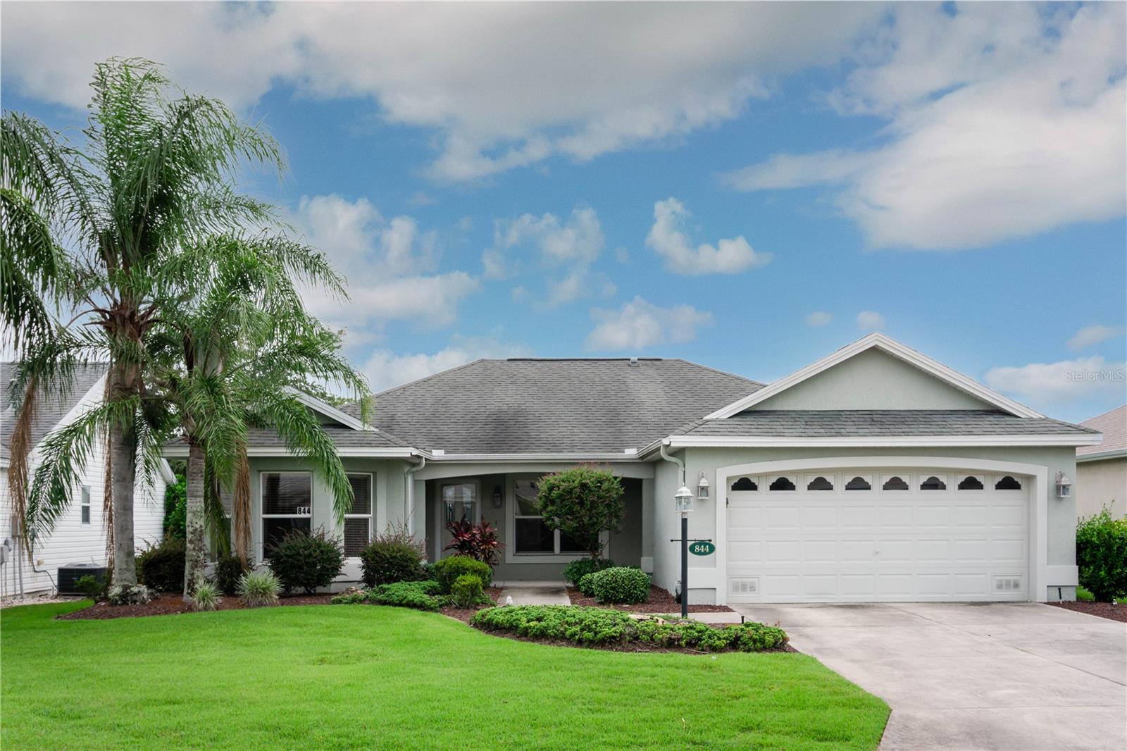 LOCATION IS PRIME - NO BOND - Very desirable location - minutes to Lake Sumter Landing walking or driving. Designer home in the Village of Virginia Trace, super convenient and centrally located. Freshly painted interior - Block and Stucco exterior construction. Walk to the Virginia Trace neighborhood Recreation Center - also the mail station. Canal street Recreation Center just a short walk or ride. You can live your "dream retirement life in The Villages". A/C installed in 2021 -- Allamanda model with expanded guest room. Three bedrooms and two baths. Rich wood look laminate flooring welcomes you to the open design. The Kitchen is open to the Living and Dining areas and has center island, beveled edge countertops and oak raised panel cabinets. The Master Bedroom has his-and-hers closets, ceiling fan and a private bath with dual sink vanity and tiled, walk-in shower. The expanded guest bedroom in front has a ceiling fan and bay window. The third bedroom has a ceiling fan and wall closet. A bonus is the enclosed Florida Room with wall of windows and access to the glass enclosed lanai, all surrounded by privacy landscaping. The Laundry has storage cabinets, folding area and drop sink. There is lots of extra storage in the garage with built in cabinets and work bench area. An ideal location with a short walk to your neighborhood swimming pool and also into Sumter Landing town square for shopping, restaurants and nightly entertainment.