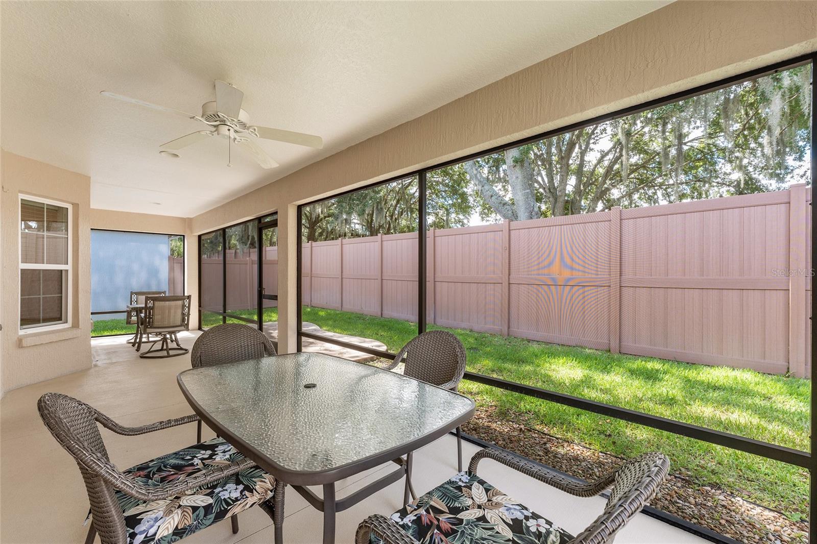 A RARE FIND IN THE EXCLUSIVE VILLAGE OF FENNEY!! Welcome to your next home. This exquisite veranda home has a private fenced-in backyard with no rear neighbors (a rare find in the Villages). The picturesque Villages of Fenney has an old Florida charm with a nature preserve, grand oaks, springs, walking trails and parks. It also features unique recreation centers, four executive golf courses, dining, putting greens and a resort style pool with beach entry and a nearby fire pit. The homes itself is immaculately maintained and boasts 3 bedrooms, 2 bath, open split plan with new luxury vinyl flooring throughout the living area. The kitchen is elegant with gorgeous cabinets and countertops. The primary bedroom is large and features a tray ceiling with a large walk-in closet. The primary bathroom features a double vanity and huge walk-in all tile shower. The other two bedrooms have their own bathroom with a tile tub/shower combo. The enclosed lanai is huge and overlooks your private backyard which is perfect for pets or gatherings. This location in Fenney is wonderful with a pool within a few minutes walk! Don’t hesitate to call this your Village’s home. Furniture is negotiable.