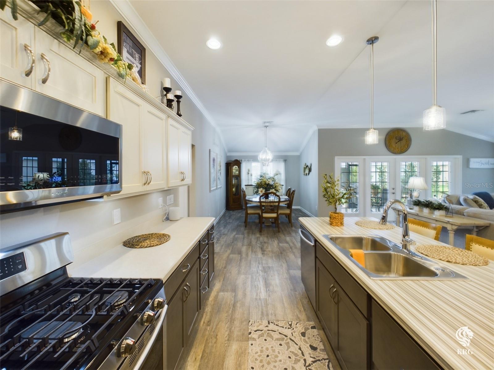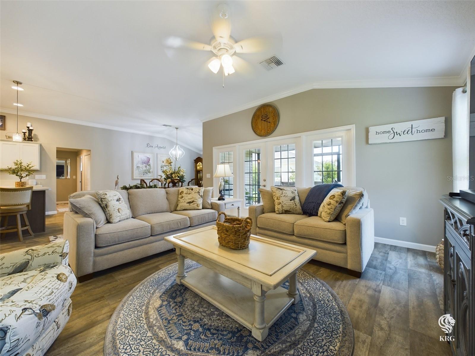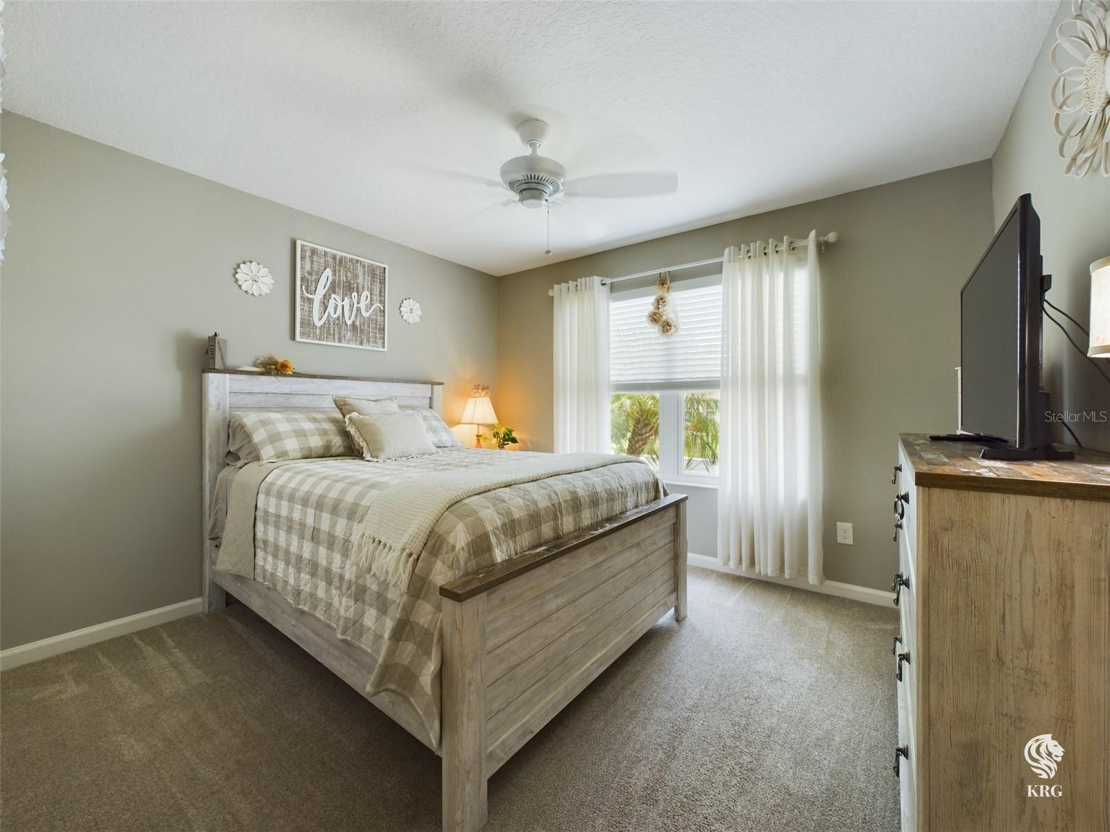 Check out the 3D VIRTUAL TOUR: https://tour.giraffe360.com/b2d0a9a155aa46348738d4c38fb14b0a/. Welcome home to this ALMOST NEW Designer Putman in The Village of Linden! Close to Brownwood, Sawgrass Grove, and everything new happening in The Villages, this home boasts almost 2,000 square feet under air, 4 bedrooms, 2 baths, plus a spacious 2 car garage. Details of this home were carefully selected to boast the modern farmhouse style with the luscious landscaping, the sleek front entry with a generously sized porch, and the Craftsman style throughout the home. The Putnam floorplan is open and perfect for entertaining from the spacious living room, the eat-in kitchen, the flowing entryway to the back covered/screened lanai, and the split bedrooms. You will love all the details that catch your eye such as the warm luxury vinyl plank floors throughout the main living areas and neutral colors. The owner's suite is positioned towards the rear of the home with an expansive closet and a spa-like en-suite bathroom with double sinks and a HUGE walk-in shower. You will find the well-appointed kitchen to have solid wood cabinetry and upgraded stainless steel appliances. More practical upgrades and features include a tankless, on demand hot water system and full gutters. This gorgeous Designer will not last long! See it now before it's too late!
