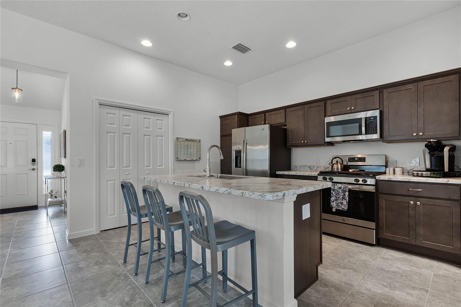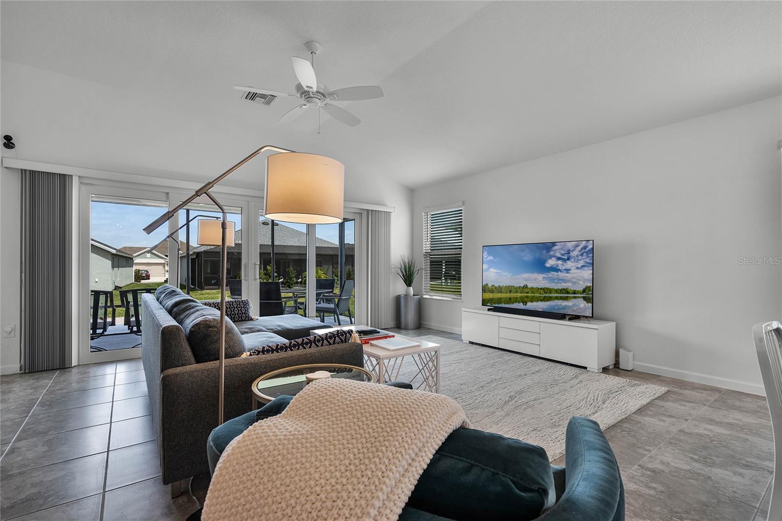 Can be sold TURNKEY! Welcome to your dream home in the sought-after Village of Citrus Grove in The Villages, FL! This spacious 3-bedroom, 2-bathroom home, built in 2021, features an open floor plan that floods with natural light, complemented by tile floors and vaulted ceilings in the living areas. The fully equipped kitchen boasts modern appliances, while the comfortable bedrooms offer ample closet space. Enjoy the outdoors on your private closed-in patio with room for a pool. Nestled in a golf cart-friendly community, you're just moments away from pools, bocce, shuffleboard, and corn toss, as well as the vibrant shopping, dining, and entertainment at Sawgrass Grove Area. You can make some rental income with this property if you are not here all year round. This area includes Clifton Cove Putting Course, McGrady's Restaurant and Pub, Sawgrass Market, and the Ezell Regional Recreation Complex. The Village of Citrus Grove also features the Southern Oaks 18-Hole Championship Golf Course. This home is ready for you to move in and start enjoying all the amenities and excitement this wonderful community has to offer!