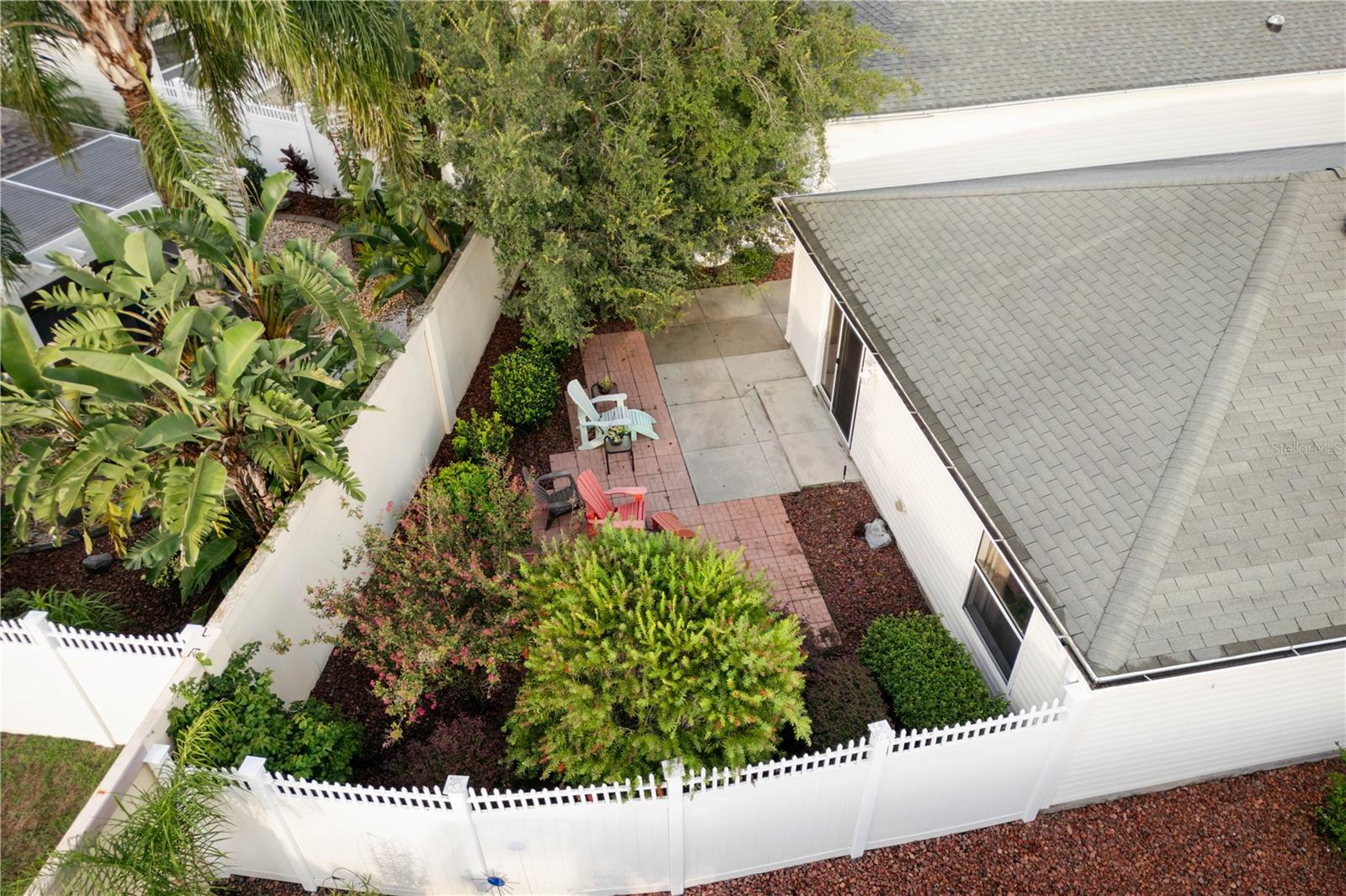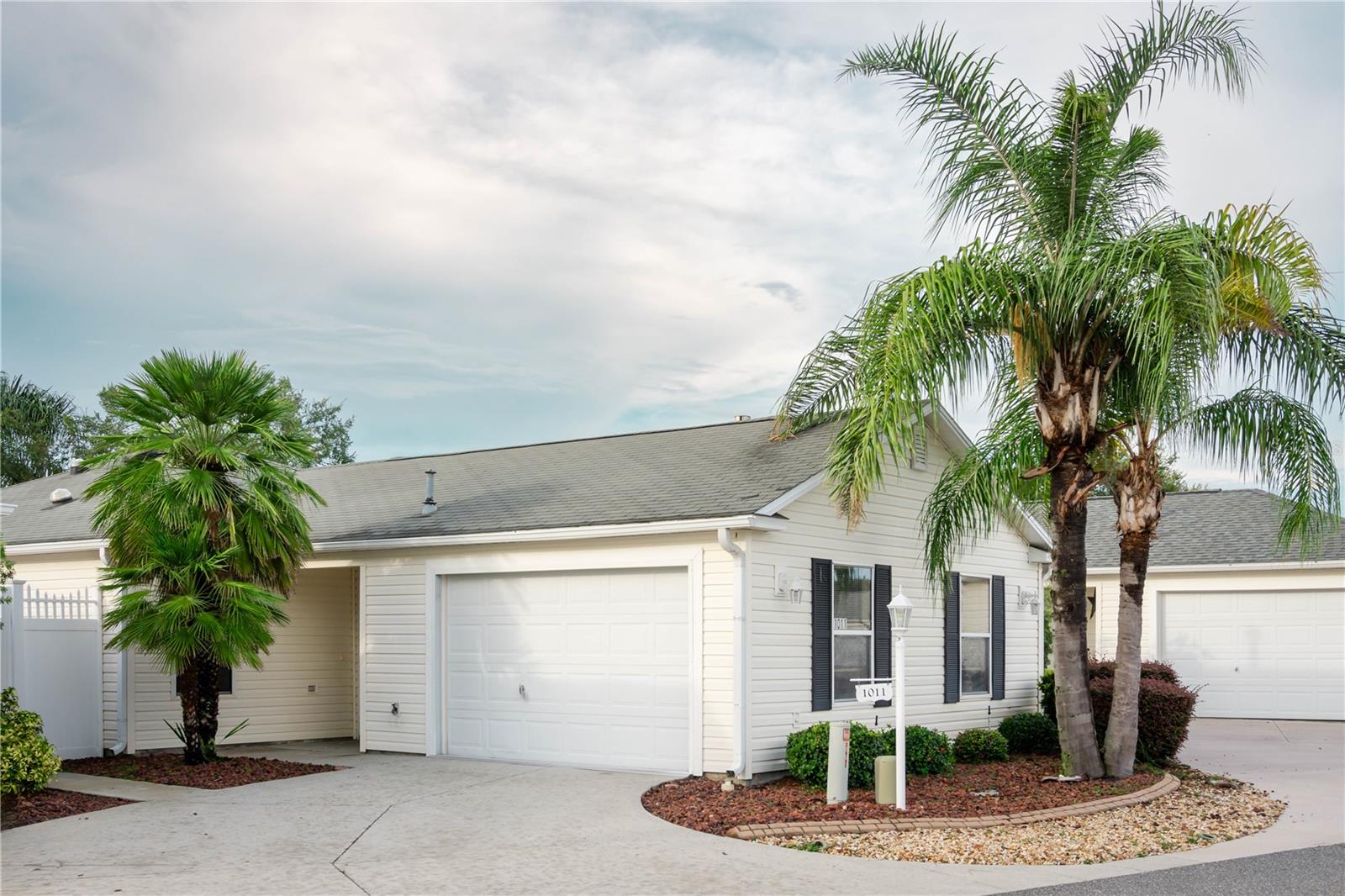 NO BOND!! Close to Lake Sumter Landing - Marathon Courtyard Villa in the Carlton Villas - The lanai has been enclosed and is part of the living area which increases the heated square footage to 1278. The beautiful lead glass decorative front door greets you and is quite an attractive addition. Front door also has the retractable screen for those cooler winter days in Florida. Vinyl wood look flooring in all rooms except the bathrooms. Kitchen has light cabinets with granite counter tops, adding contrast between cabinets and flooring. Ceiling fans throughout. The guest bath has granite counter tops as well does the main bedroom bath with a walk-in shower. This home is ready to move in! A/C was replaced in 2019. Garage has decorative floor covering. Canal Street Recreation Center with pool is just a very short drive north and Sabel Chase recreation center is a short drive south, also with a pool. This is a great home in a great location. It has the privacy you are looking for with nicely landscaped courtyard.