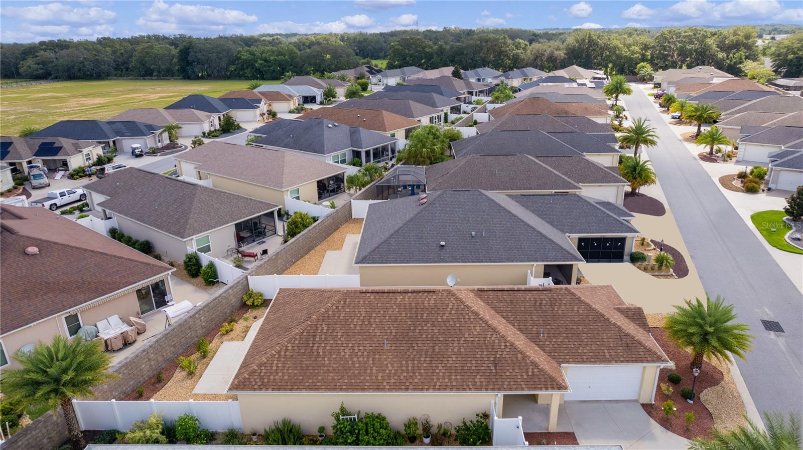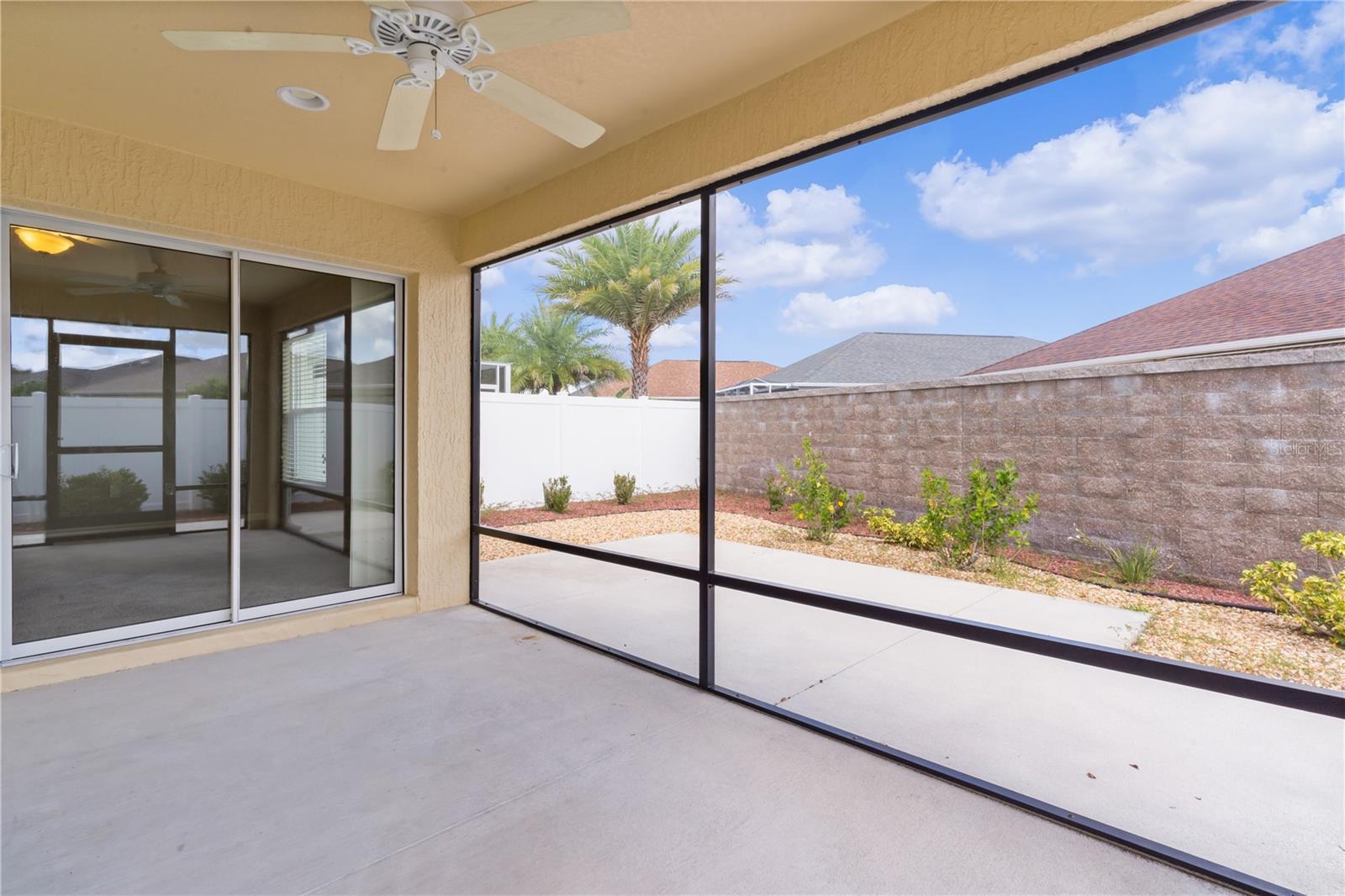 This 2/2 DURHAM Courtyard Villa is in the VILLAGE OF WOODBURY within the desirable, QUIET community of PHILLIPS VILLAS. Beautifully landscaped with ROCKS and a beautiful PALM TREE, this home draws you in immediately. Enter through the front door directly into the spacious kitchen featuring a CERAMIC TILE floor, STAINLESS-STEEL appliances, HI-DEF countertops & a 10-ft BREAKFAST BAR with seating for 4! Take a walk through this home on the LAMINATE flooring, which runs throughout the main living areas. Host your guests in the dining room with seating for 6 which flows into the living room. Sliding doors off the dining room takes you to a concrete patio perfect for grilling! Sliding doors off the living room will take you out to the SCREENED LANAI where you can entertain your guests. The primary bedroom has a TRAY CEILING, a WALK-IN closet and an en-suite with a CERAMIC TILE floor, walk-in shower and a high vanity with Hi-Def countertop. Your guests will have complete privacy in the guest bedroom and bath (with linen closet) which are closed off by a pocket door making it a second primary suite! For your convenience, this garage has a LAUNDRY tub, ATTIC stairs for additional storage and a painted floor. The ROOF, HVAC and HOT WATER HEATER are all 2016 & the villas in Phillps Villas are POURED CONCRETE. Phillips Villas has its own NEIGHBORHOOD POOL and is conveniently located close to the VA HOSPITAL plus tons of shopping and restaurants. You are minutes away from the MULBERRY Rec Center which contains a pool & 10 pickleball courts as well as the new FIRST RESPONDERS Rec Center and Pool! Nancy Lopez Country Club and 4 executive golf courses are a short golf cart ride away!